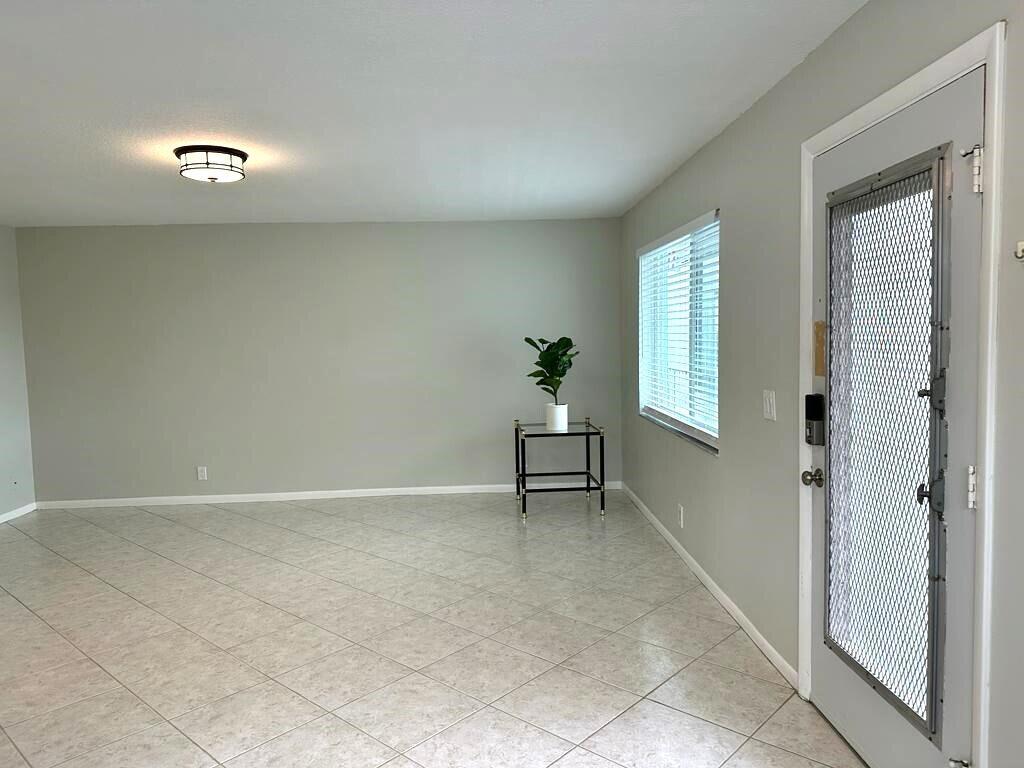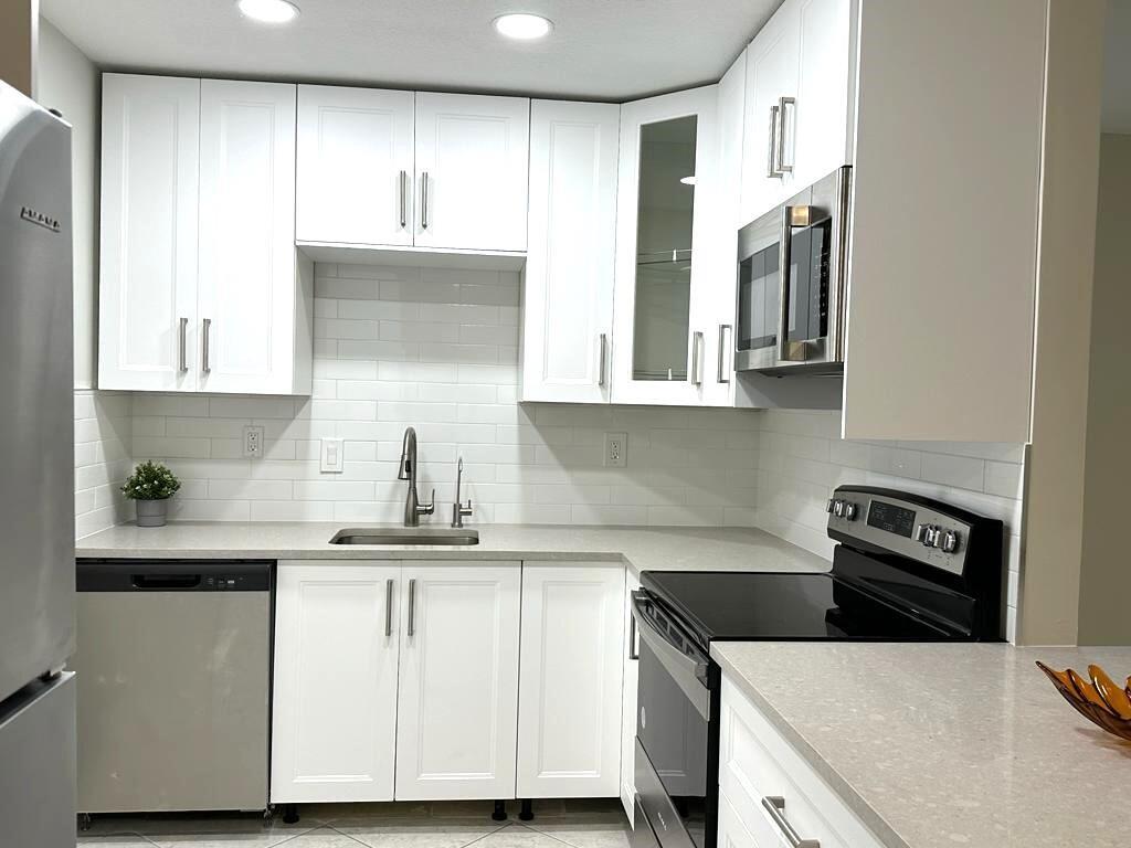 Beautifully Renovated 2-Bedroom, 2-Bath Condo in Active Adult CommunityStep into this light and bright second-floor unit, completely renovated for modern comfort. Featuring impact-resistant windows and sliding doors, brand new washer and dryer, upgraded lighting, and no popcorn ceilings, this home offers both style and peace of mind.The remodeled kitchen boasts upgraded cabinets, a sleek tile backsplash, and quartz countertops. Both bathrooms have been tastefully updated with newer vanities and elegant porcelain tile.Enjoy a spacious balcony overlooking a serene garden view. The building includes an elevator for added convenience.This home is ideally situated near major roads, medical centers, shopping, dining, and just a short drive to the beach and Atlantic Avenue.