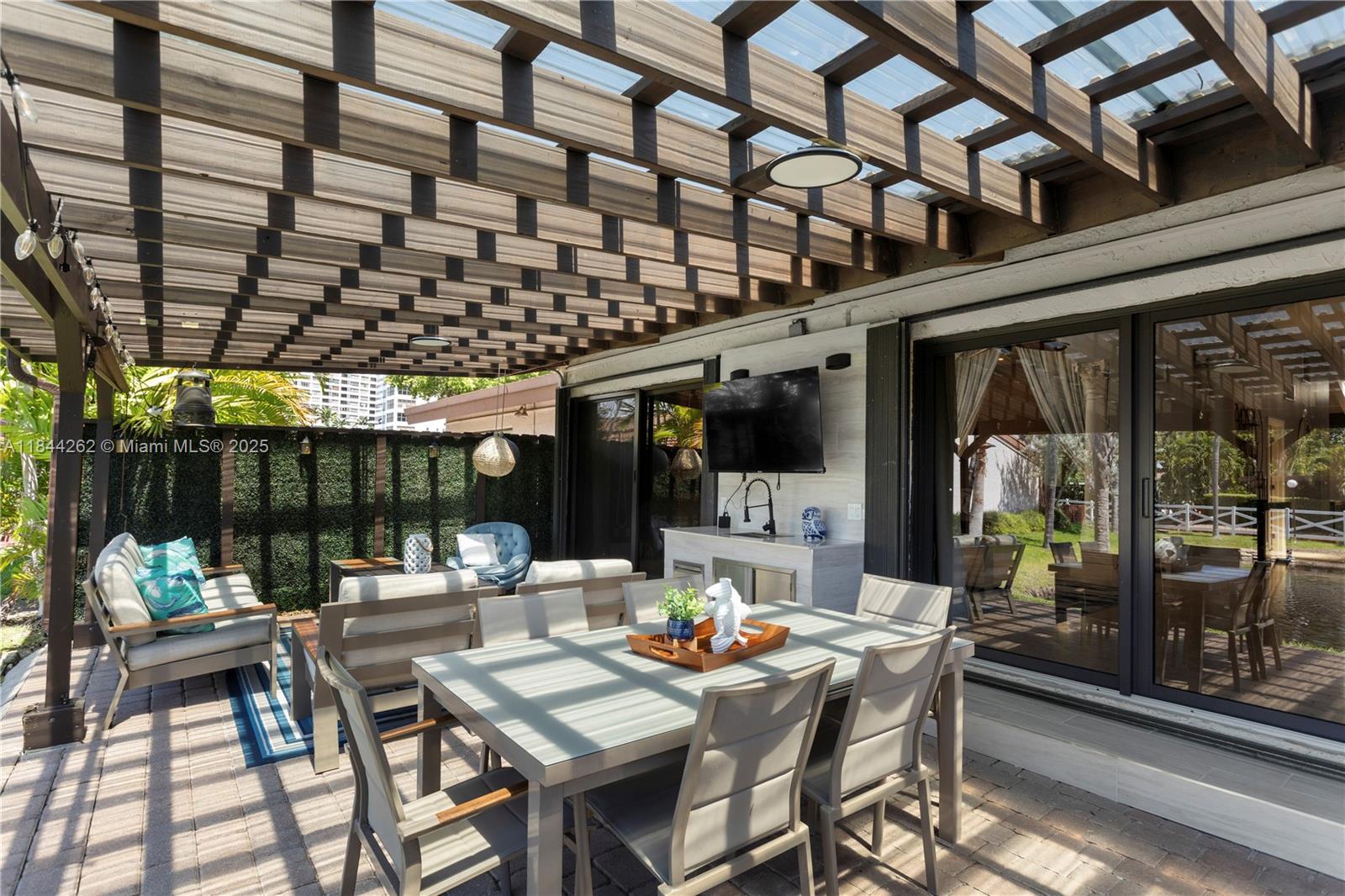 OFFERED NOW Furnished or Unfurnished. Discover this beautifully remodeled villa in the prestigious and fascinating Three Islands neighborhood, Loaded with upgrades,2 bedrooms, 2 baths + a convenient Murphy bed for guests, High vaulted cedar ceilings throughout, Impact-resistant windows for enhanced comfort, peace of mind,Washer & dryer inside unit, 2 dedicated parking spaces, Covered terrace overlooking a tranquil lake, enjoy your own outdoors zen space. Minutes to the beach, Walmart, Publix, shops and restaurants. Casa D’Angelo ,The Capital Grille ,Chima Brazilian Steakhouse, Burlock Coast at The Ritz-Carlton, Aventura Mall, Las Olas Boulevard boutiques galleries.& Culture: Broward Center for the Performing Arts, Riverwalk Arts & Entertainment District, Seminole Hard Rock Live & Casino