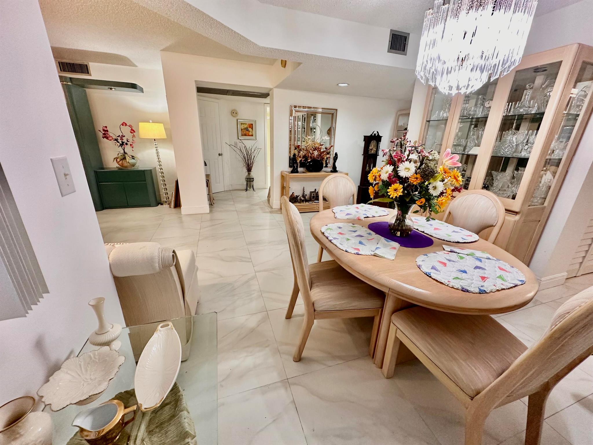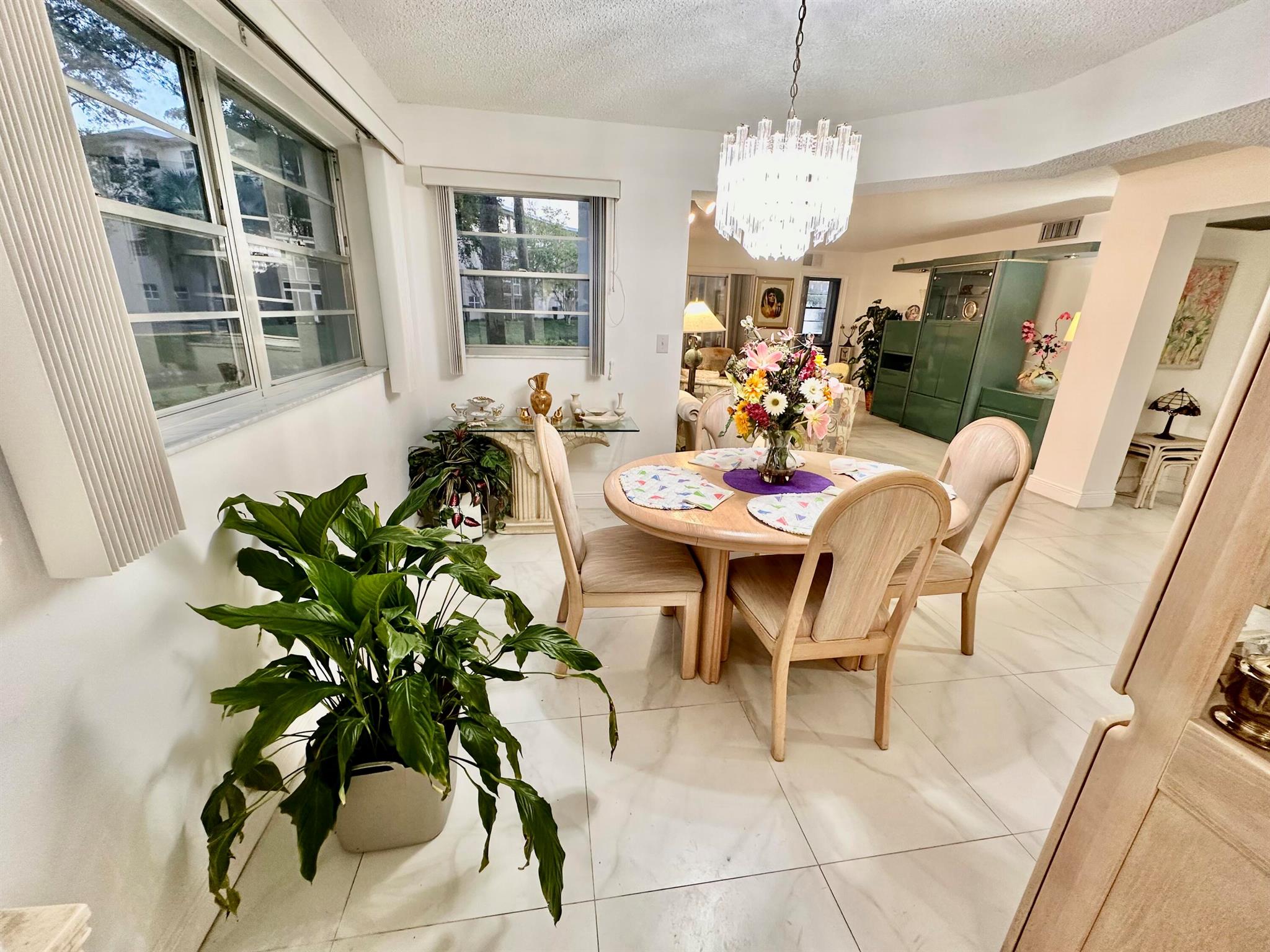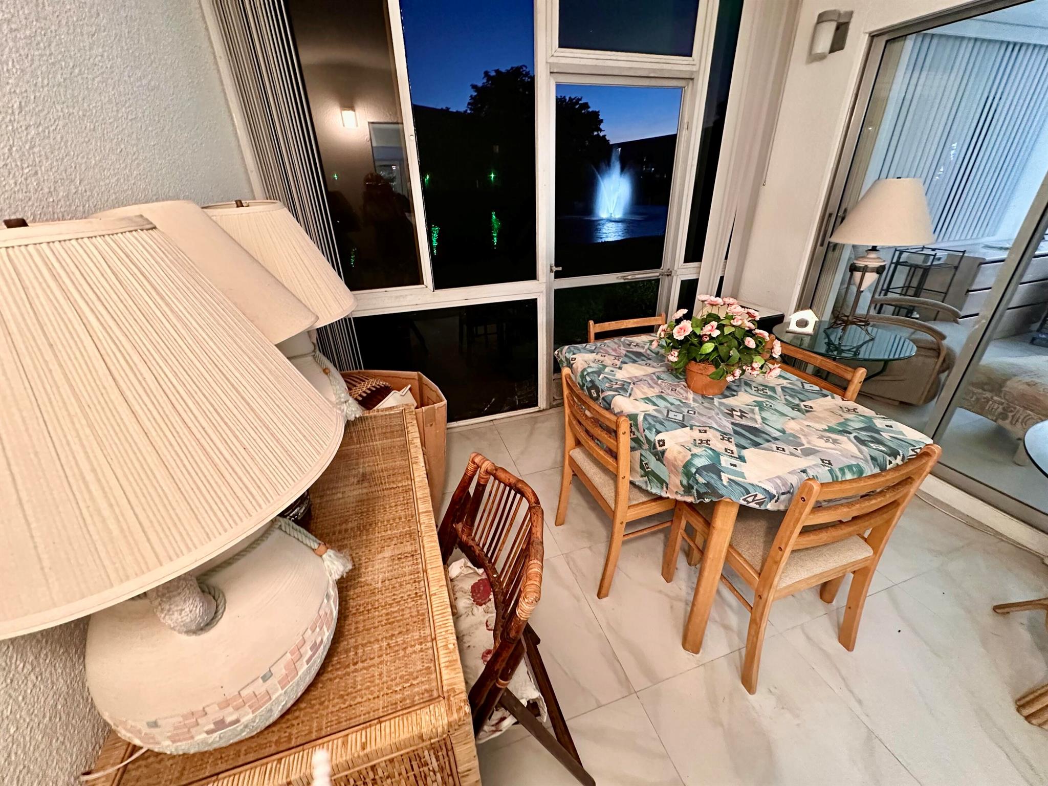 LARGE ANNUAL 2/2 FURNISHED RENTAL AVAILABLE NOW CORNER EVERGREEN MODEL elegantly remodeled & furnished - 4 TV's! PEACEFUL FOUNTAIN WATER VIEWS FROM ENCLOSED PATIO, PRIMARY BEDROOM, LIVING AND DINING SPACES! Sleep sofa is avail. in Guest bedroom. Additionally a blow up mattress is avail. to sleep 2. ALSO AVAILABLE SEASONAL MIN 4 MOS. $3,450!