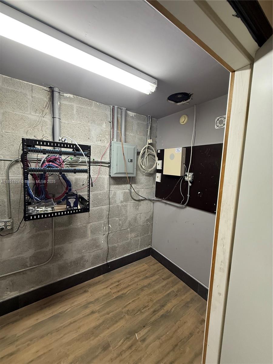 Office/Warehouse suitable for many uses. Upgraded interior with private offices, lunch/meeting room, 2 bathrooms. Approx. 500sqft of warehouse space with overhead door. Electric shutters for security/hurricane protection. Tenant screening required