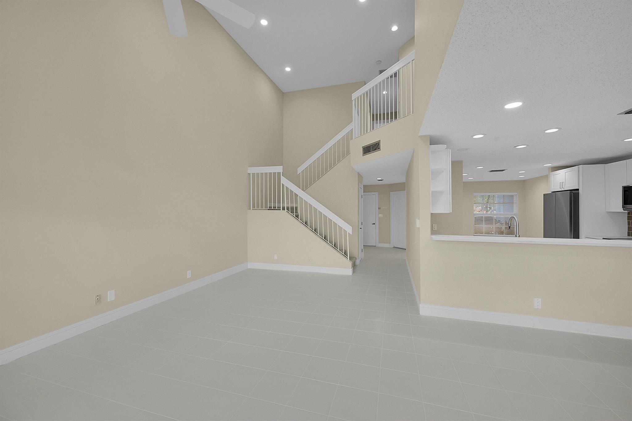 Youa(tm)ll appreciate numerous updates throughout this freshly painted single-family home. A spacious foyer opens into a vaulted living area, with a dramatic floor-to-ceiling rounded window, open staircase, & tile flooring throughout. The kitchen features all-new appliances, a breakfast nook, & generous storage. Enjoy breathtaking golf course views from the master bedrooma(tm)s private 2nd floor balcony. The oversized screened-in lanai offers a place to unwind. Additional upgrades include new fans, updated bathroom, & recessed lightinga"too many improvements to list! The community pool is a short walk away. Zoned for A-rated schools & conveniently located near shopping, restaurants, and Hwy. 95. Minutes from downtown Delray Beach, Boca Raton, & South Floridaa(tm)s finest beaches.