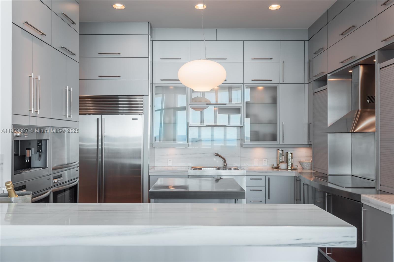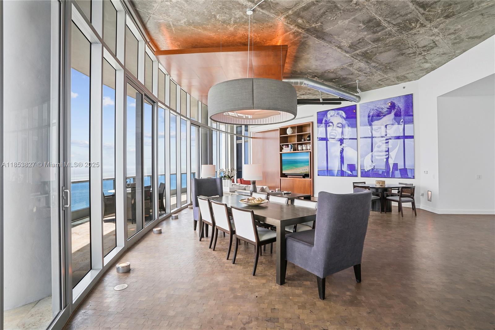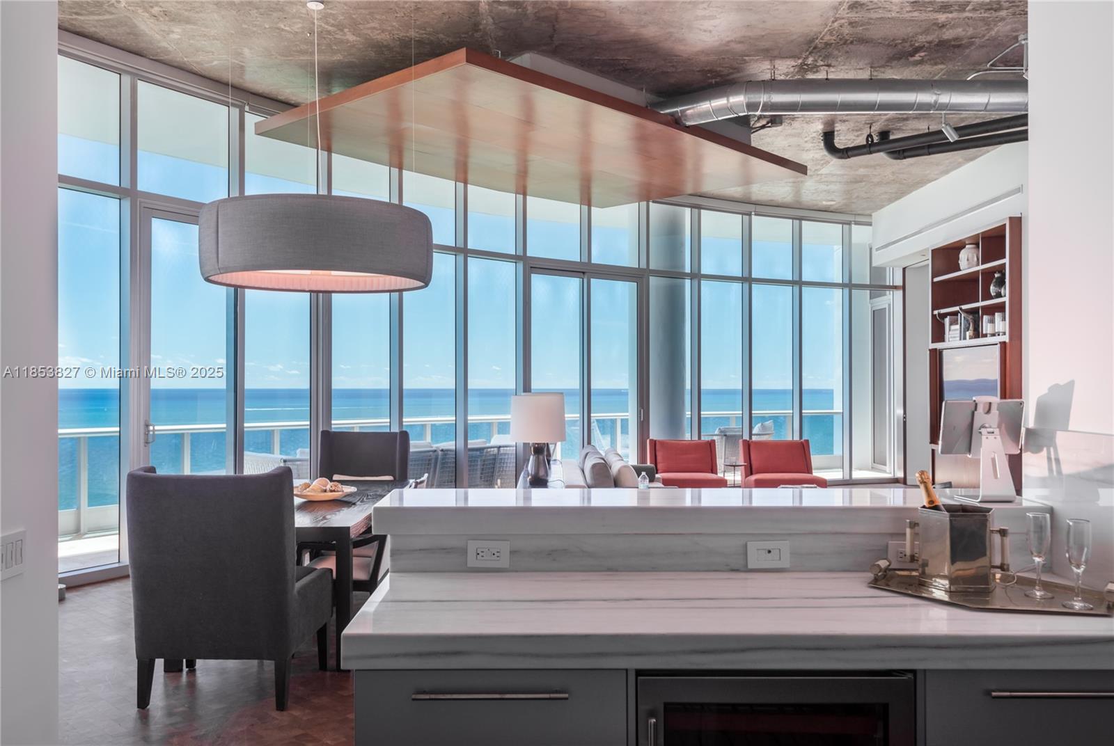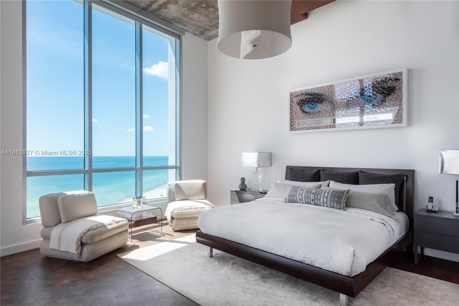 ONE-OF-A-KIND DIRECT OCEANFRONT PENTHOUSE LOFT WITH OCEAN VIEWS FROM EVERY ROOM! This 3 Beds + 3 Baths Encompasses just under 3000 SF and Furnished by Christian Liagre, Minotti, Etc & Designed by NY Architect Joe Serrins. Acid-washed Concrete 14' High Ceilings with Exposed Pipes; Ceiling Hung Walnut Boxes House Indirect Lights by Lutron; Creston AV System & Electric Shades; Linear Diffusers AC; Mosaic of Mesquite Wood Floors; Custom Grey & SS Italian Kitchen; Sub-Zero & Miele Appliances; Baths in Egyptian Limestone & Thick Onyx Tops & Mosaic; Upgraded Villeroy & Bosch Plumbing Fixtures. Luxurious Resort Lifestyle on 5.5 Acres with 530 feet of Beachfront, Pool, Spa + Fitness Center, Kidz Playground, Beach Club + European Clay Tennis Courts, Valet & Concierge Services.