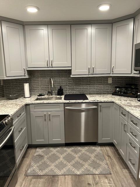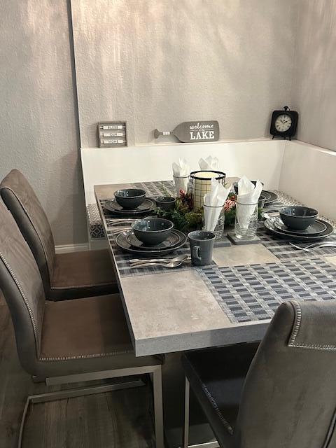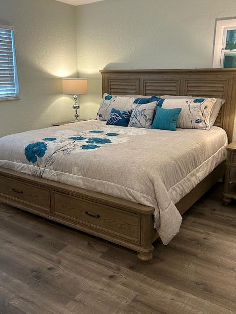 Absolutely stunning 2 bedroom, 1 bath unit that has been completely remodeled with beautiful kitchen, updated bathroom, luxury vinyl flooring thru out. King size bed in master. 2nd bedroom will not be available, owner will use this bedroom for her personal storage. Beautiful patio overlooking lush landscaping and a peek at the lake!