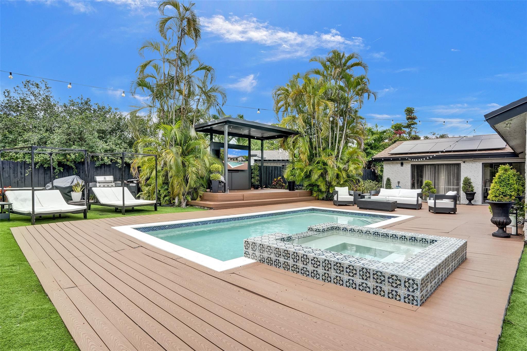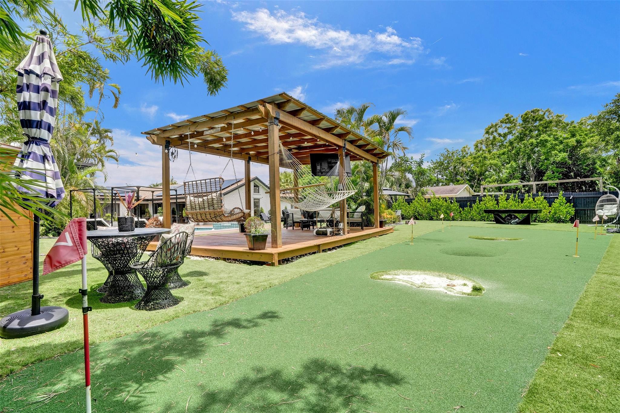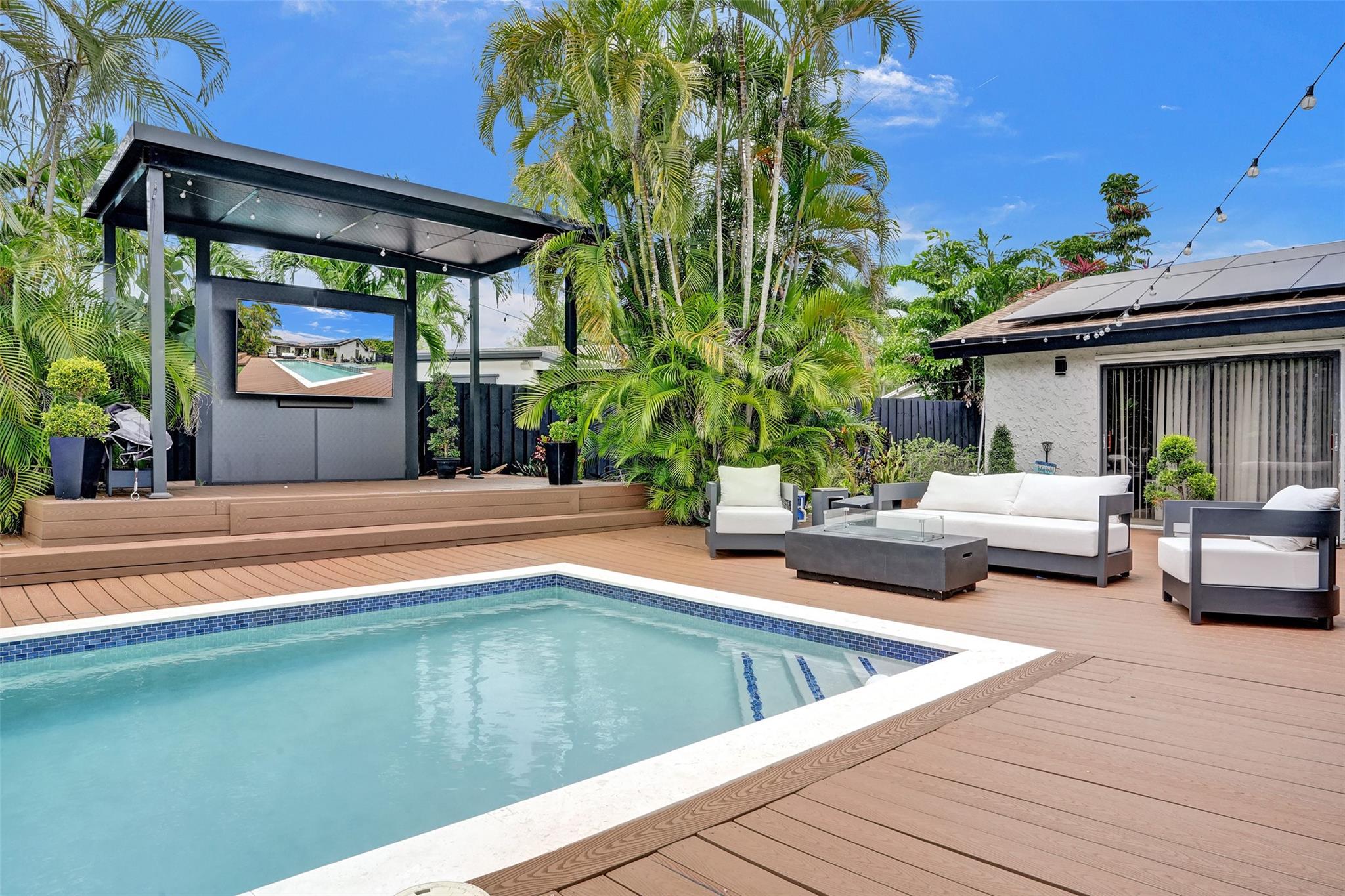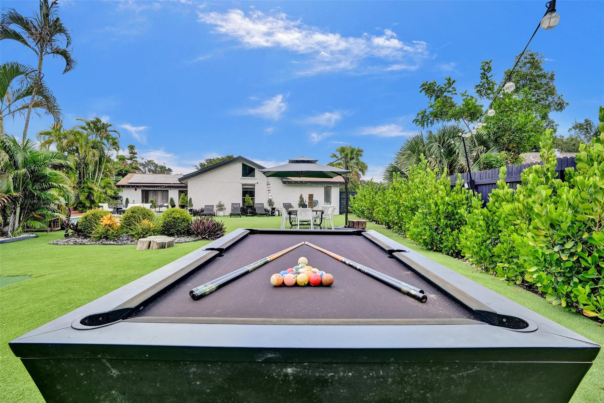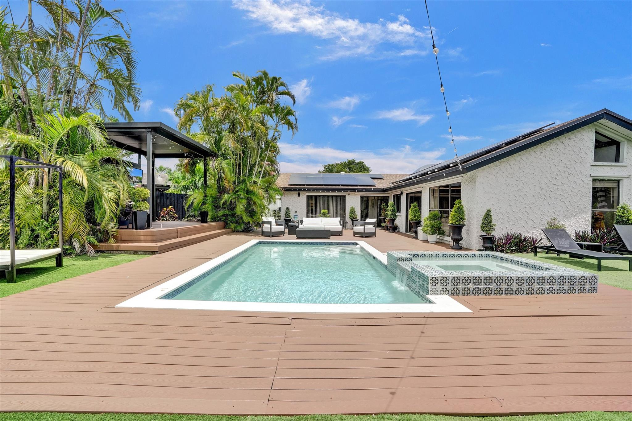 Luxurious 4BR smart home for annual lease in exclusive Palm Aire Village, tucked away on a quiet cul-de-sac. Fully remodeled with soaring vaulted ceilings, spacious bedrooms, and a gourmet kitchen with high-end finishes. The resort-style backyard is an entertainer’s dream, featuring a heated pool, spa, sauna, large putting green, artificial turf, two covered patios, multiple outdoor TVs, pool table, and luxury day-club-style furnishings—all set against a tranquil waterway. Solar panels and a 2-car garage with smart charger. Backyard furnished; interior unfurnished. No subleasing. Available starting September 1, 2025!