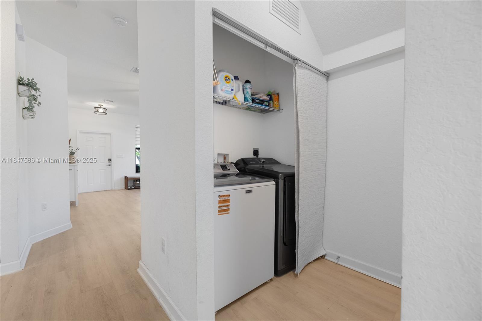Corner Unit in Tuscan Pines! This 4-bedroom, 2.5-bath Lennar-built townhouse offers a perfect blend of style and convenience. The open-concept kitchen and living area feature stainless steel appliances, white marble countertops, and an elegant backsplash. Tasteful wood-look vinyl floors flow throughout, complemented by updated bathroom vanities. The primary suite includes dual sinks and a glass-enclosed shower. EV charger installed for easy access to a charging station. Enjoy a private backyard space, one-car garage, and community pool. Ideally located between US-27 and I-75 for easy commuting.