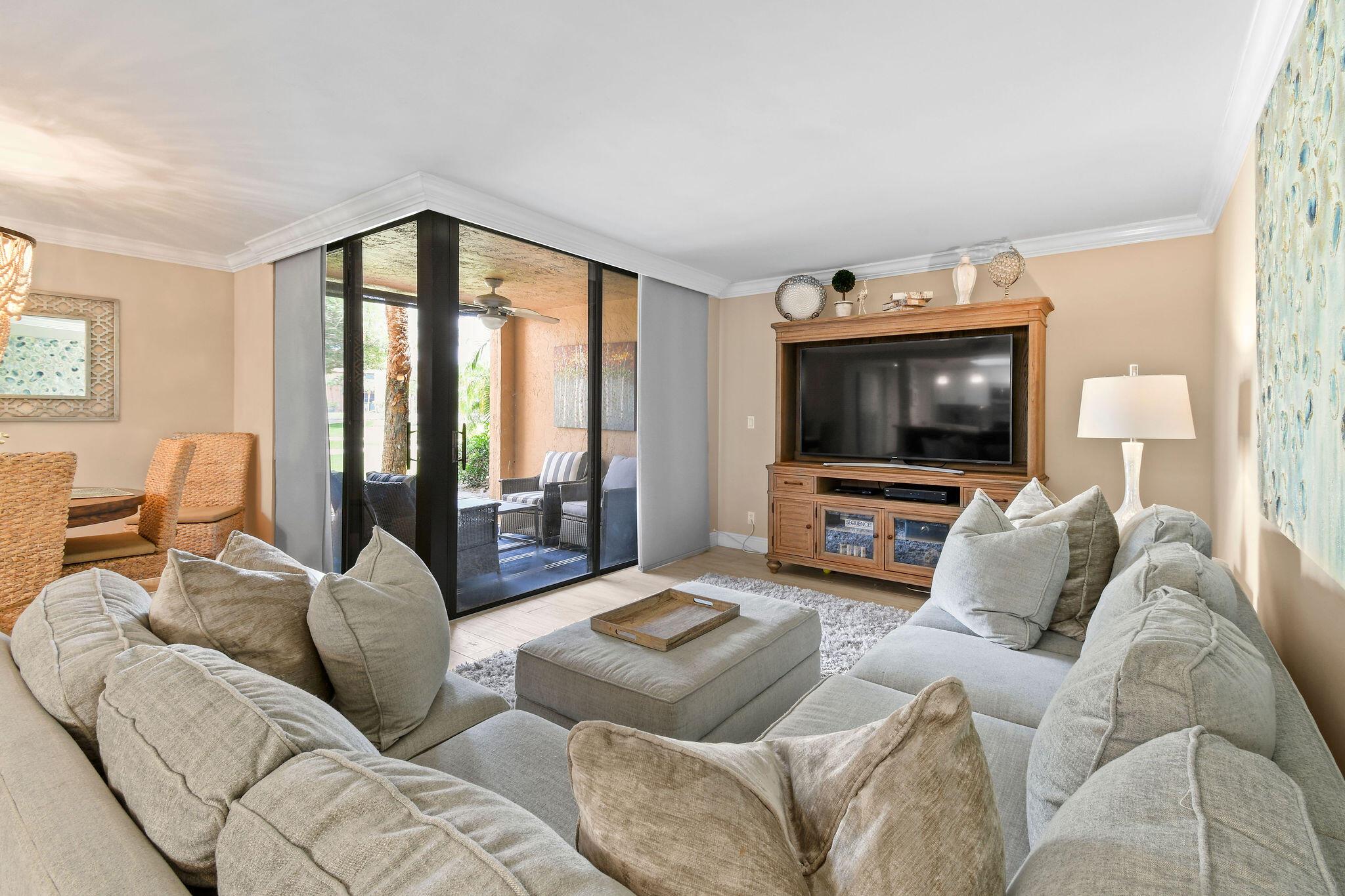 Welcome to your dream luxury retreat in Florida! This exquisite 1st-floor condo offers an unparalleled indoor-outdoor living experience, perfectly situated on the shores of a serene lake and just steps away from the resort style pool. As you step inside this meticulously designed residence, you'll be greeted by the finest high-end designer furnishings, creating an ambiance of modern coastal sophistication. The entire space has been thoughtfully updated with shaker-style cabinets, custom lighting, and quartz countertops, showcasing the utmost attention to detail. The bathrooms are a true oasis, boasting marble countertops and elegantly designed glass and tile detailed showers, ensuring a spa-like experience right at home.
