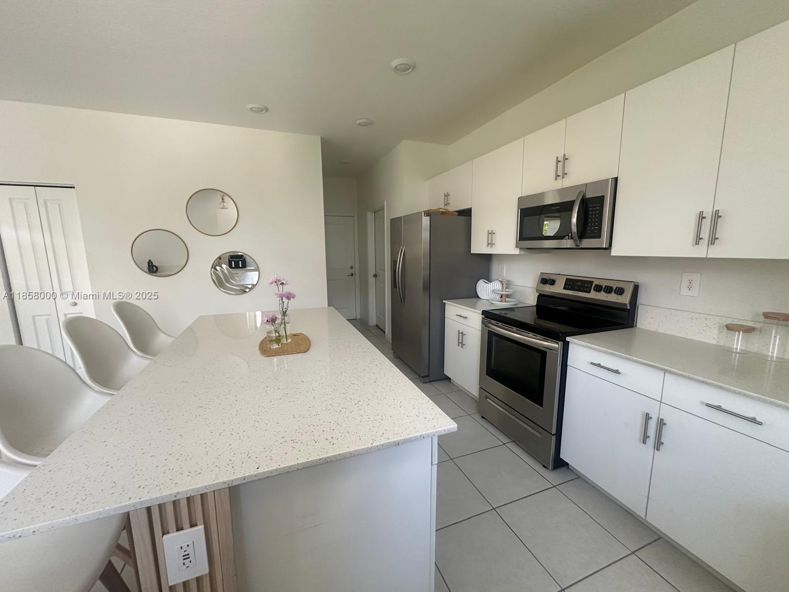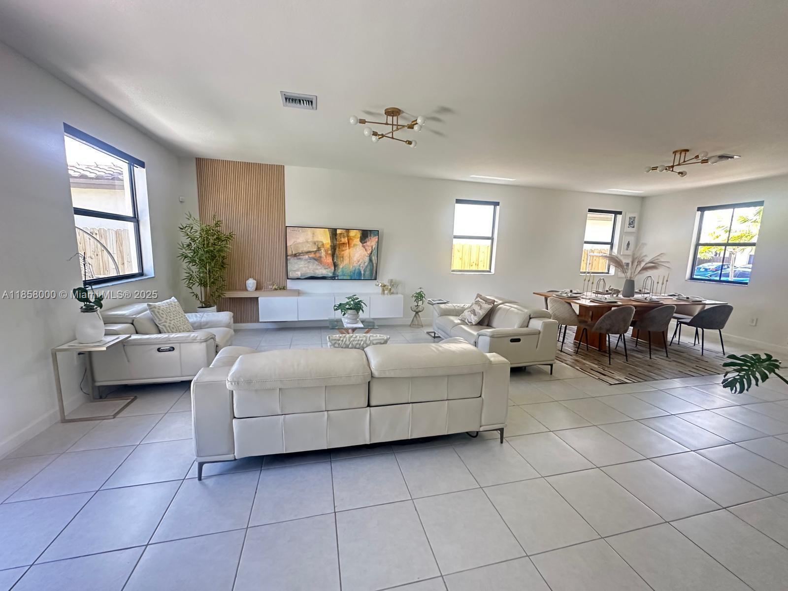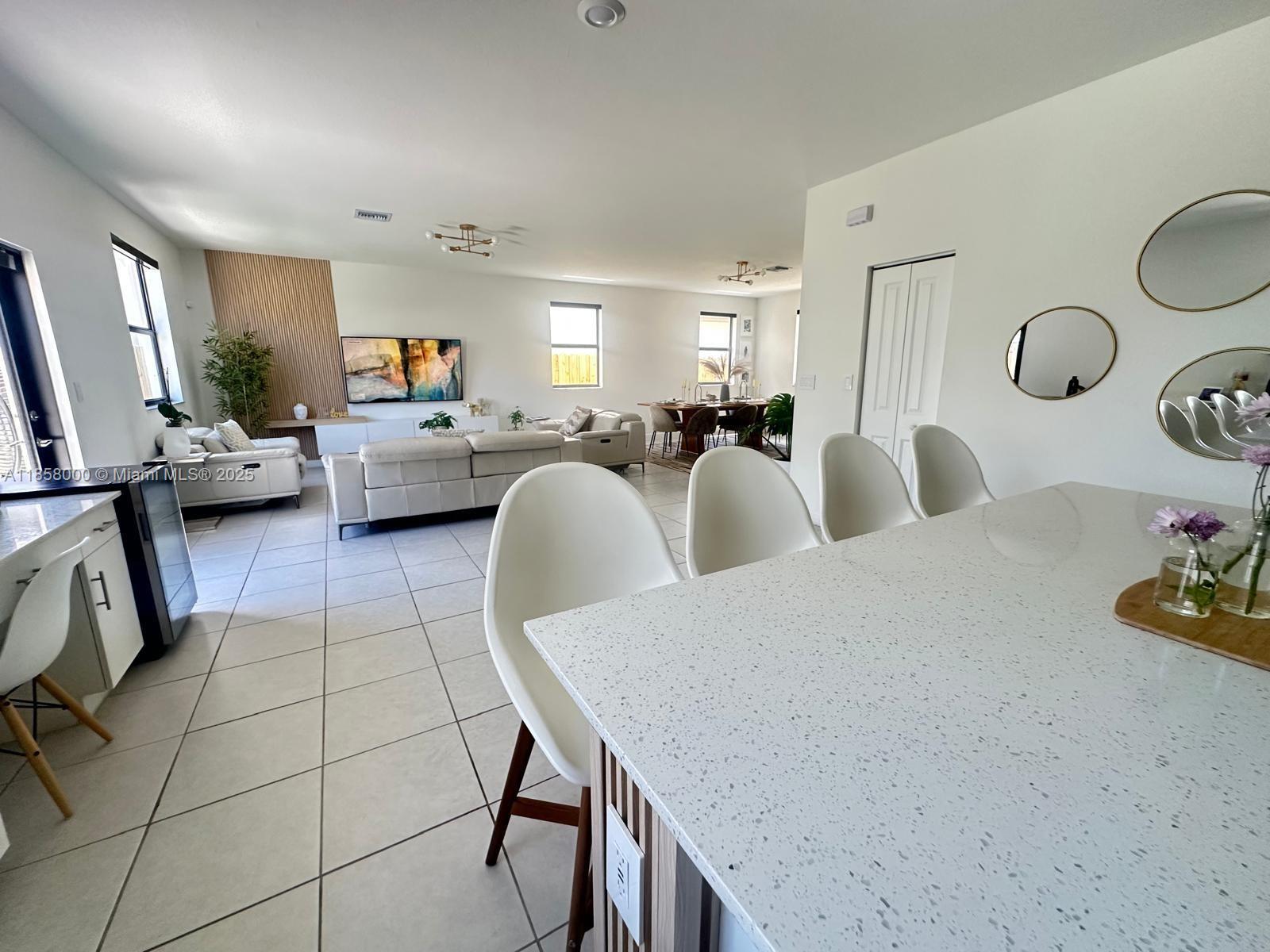 Spectacular 4-bedroom 2.5-bathroom single-family home in Lennar's coveted Corsica community. Built in 2023, this spacious residence features a functional layout, open spaces, and a modern kitchen with an island, quartz countertops, and stainless-steel appliances. The home features motorized shades, the bedroom walls are artfully decorated with Venetian plaster, providing a touch of elegance and comfort that will make you want to call it home. The garage can be used as a workspace, study, or children's play area. Enjoy Silver Palms' resort-style amenities, including a state-of-the-art clubhouse, pool, fitness center, and children's water park. This prime location is in close proximity to Black point Marina, Homestead Air Reserve Base, and the vibrant Homestead Bayfront Park and Marina.
