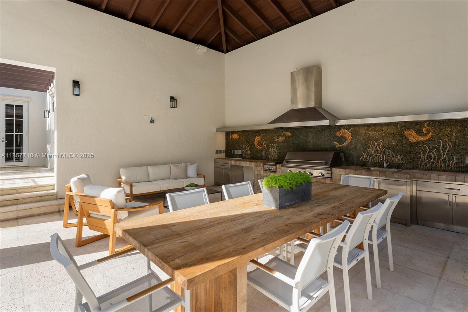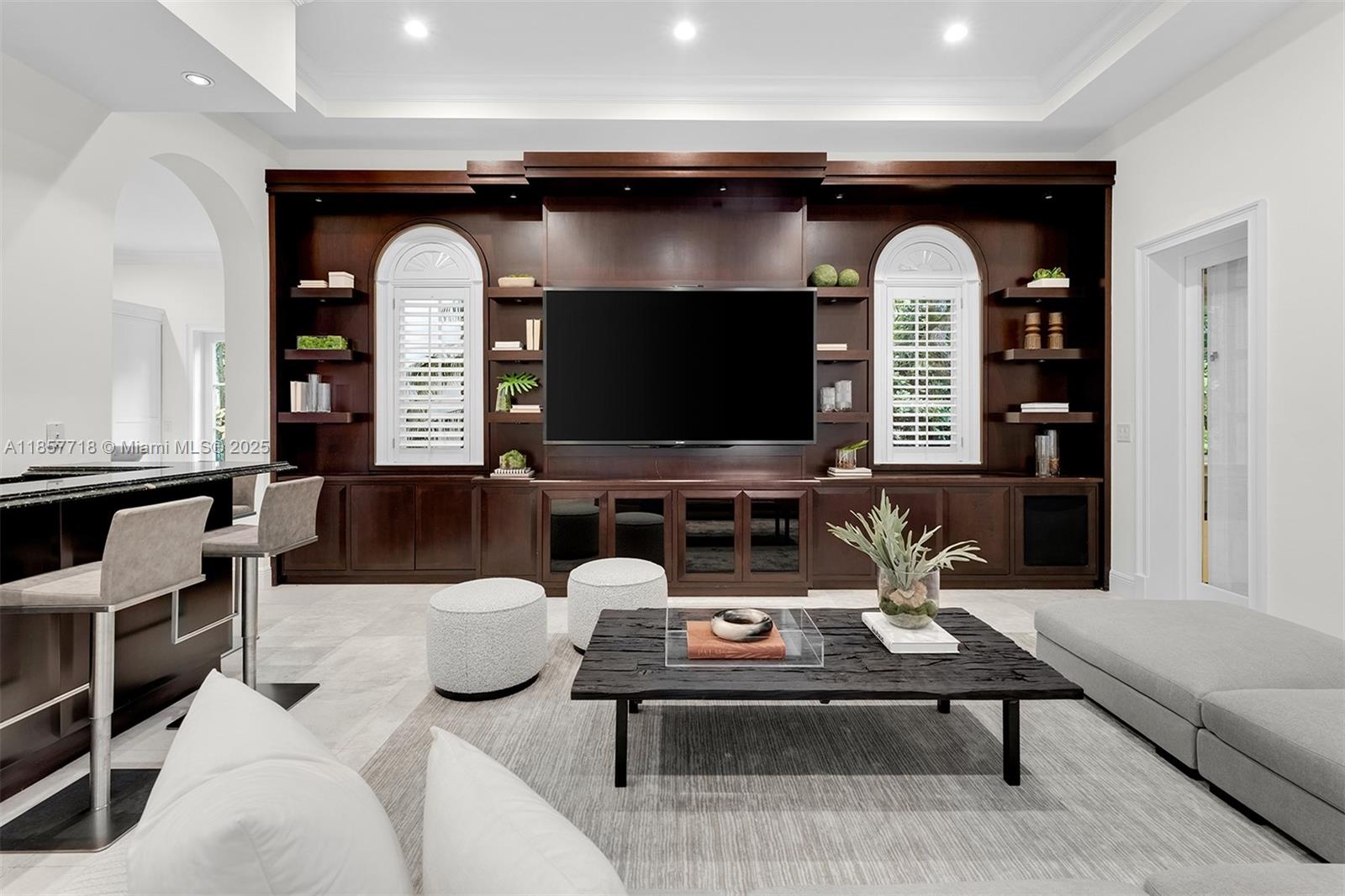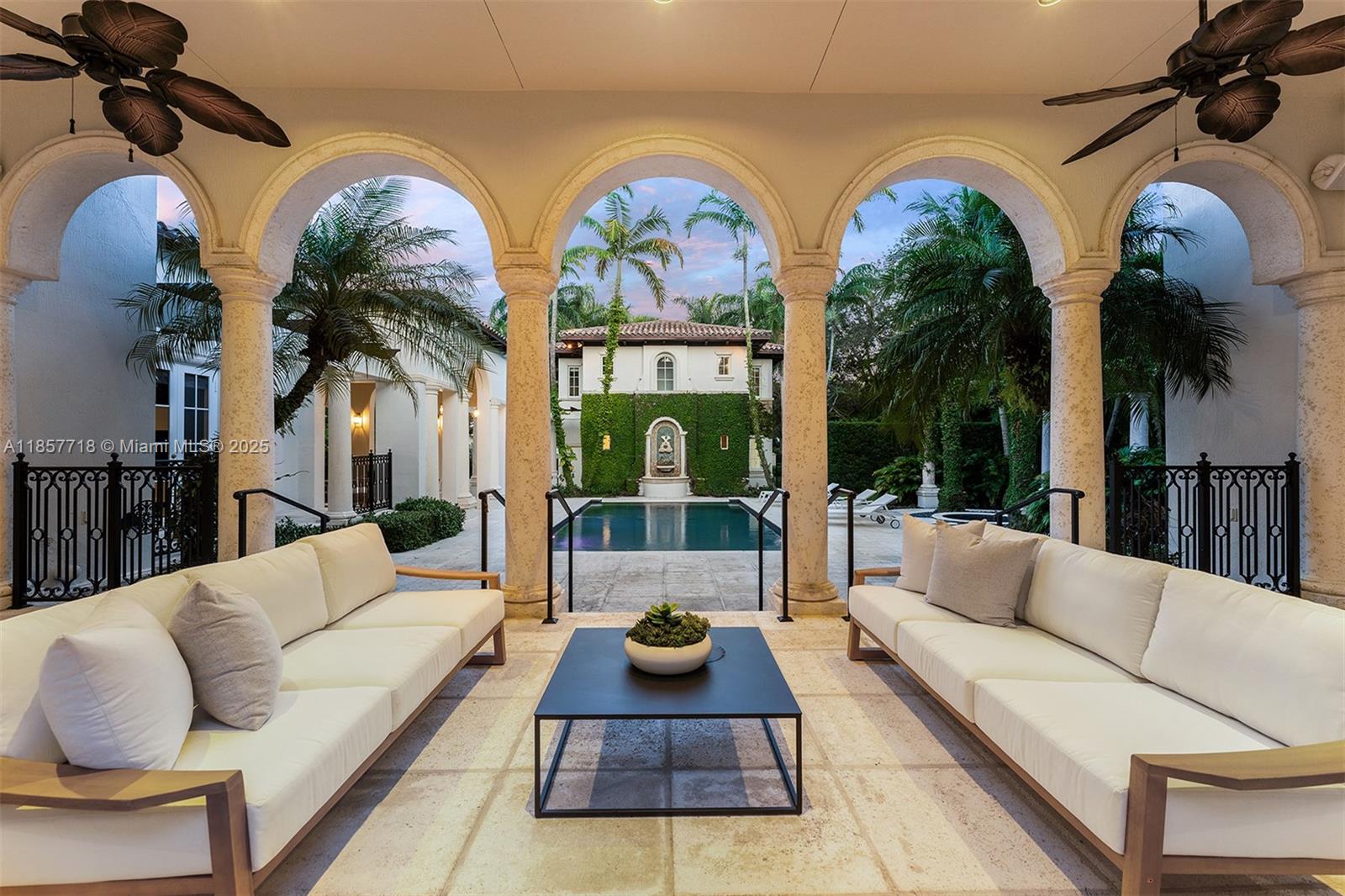 Luxury estate on esteemed Suburban Dr in Pinecrest, boasting a through-lot design. Ideal for a large family, w dual staircases that divide the foyer & formal living rm w soaring ceilings. Main level includes entertaining space, formal dining rm & open-style kitchen. Family rm is enhanced w a bar, fish tank, & workspace. Primary suite on main level enjoys its own wing, w a sitting/nursery rm. Staircases lead to distinct wings, one side 3 beds & 3 baths, and the other w 2 beds & 2 baths, featuring hardwood floors & renovated baths. Backyard is a paradise, w pool, jacuzzi, basketball court, & putting green. Additional luxuries: outdoor courtyard, water features, summer kitchen, detached guesthouse w 2 beds, living, & kitchen area, 3 car garage, & spacious motor court.