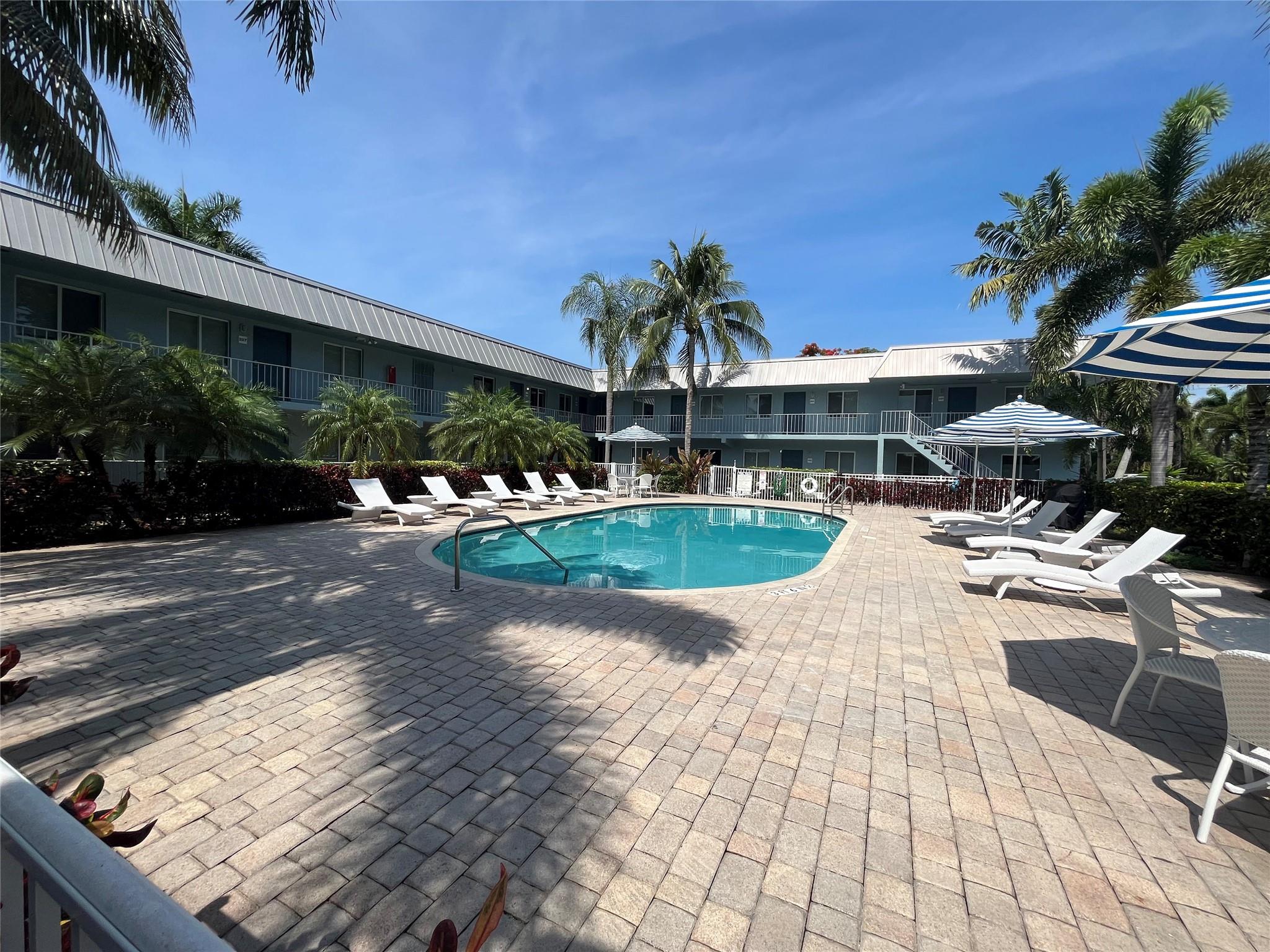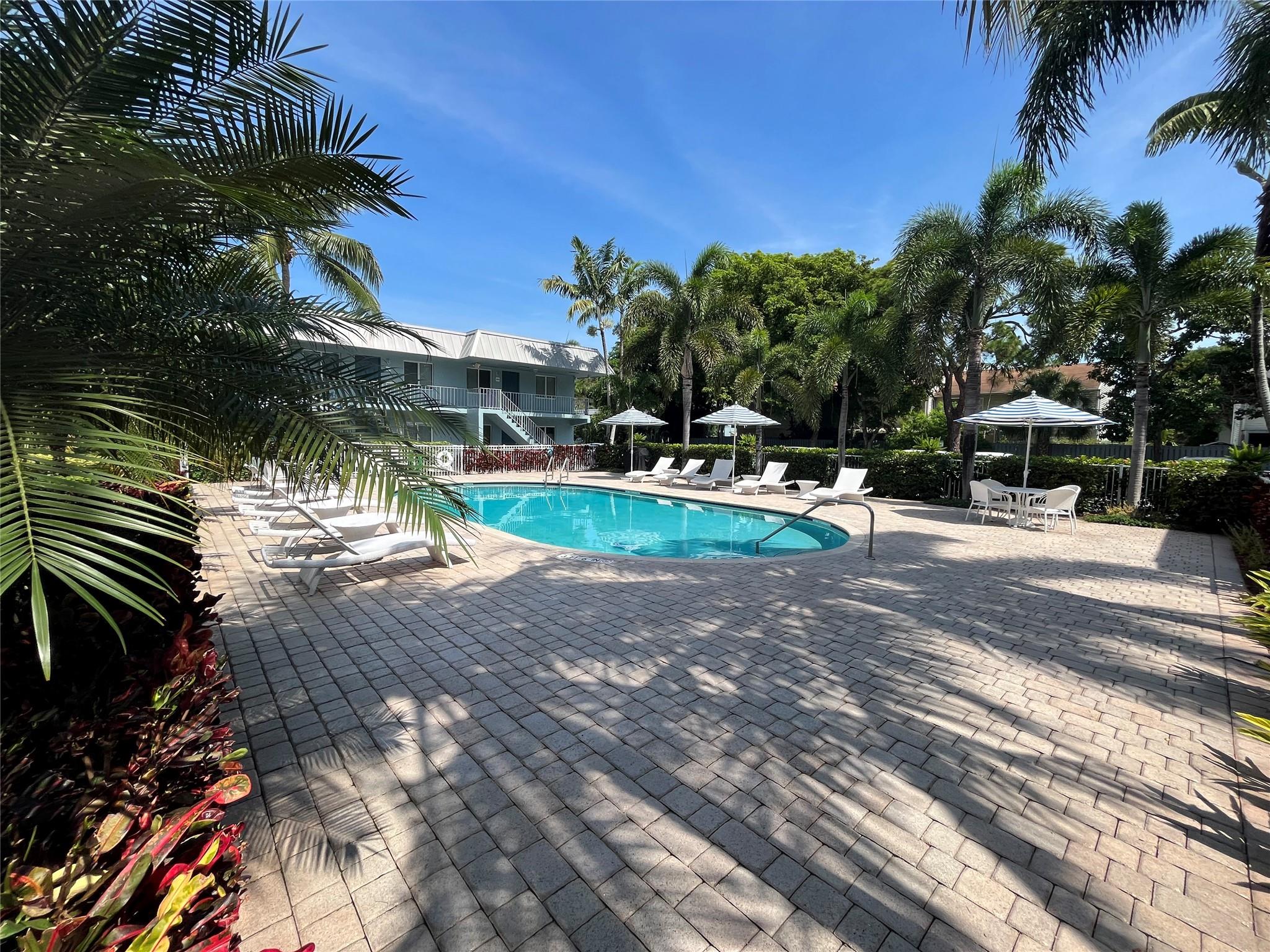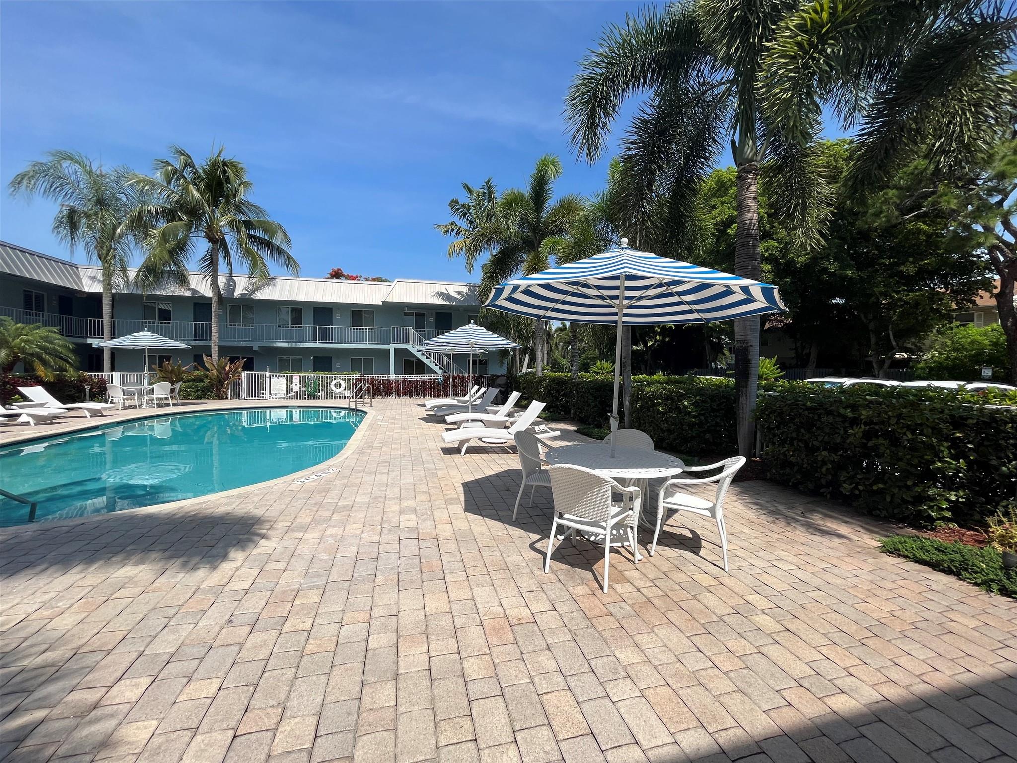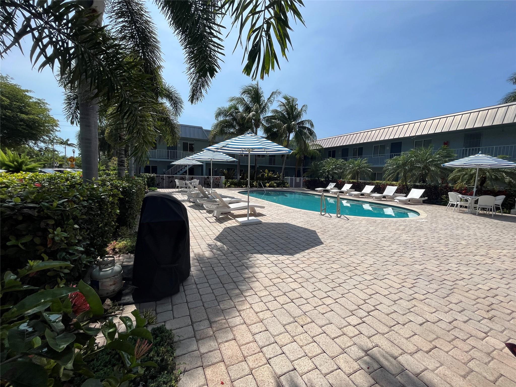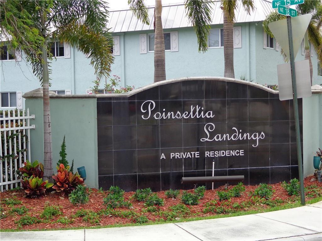 Beautifully remodeled first floor, 1/1 in desirable Poinsettia Landings. Flooring is ceramic tile throughout, Stainless Steel appliances, wood cabinetry, granite and tile in kitchen and bath. End unit. Lush tropical landscaping including heated pool, BBQ area, laundry facility in the building. Pet friendly! Photographs taken prior to current tenant's occupancy. Currently rented until October 11, 2025. Located near Wilton Drive, Downtown Ft. Lauderdale, shopping, restaurants, nightlife, and the beach. The information is deemed to be reliable but is not guaranteed.