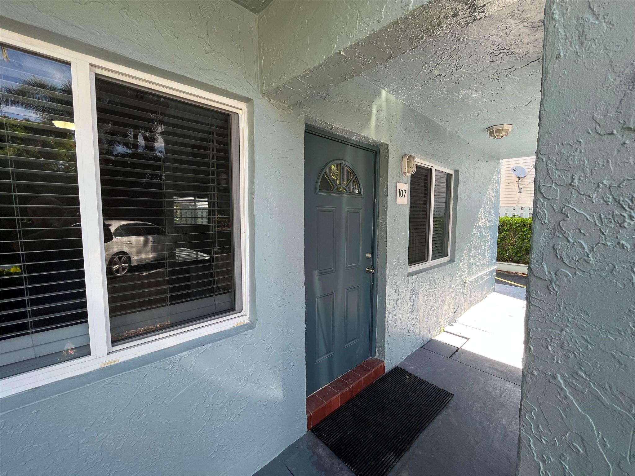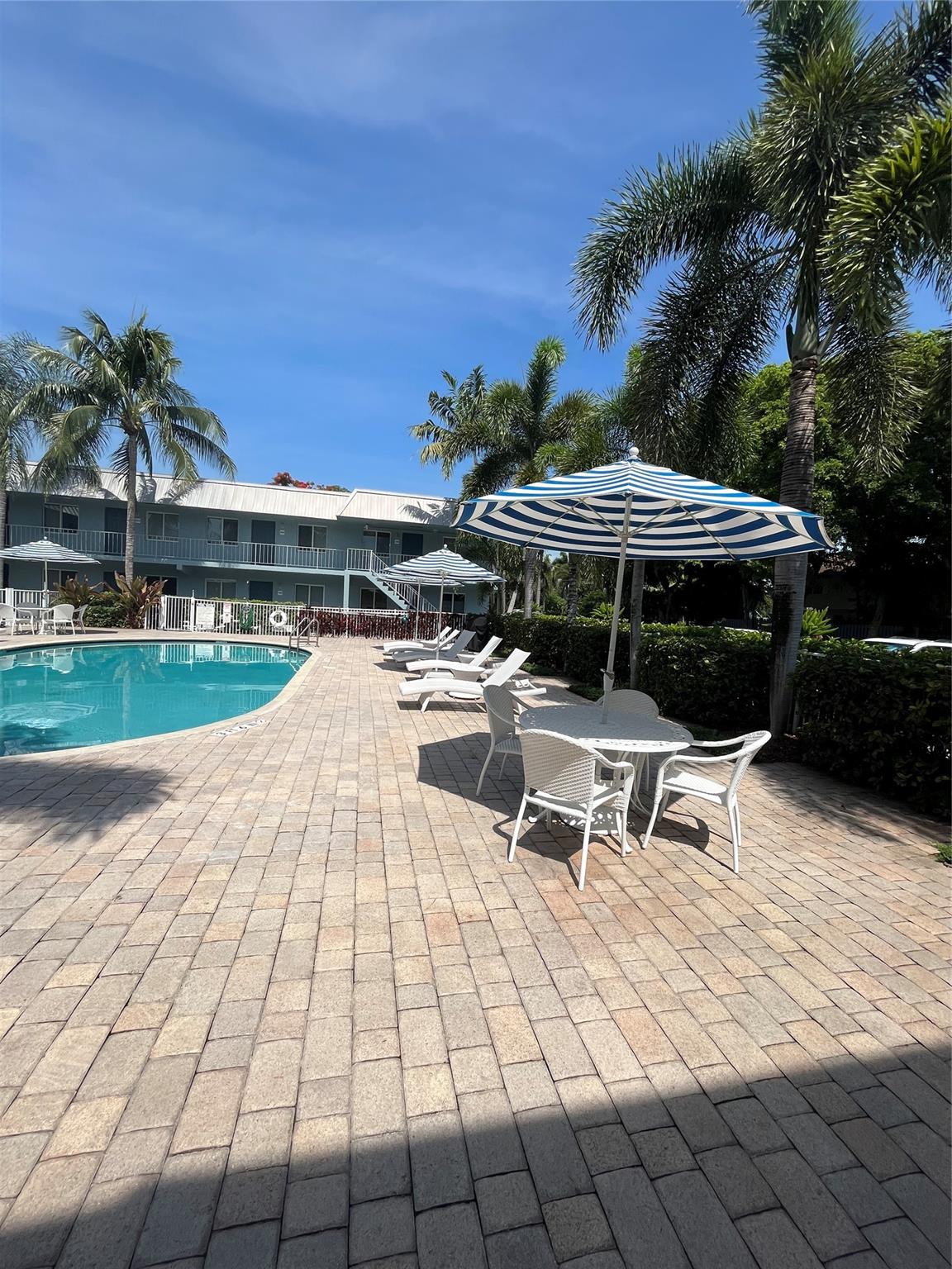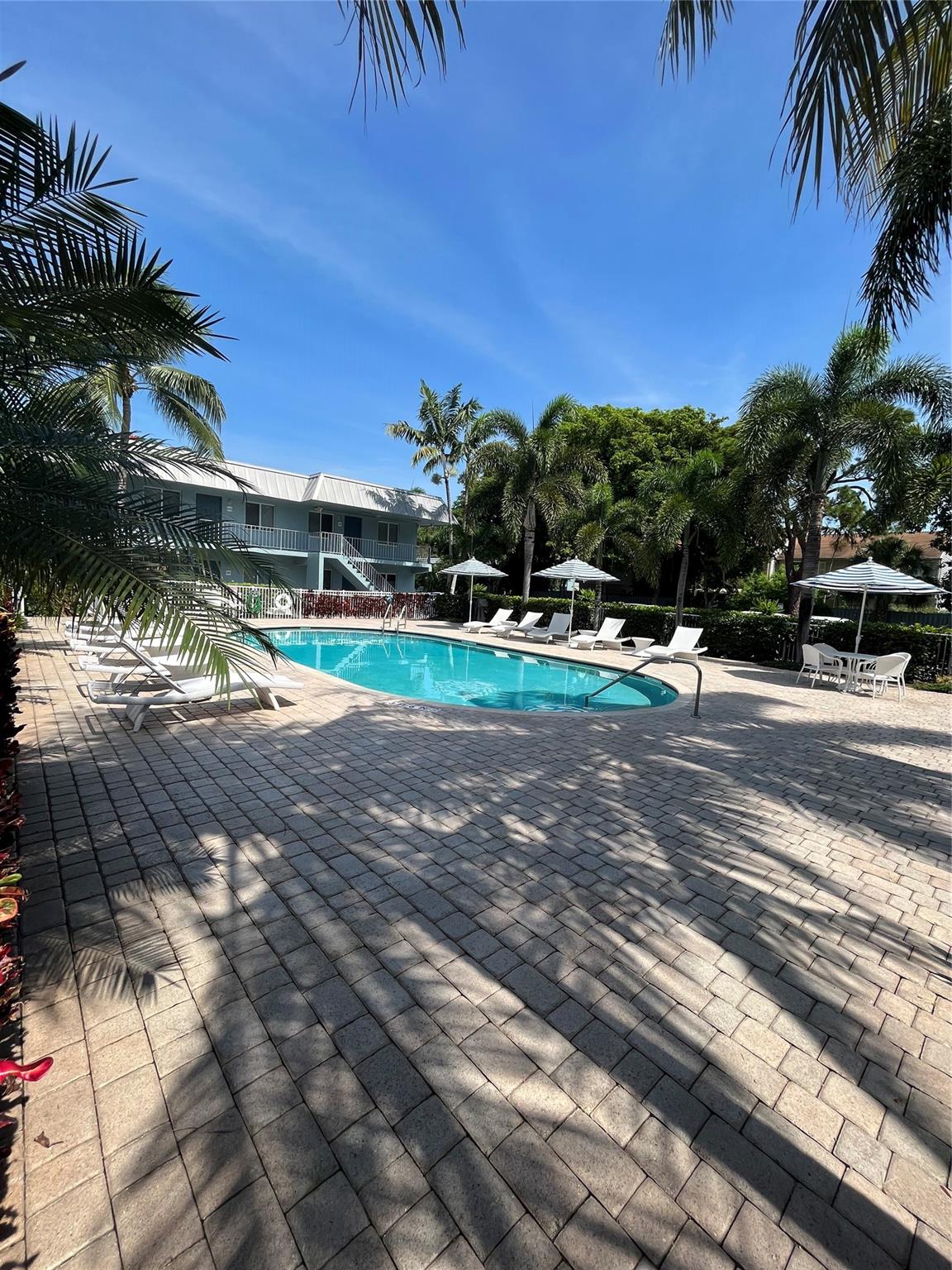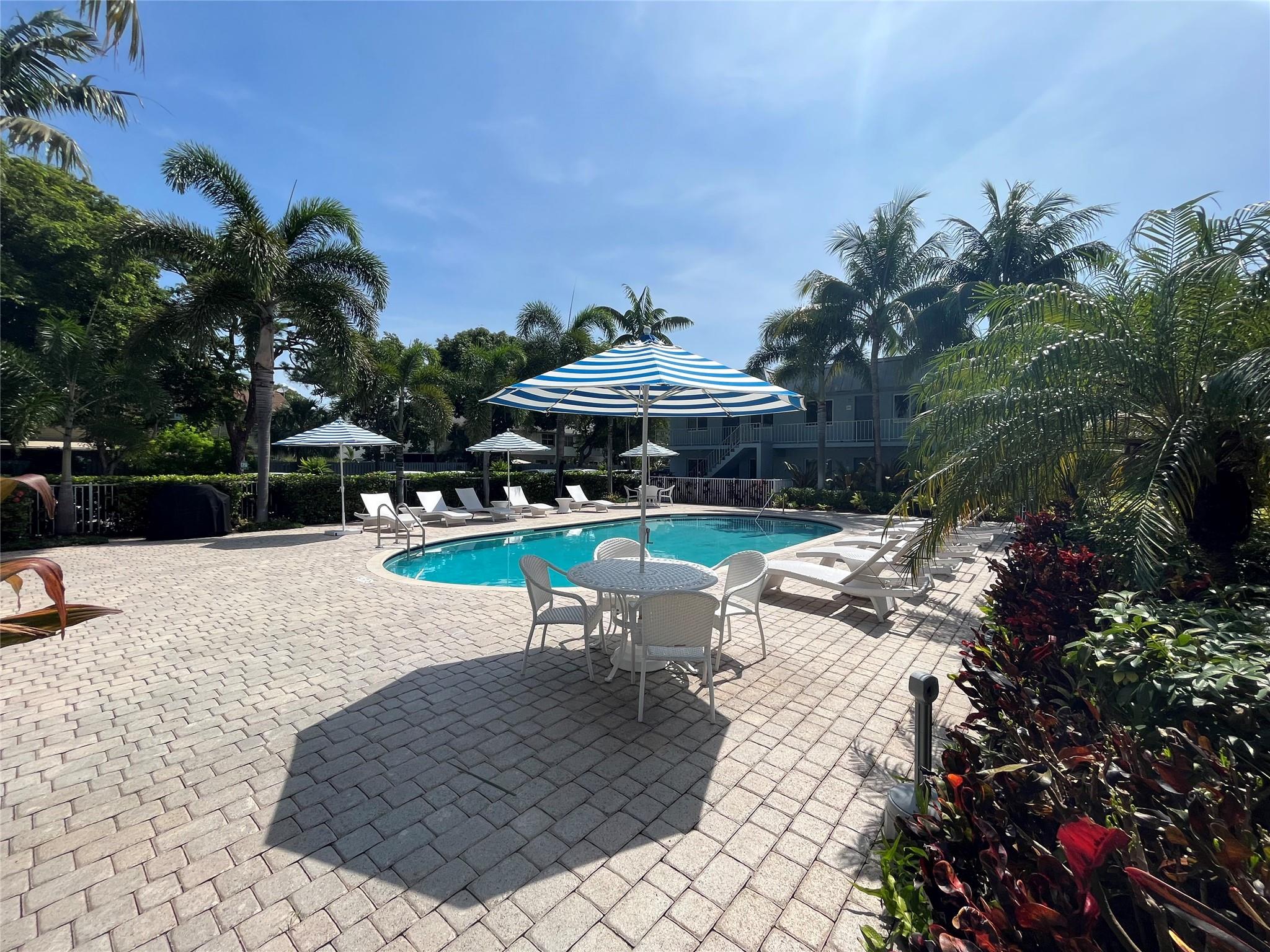 Beautifully remodeled first floor, 1/1 in desirable Poinsettia Landings. Flooring is ceramic tile throughout, Stainless Steel appliances, wood cabinetry, granite and tile in kitchen and bath. End unit. Lush tropical landscaping including heated pool, BBQ area, laundry facility in the building. Pet friendly! Photographs taken prior to current tenant's occupancy. Currently rented until October 11, 2025. Located near Wilton Drive, Downtown Ft. Lauderdale, shopping, restaurants, nightlife, and the beach. The information is deemed to be reliable but is not guaranteed.