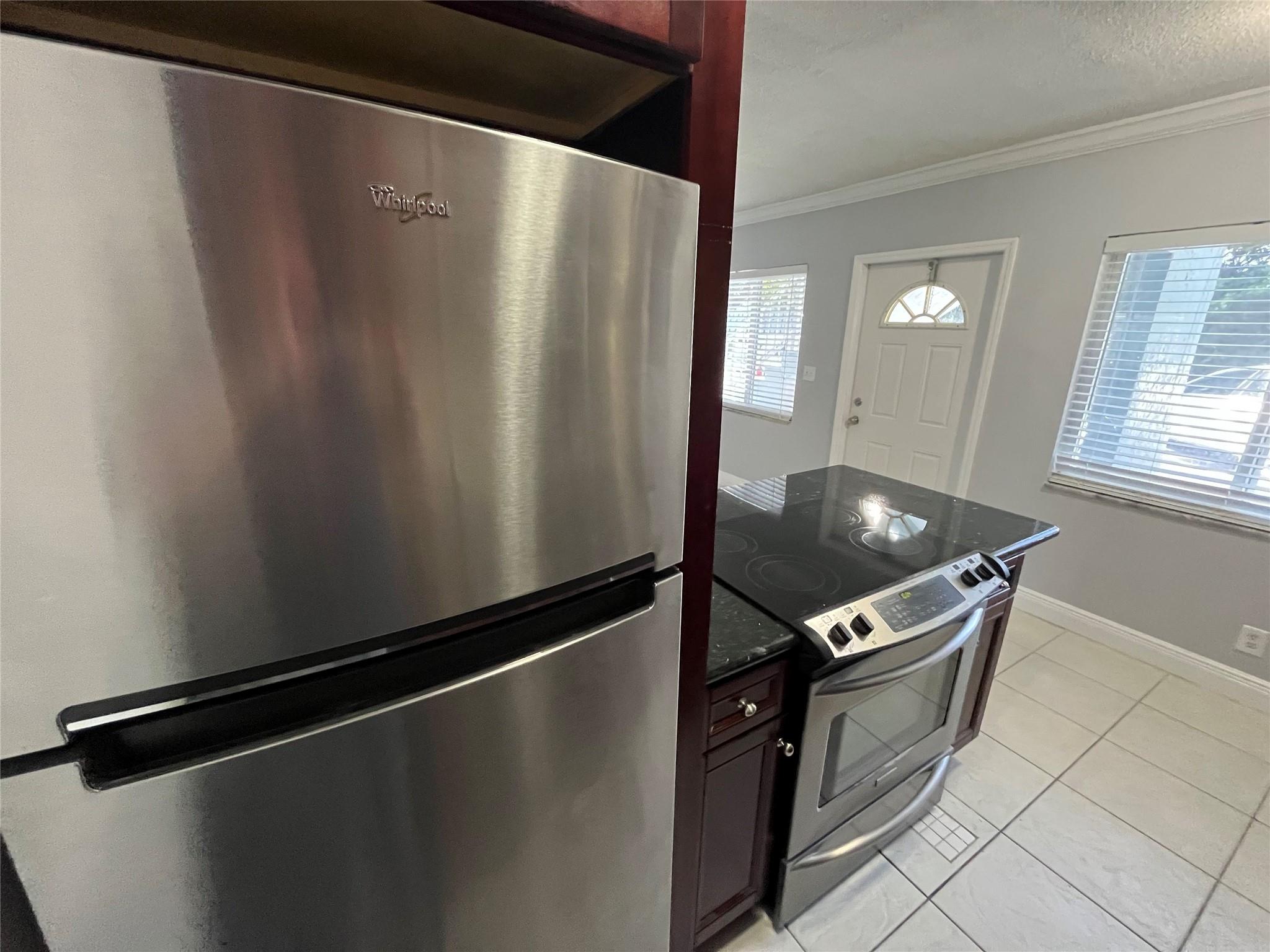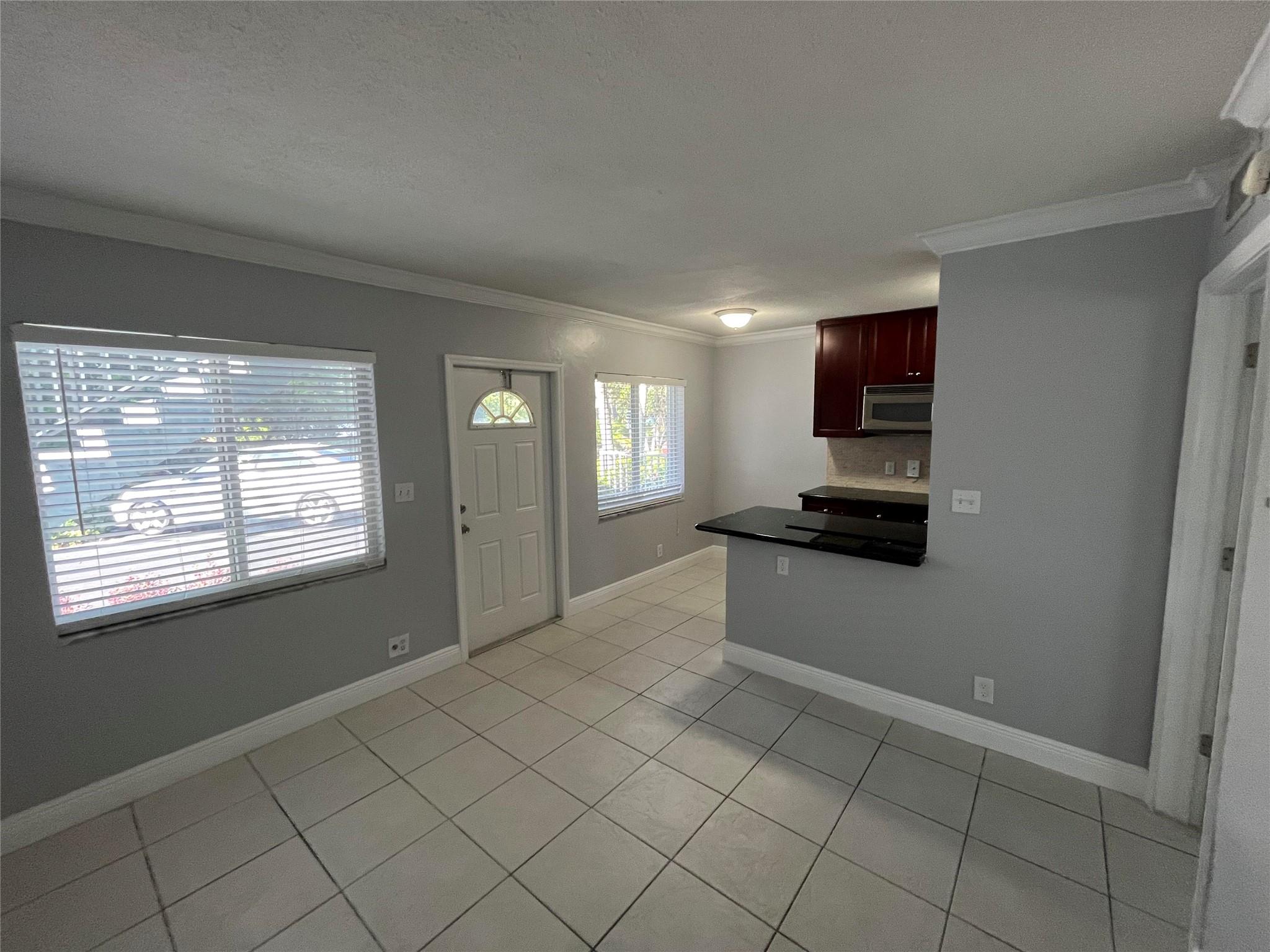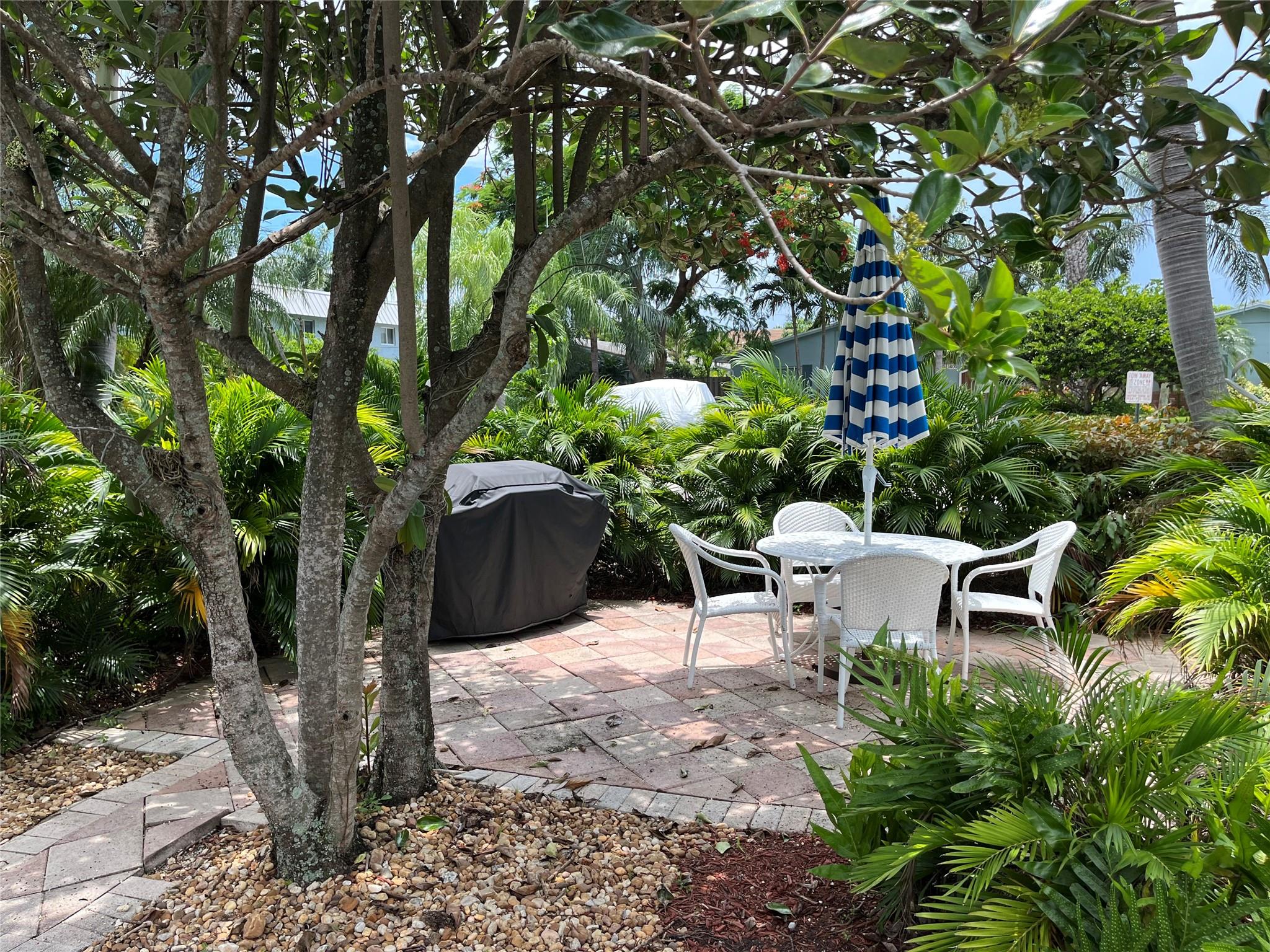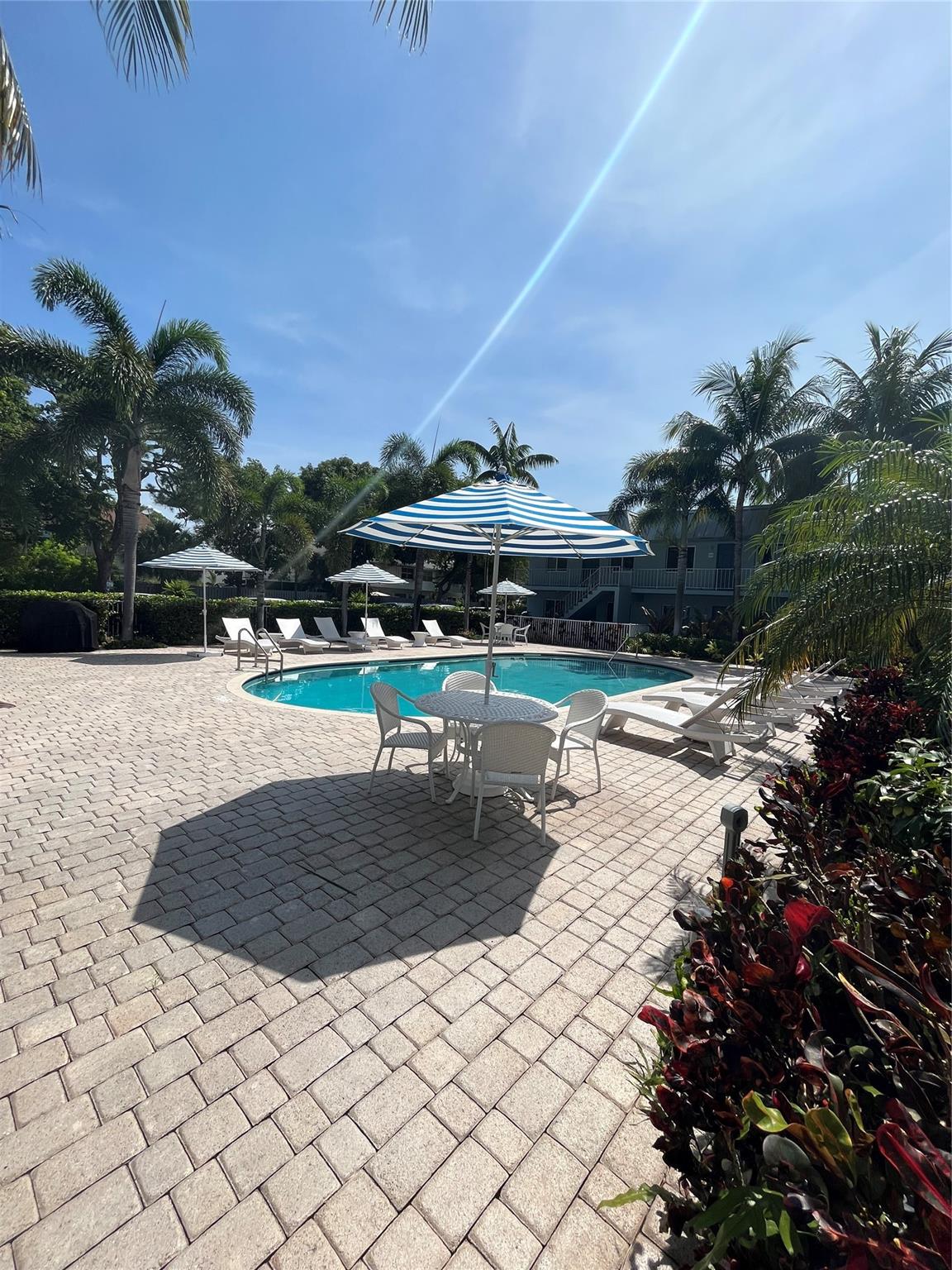 Beautifully remodeled first floor, 1/1 in desirable Poinsettia Landings. Flooring is ceramic tile throughout, Stainless Steel appliances, wood cabinetry, granite and tile in kitchen and bath. End unit. Lush tropical landscaping including heated pool, BBQ area, laundry facility in the building. Pet friendly! Photographs taken prior to current tenant's occupancy. Currently rented until October 11, 2025. Located near Wilton Drive, Downtown Ft. Lauderdale, shopping, restaurants, nightlife, and the beach. The information is deemed to be reliable but is not guaranteed.