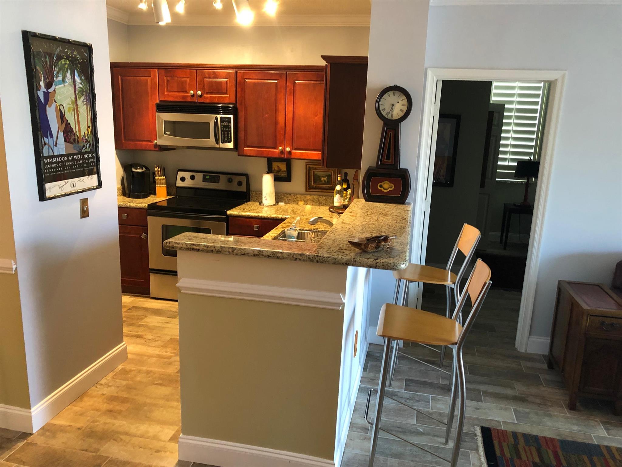 Experience Wellington's best seasonal living in the heart of it all! This updated 2-bed, 2-bath furnished condo with attached garage is in the sought-after St. Andrews at the Polo Club--just minutes from WEF, Global Dressage, and the National Polo Center. The open-concept layout boasts granite counters, stainless steel appliances, and modern flooring throughout. Each bedroom offers an en-suite bath (king & queen). Enjoy resort-style amenities--sparkling pool, spa, fitness center, tennis courts, BBQ area, and billiard room--all within walking distance to shops and restaurants. Multiple TVs, including in both bedrooms, make relaxing after show days a breeze.