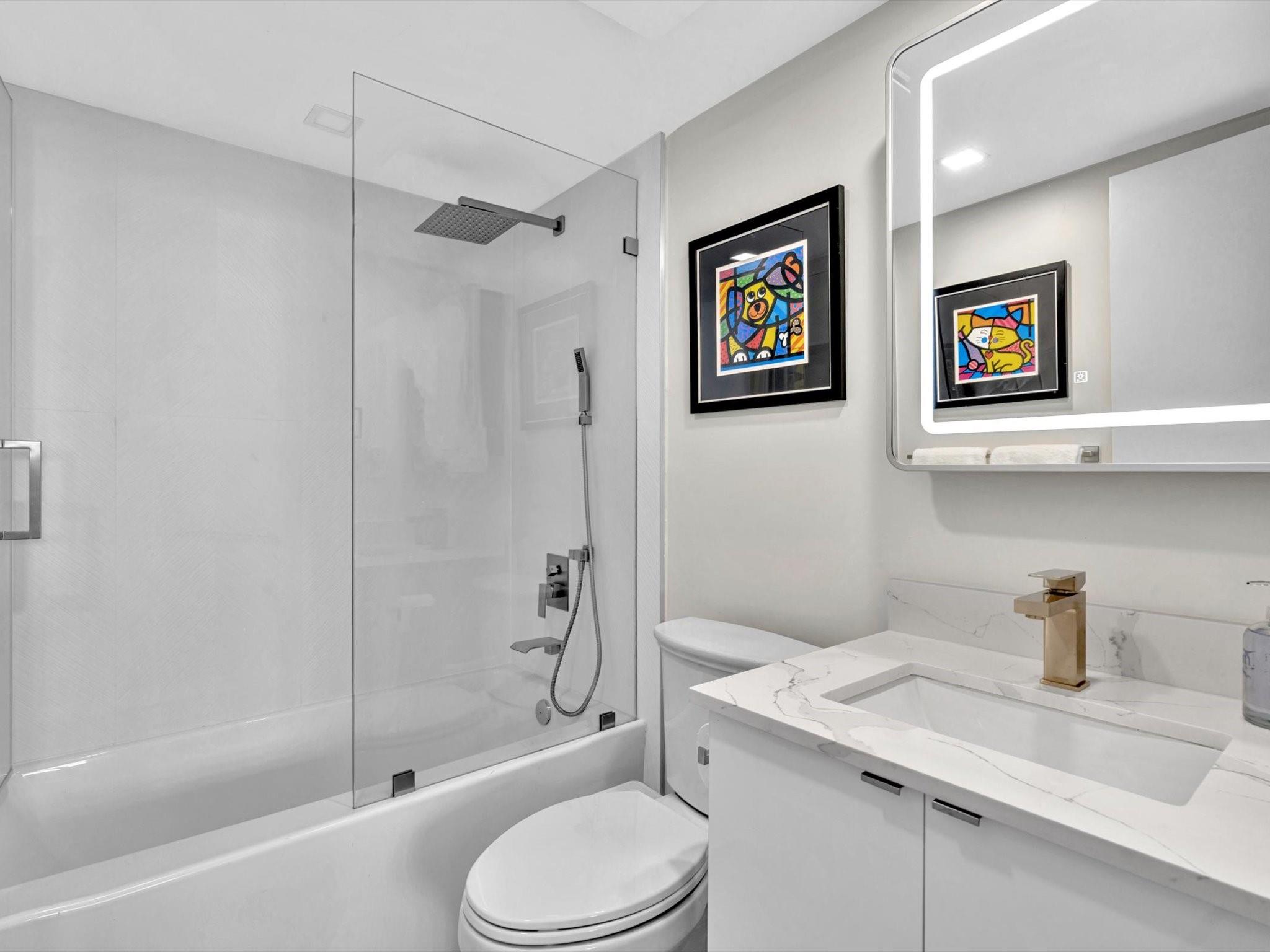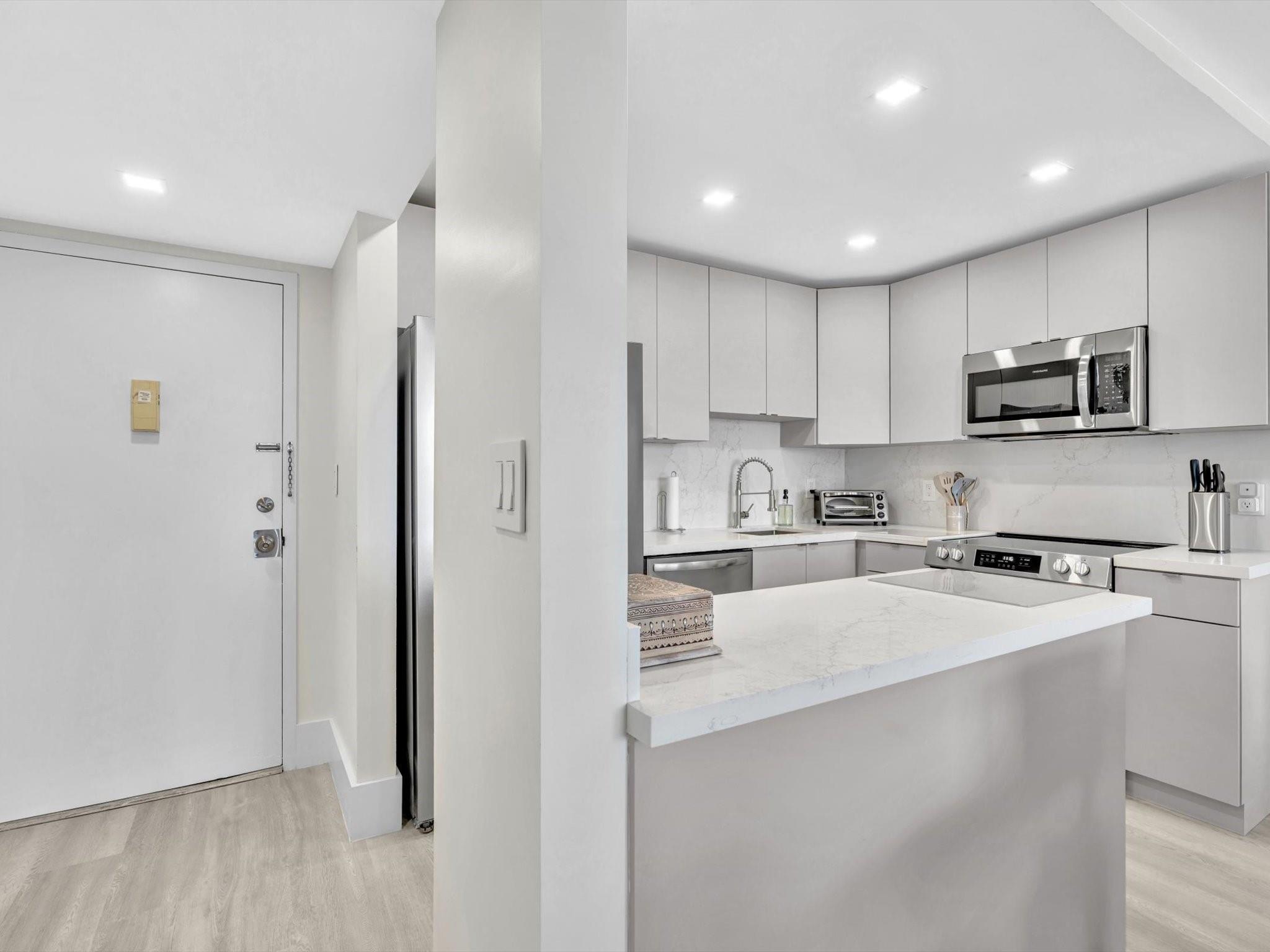 YOU just struck GOLD!! Nothing else compares at this price. COMPLETELY RENOVATED w/ newer designer furnishings & finishes. All NEW appliances incl. WASHER & DRYER. This stunning, over-improved unit boasts every upgrade imaginable. Just bring yourself—everything else is here: dishware, utensils, coffee maker, toaster, linens & more. Absolutely turnkey! Move right in & soak up the BEST VIEWS IN POMPANO—intersecting canals, island bridge, pool & beyond. And if you LOVE the beach, Rio Espana offers unmatched PRIVATE BEACH ACCESS w/ 13 parking spots, pavilion, grills, showers & picnic tables. Don't miss out on this once in a lifetime opportunity to be the 1st occupant (since renovation) of this beautifully appointed residence.