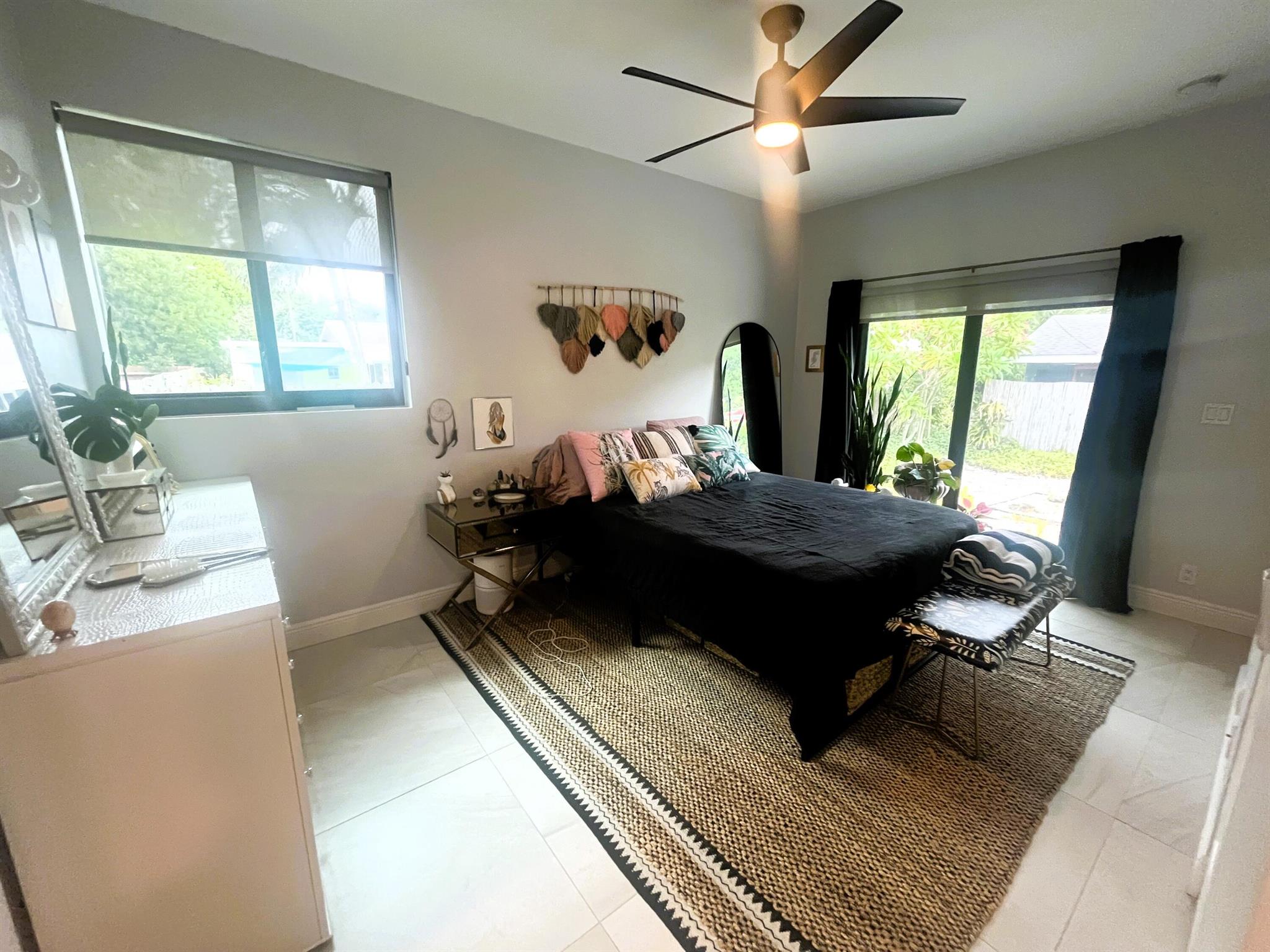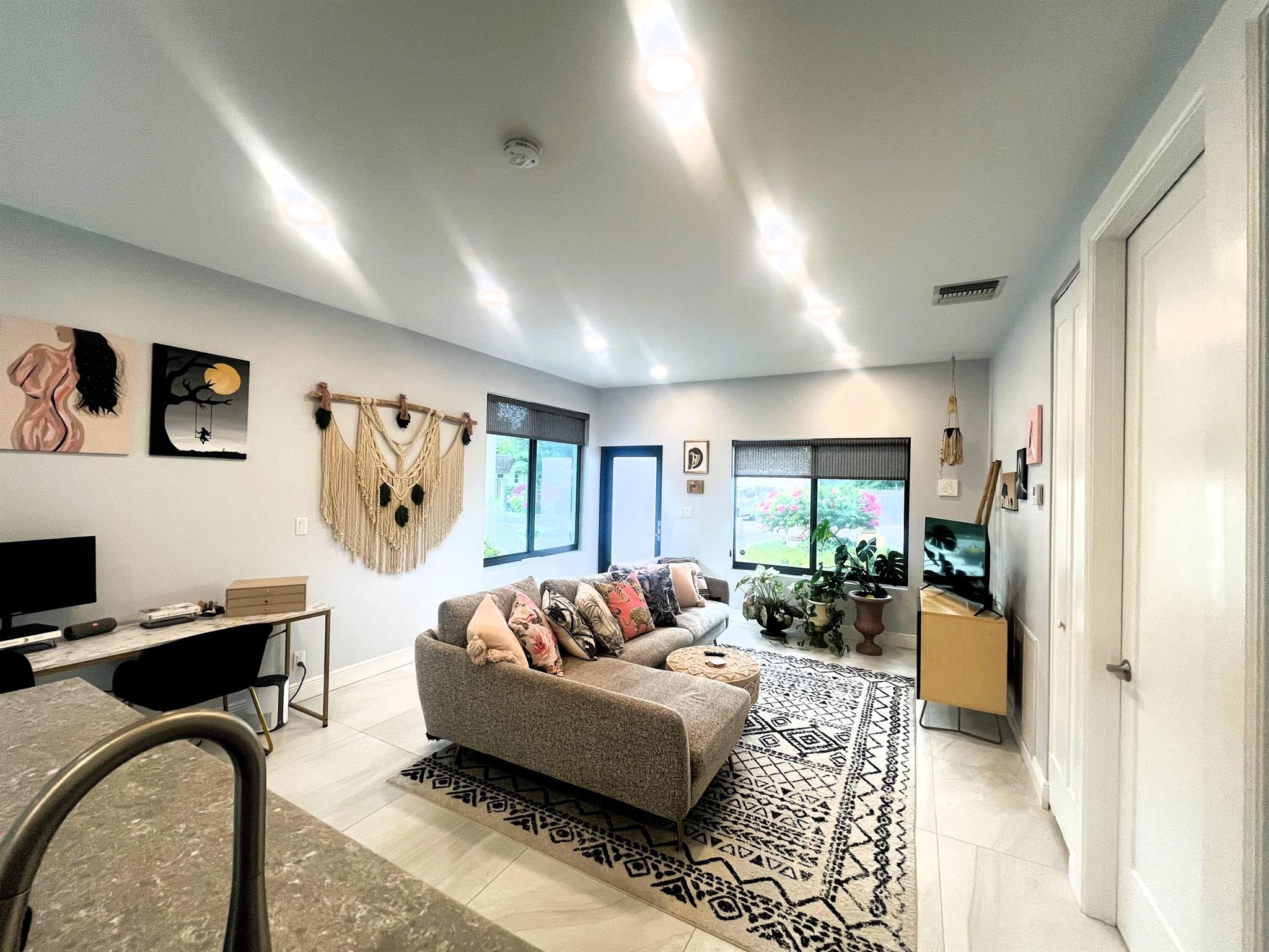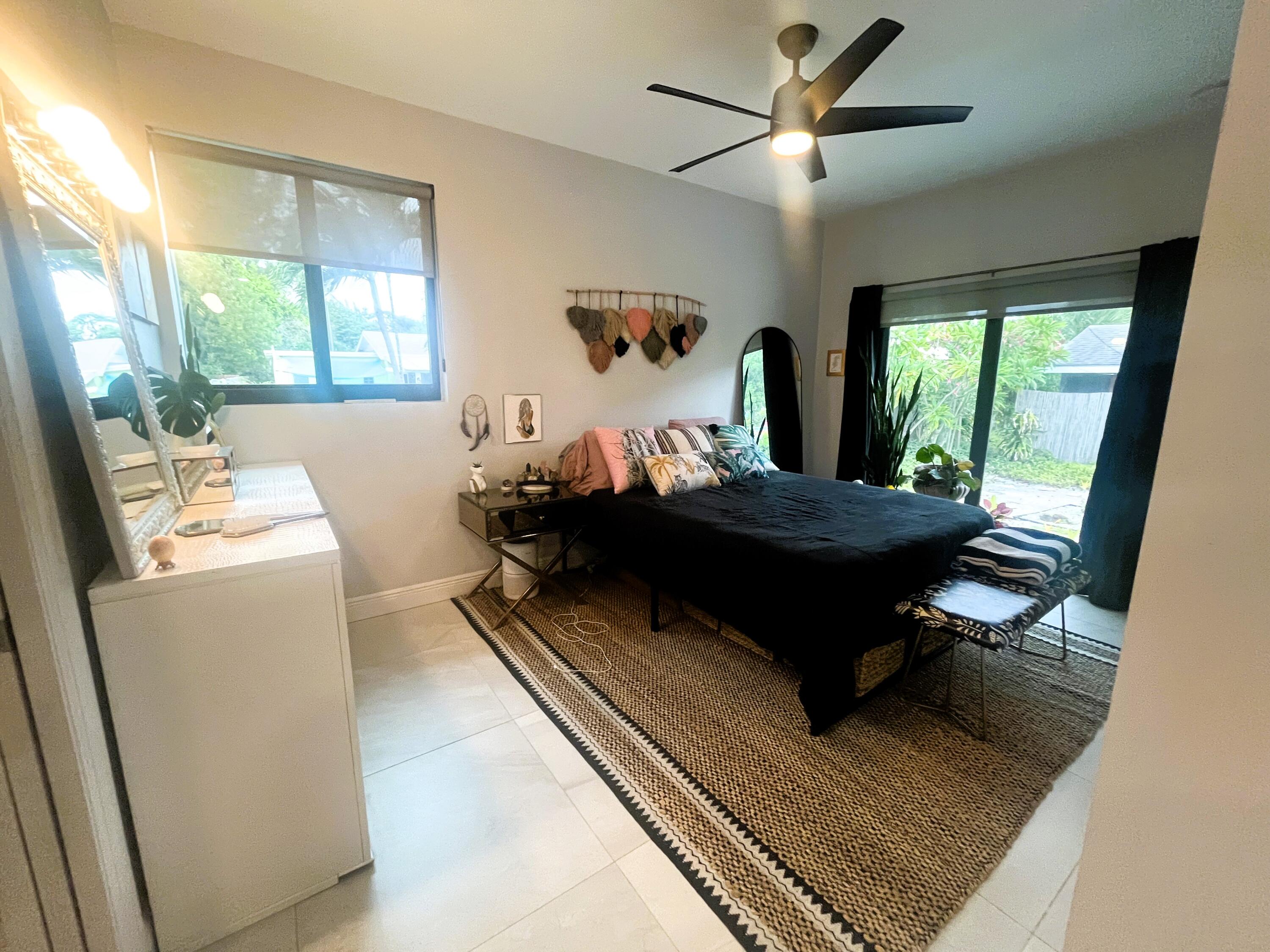 Modern single-family home built 2021. Located near downtown Delray Beach in quiet historical neighborhood near US1/Federal Hwy & Beaches. Large open kitchen and spacious floor plan for a with private washer & dryer. Everything new 2021! Front covered patio & back patio. Hurricane impact windows & doors. High ceilings with recessed lighting! Custom roll-down shades. 24x24 tile wall-to-wall. New appliances, central air-conditioning, instant tankless hot water system, serene lush landscaping with exterior artwork throughout, whole house water filtration system, off-street parking for 2 cars. Quiet serene area. No HOA! Quick Approvals! Water/sewer included in rent. Pet-friendly
