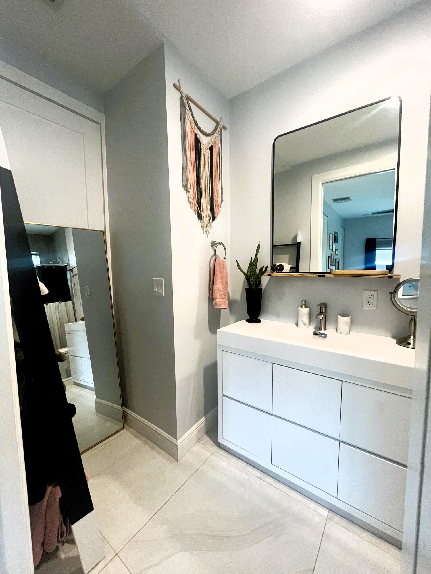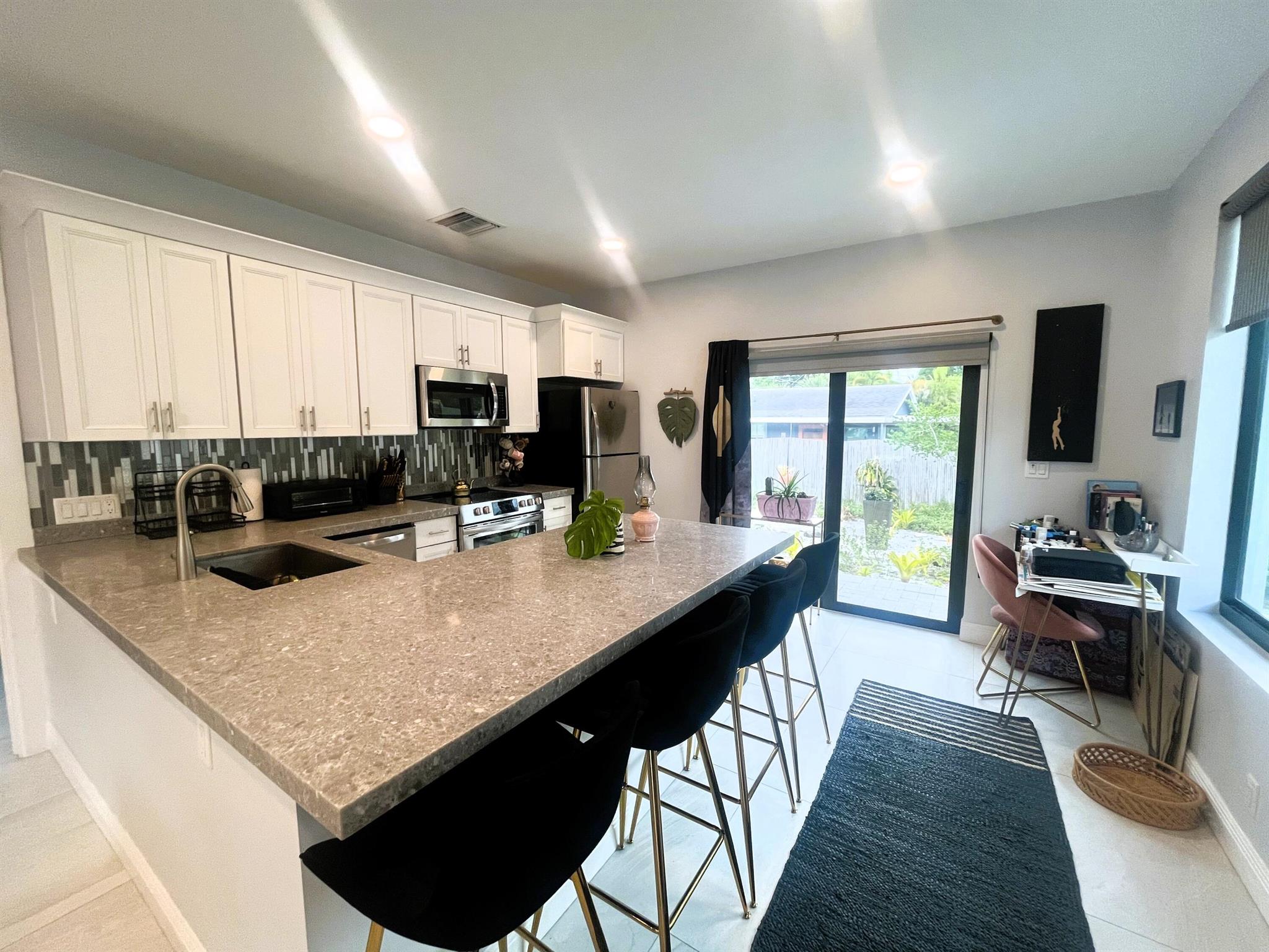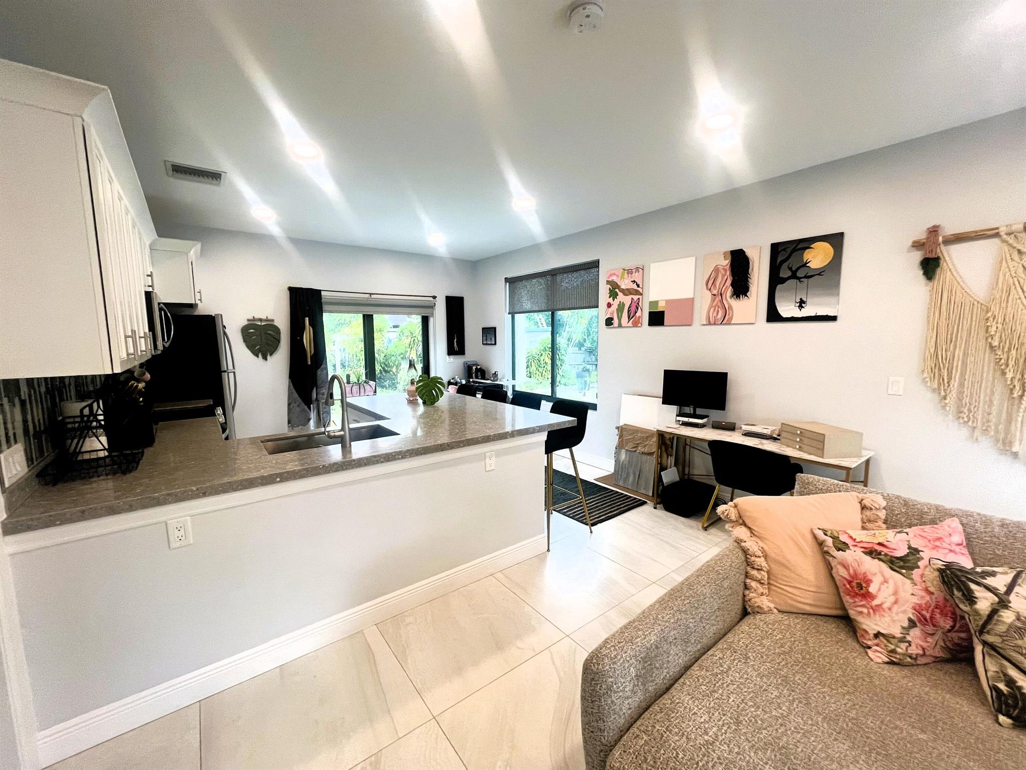 Modern single-family home built 2021. Located near downtown Delray Beach in quiet historical neighborhood near US1/Federal Hwy & Beaches. Large open kitchen and spacious floor plan for a with private washer & dryer. Everything new 2021! Front covered patio & back patio. Hurricane impact windows & doors. High ceilings with recessed lighting! Custom roll-down shades. 24x24 tile wall-to-wall. New appliances, central air-conditioning, instant tankless hot water system, serene lush landscaping with exterior artwork throughout, whole house water filtration system, off-street parking for 2 cars. Quiet serene area. No HOA! Quick Approvals! Water/sewer included in rent. Pet-friendly