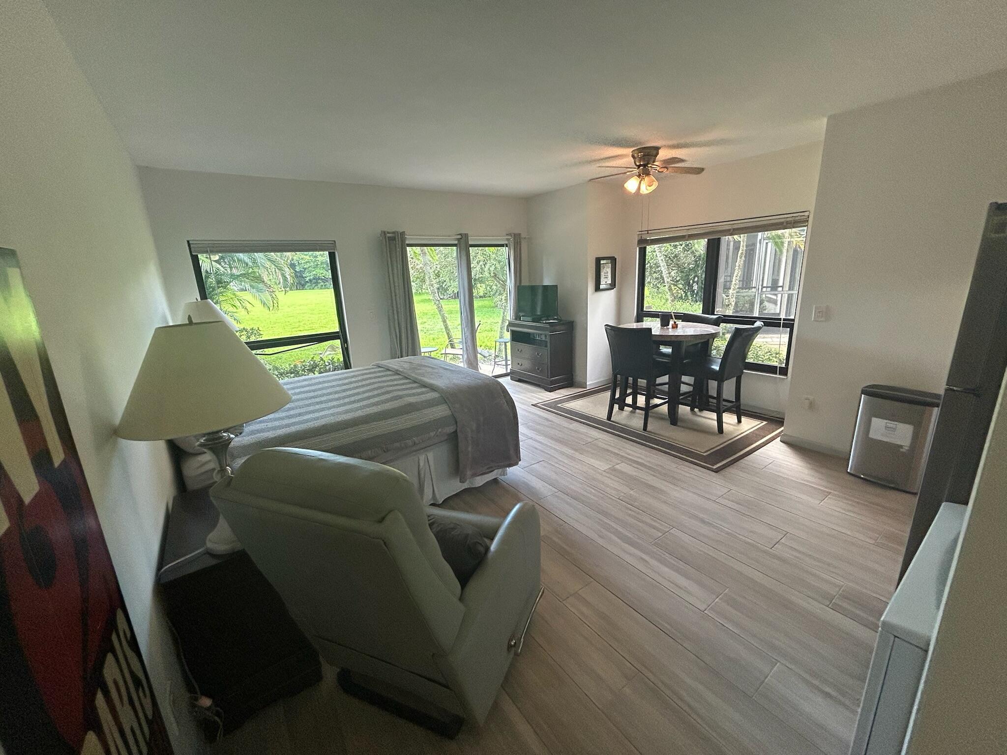 After a long day at the farm, come home to your peaceful getaway tucked away in the gated community of the Palm Beach Polo & Country Club, just minutes from Wellington's prestigious Palm Beach International Equestrian Center and Global Dressage. Close to shopping and amenities. If value is what you seek you have found your seasonal retreat. Clean, comfortable and spacious with an updated bathroom and covered patio to enjoy your morning coffee or evening beverage. Queen sized bed, assigned parking and plenty of guest parking steps from the front door. One small pet is welcome.