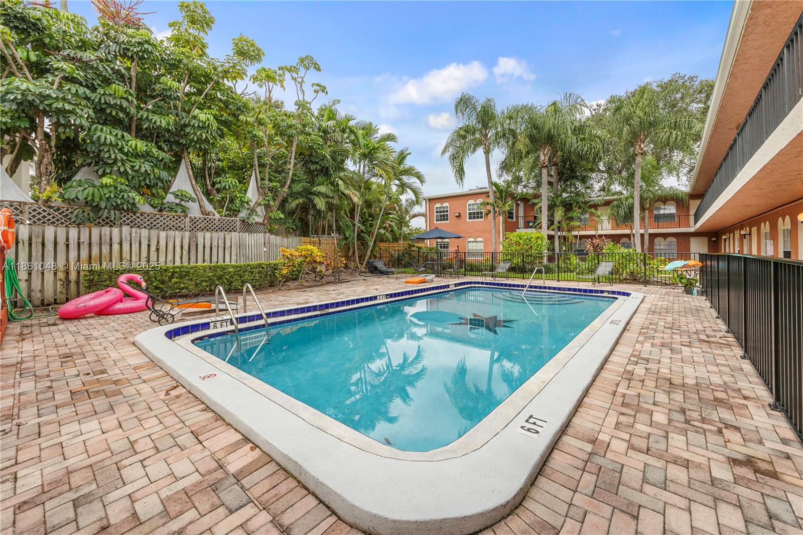 This charming 1-bedroom, 1-bath condo offers 609 sq. ft. of light-filled living space in a gated boutique community of SeaBreeze II in the heart of Harbordale. Located on the ground floor, the unit overlooks the beautifully landscaped courtyard and pool, creating a serene tropical retreat. The unit has large windows, multiple closets, and updated finishes including a modern walk-in shower, marble-style flooring. Sea Breeze II is a well-maintained community featuring assigned parking, guest parking, bicycle storage, on-site laundry, BBQ/picnic areas, and lush garden surroundings. The location is unbeatable—just minutes from Fort Lauderdale Beach, Port Everglades, Las Olas, the airport, shopping, dining, and nightlife.