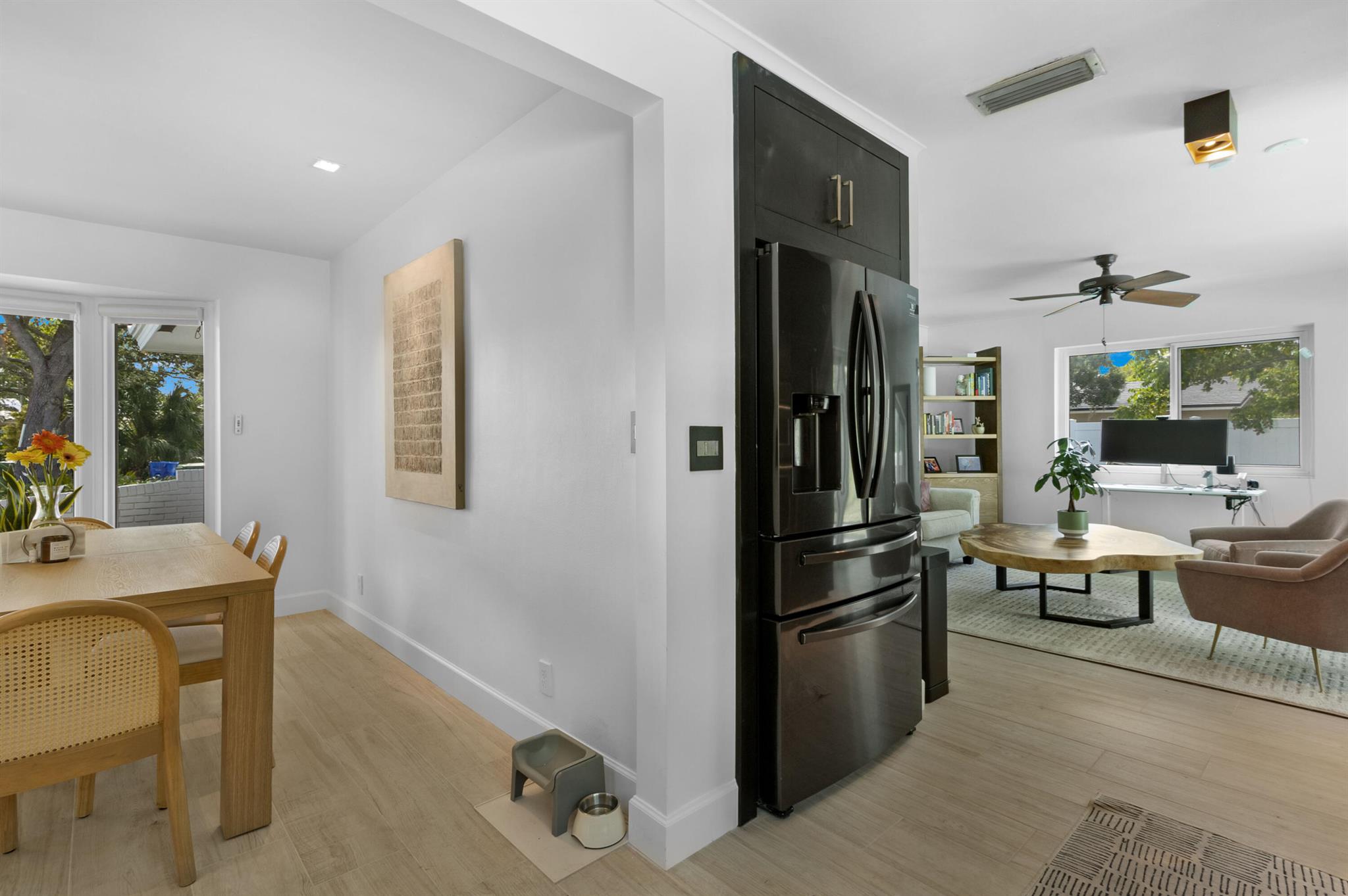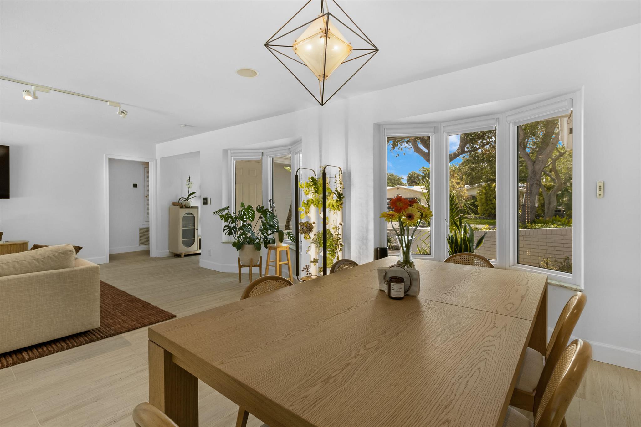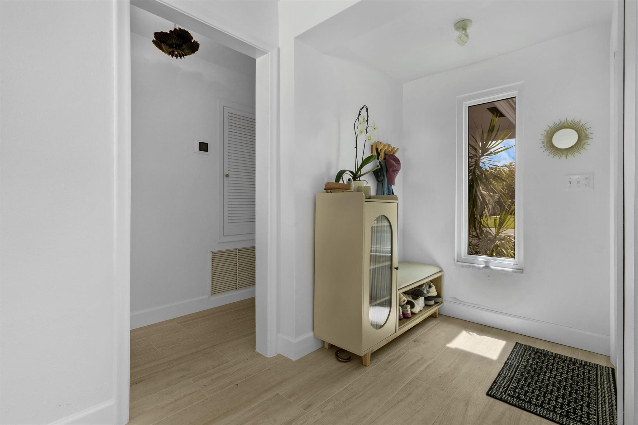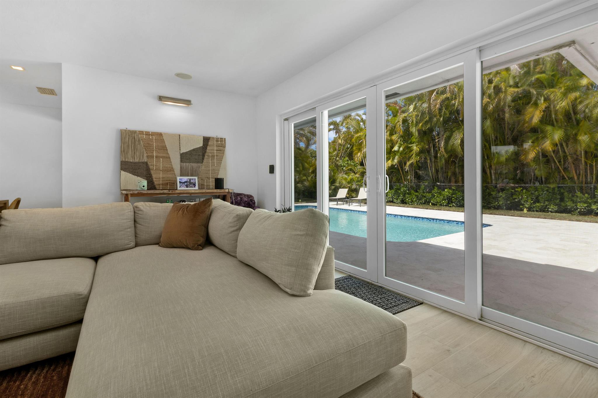 Welcome to this beautifully renovated 3/2, pool home in the highly sought-after Imperial Point neighborhood. Nestled on a lushly landscaped corner lot, this property boasts incredible curb appeal with a decorative circular driveway, courtyard entry, & full 2 car garage with epoxy flooring and air conditioning. Featuring Evie Haya premium porcelain tile flooring throughout and freshly painted interiors, this home blends modern comfort with designer finishes. The stunning primary bathroom showcases luxury porcelain tile, a frameless glass shower, a modern vanity, Delta TempAssure shower system, and bronze fixtures from Ferguson. Upgrades include complete impact glass and doors, a new RHEEM 80-gallon electric water heater, trenchless pipelined sewer system, smart thermostat,