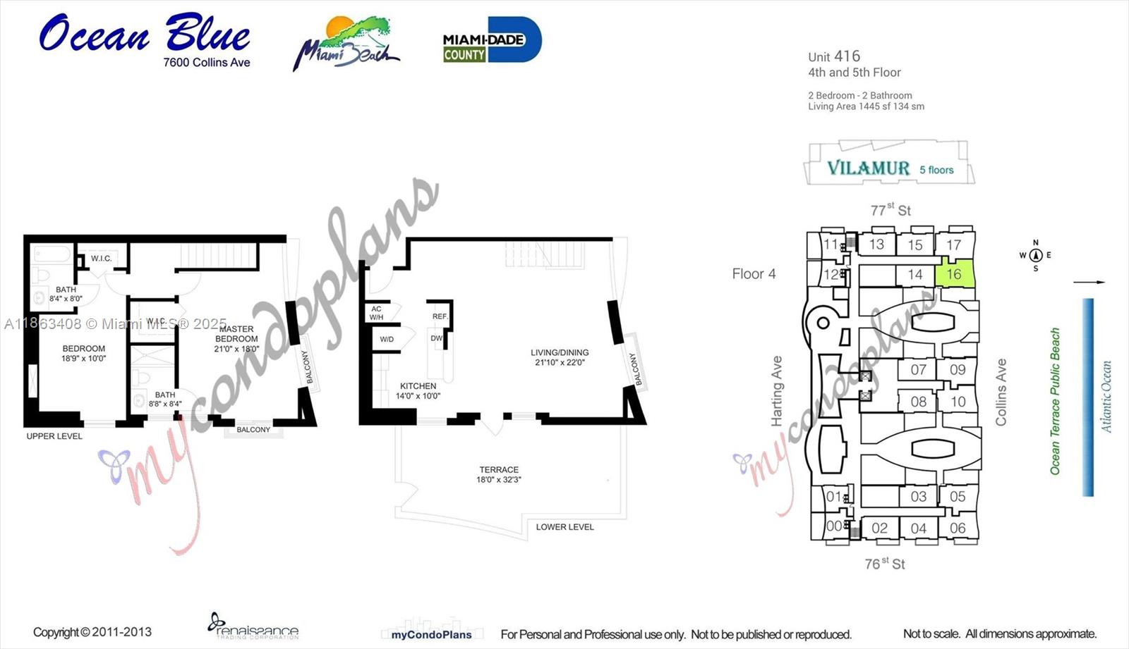 AMAZING UNIT 2 BED, 2.5 BATH, EXPANSIVE 1455 INSIDE SQUARE FEET, 2 STORY RESIDENCE PLUS 578 SQ FT PRIVATE TERRACE IN MIAMI BEACH, UNFURNISHED, GREAT FOR ENTERTAINING & ENJOYMENT.OPEN KITCHEN WITH NEW STAINLESS STEEL APPLIANCES AND GRANITE COUNTERTOPS.WASHER & DRYER INSIDE. 2 GARAGED ASSIGNED PARKING SPACES. LIVING AREAS & 1/2 BATH DOWNSTAIRS, 2 MASTERS UPSTAIRS. LARGE MAIN MASTER BEDROOM WITH OCEAN VIEWS. WATER, INTERNET & BASIC CABLE INCLUDED IN RENT. ENJOY HEATED POOL, SAUNA, GYM, & 24 HRS CONCIERGE. OCEANBLUE IS A FANTASTIC BOUTIQUE BUILDING, ACROSS THE STREET FROM AMAZING BEACH AND PARK. WALK TO NEARBY RESTAURANTS & NIGHTLIFE. VACANT, CALL LISTING AGENT TO SHOW