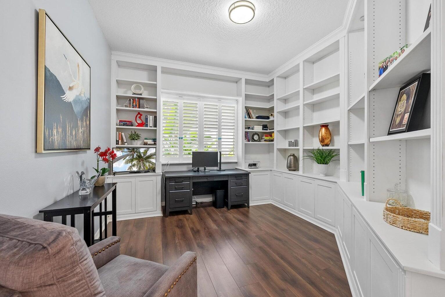 AVAILABLE FOR SEASONAL LEASE! ALSO, AVAILABLE ANNUALLY $7,000/MONTH. Enjoy the South Florida lifestyle in this 3BR/2.5BA + Flex Room home in the Grande neighborhood of The Club at Ibis. Perfectly positioned on a private lot with serene water views, this floor plan features soaring ceilings, sun-filled living spaces, and a newly expanded lanai with travertine pavers and custom screening.The open kitchen and family area are ideal for entertaining, with a gas range, new stainless-steel refrigerator, Corian countertops, and plenty of dining space. Upgrades include fresh interiors, crown molding, plantation shutters, custom built-ins, and brand-new plank flooring in the bedrooms and office.