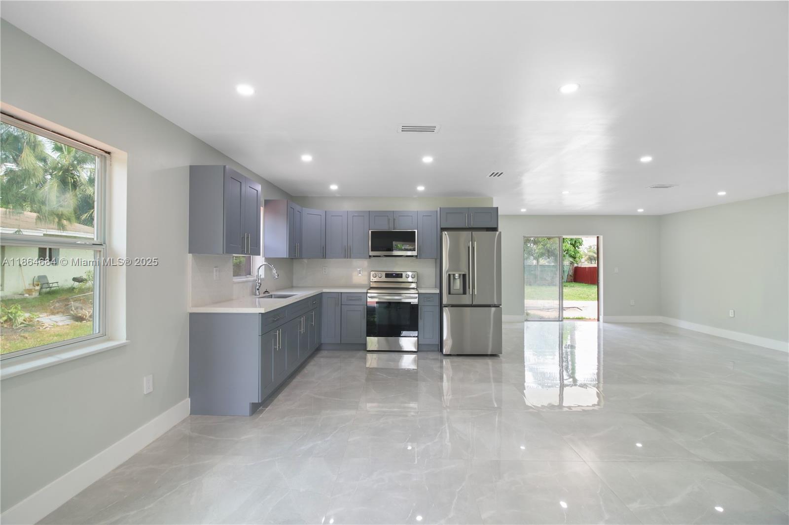 Spacious 3 bed, 2 bath back unit of a renovated duplex featuring a massive private backyard and walk-in closet. Open-concept living and dining with plenty of natural light. Completely updated with brand-new finishes, stainless steel appliances, and modern cabinetry. In-unit laundry hookups for convenience, plus tankless water heater for efficiency. Pet-friendly with ample parking. Impact windows coming soon. Quick approval process and fast move-in available. Centrally located with easy access to Gratigny Expressway, close to Miami Dade North Campus and Amelia Earhart Park. Perfect for those seeking comfort, privacy, and space! *FIRST RESPONDERS RECEIVE 1 MONTH FREE*