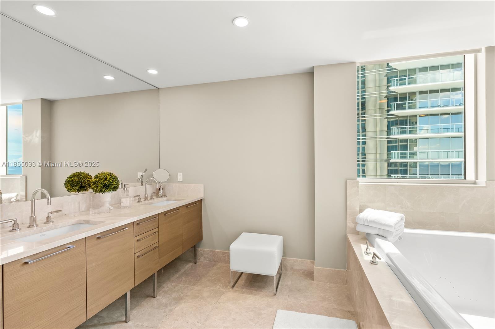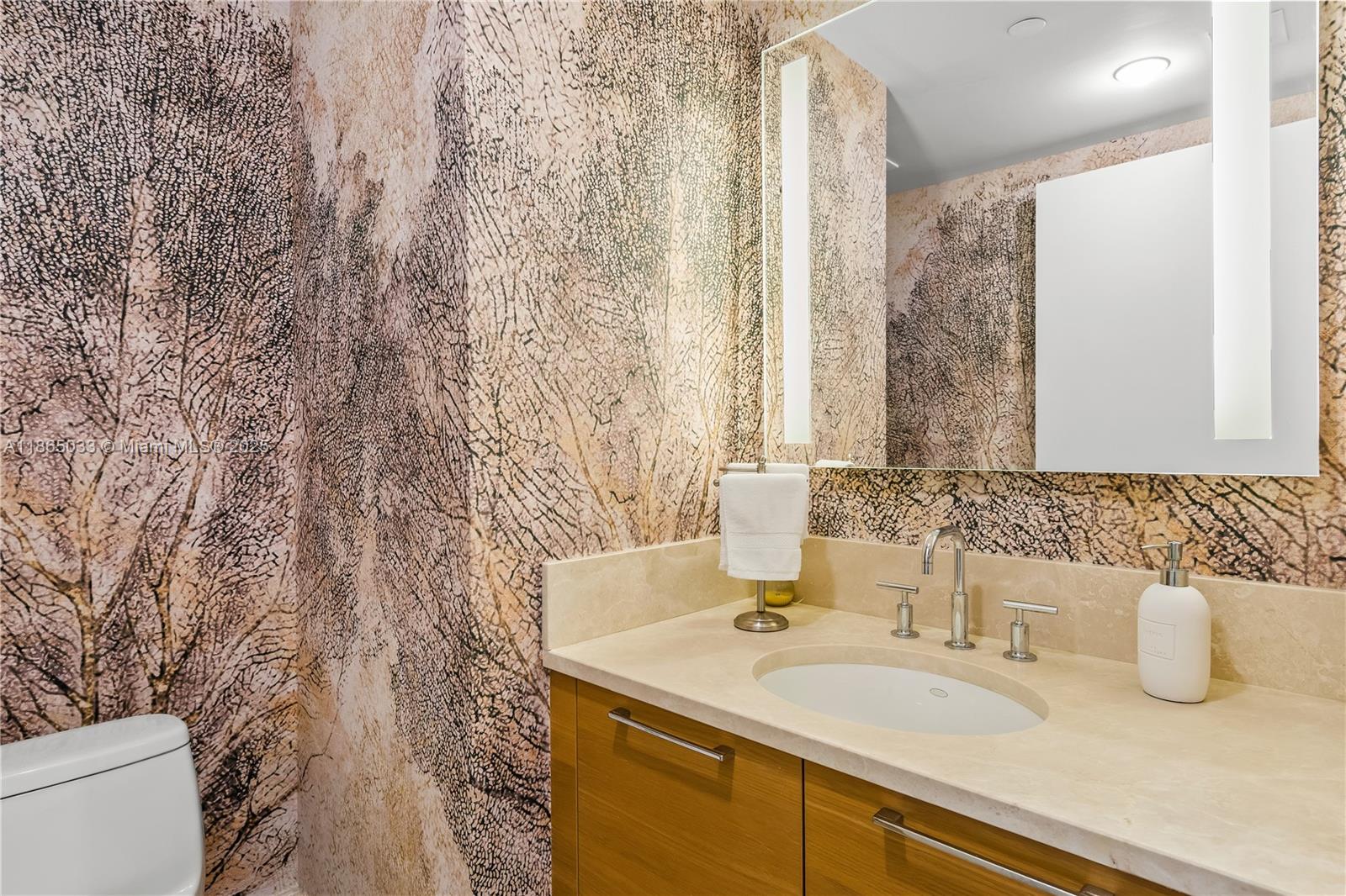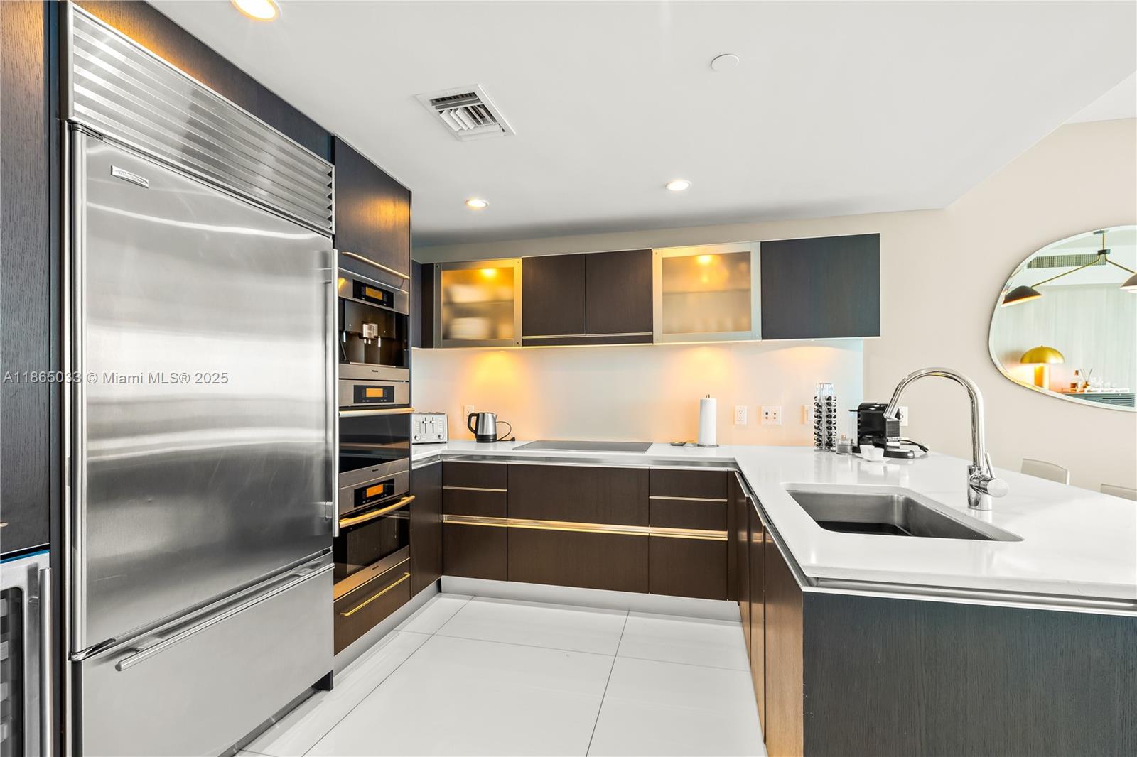 Spectacular furnished corner residence, 3 beds + 3.5 baths with private elevator opening to a private foyer. Enjoy breathtaking, unobstructed ocean views from this residence in the sky. Beautifully decorated with wallpaper, Artefacto furnishings and other luxury brands, electric shades, European appliances, quartz kitchen countertops, Snaidero cabinetry, custom millwork, closets, and window treatments. A truly unique high-end home with elegant design and finishes.