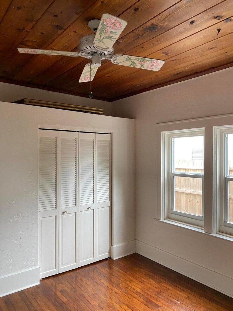 Charming single family home with lots of character in pristine condition. Hardwood floors just refinished in dining and living room. Large kitchen with Island, separate laundry room with newer washer and dryer. The primary bedroom is spacious with a walk-in closet. Nice size second bedroom. The entrance way is a separate room with a closet, great space for an office or guest area. House has been painted and refreshed. Huge, fenced yard, off the street parking. Windows & doors are impact glass. This house is a great find. Garage in the back is Not included. Owners use for storage. Lawn care is tenants' responsibility.
