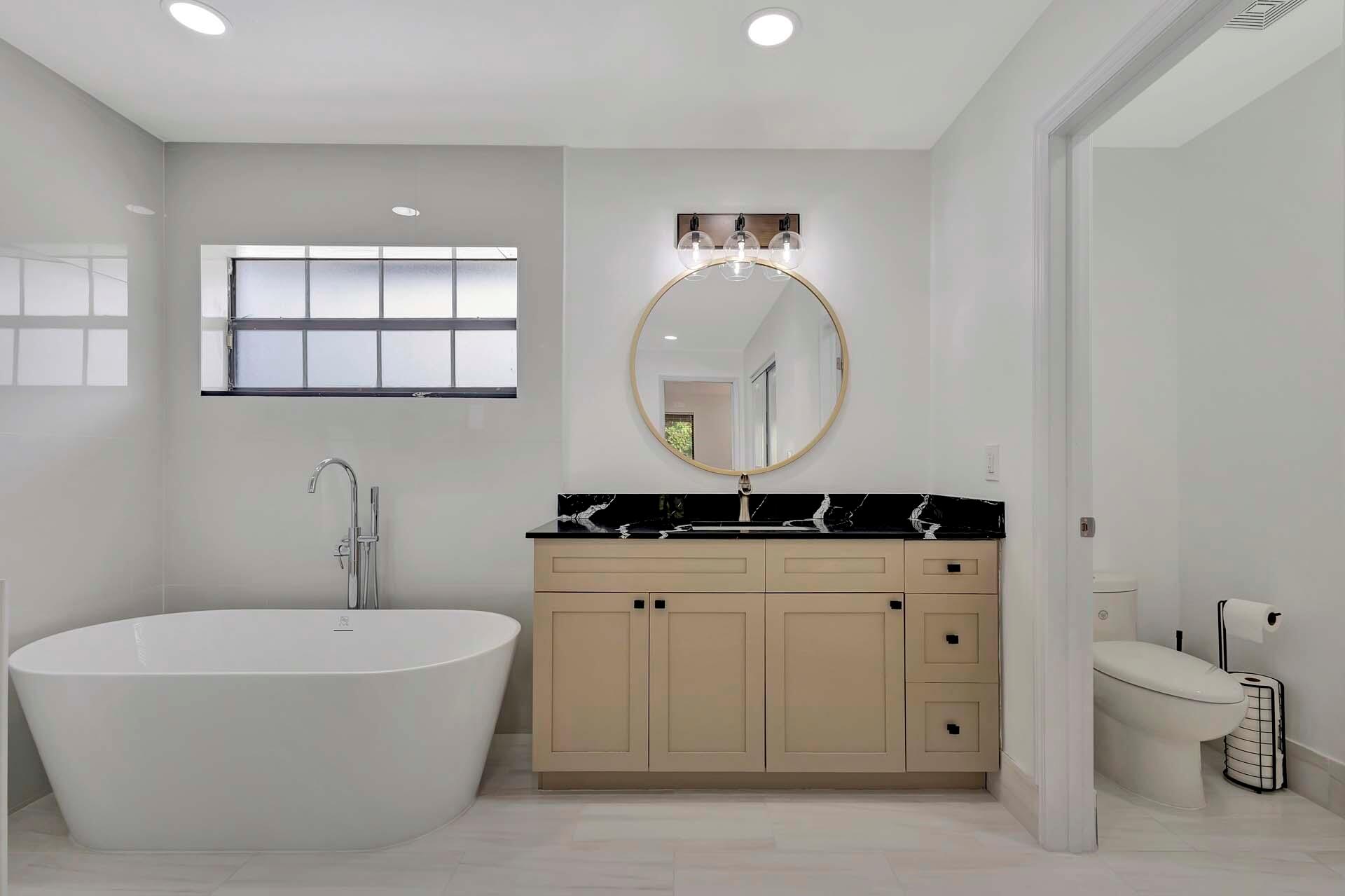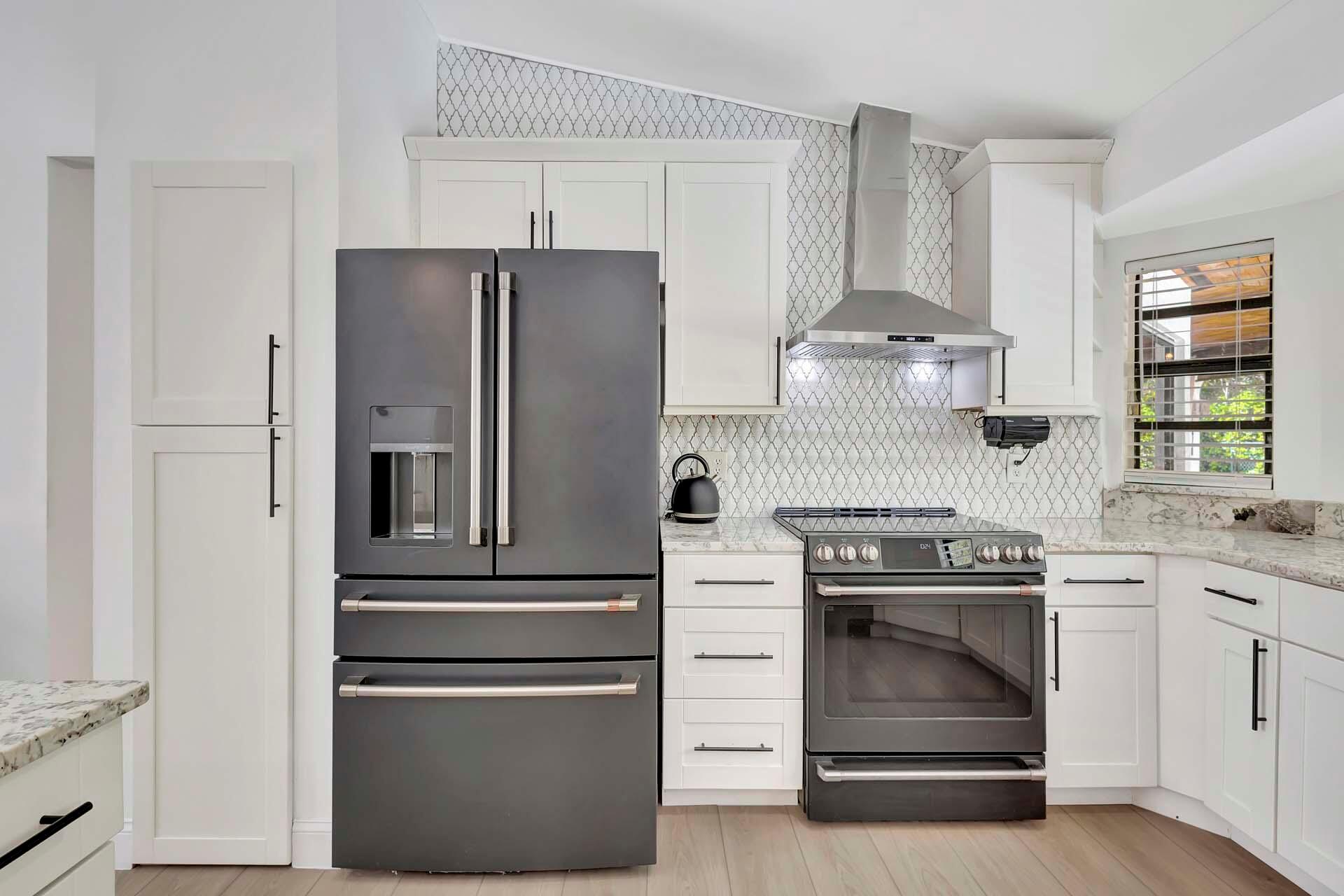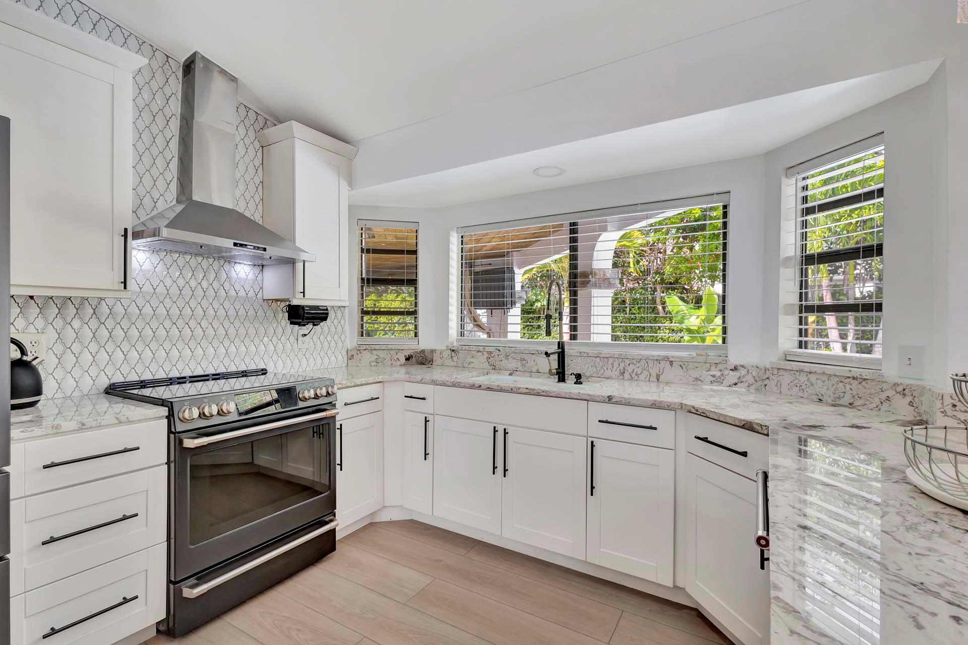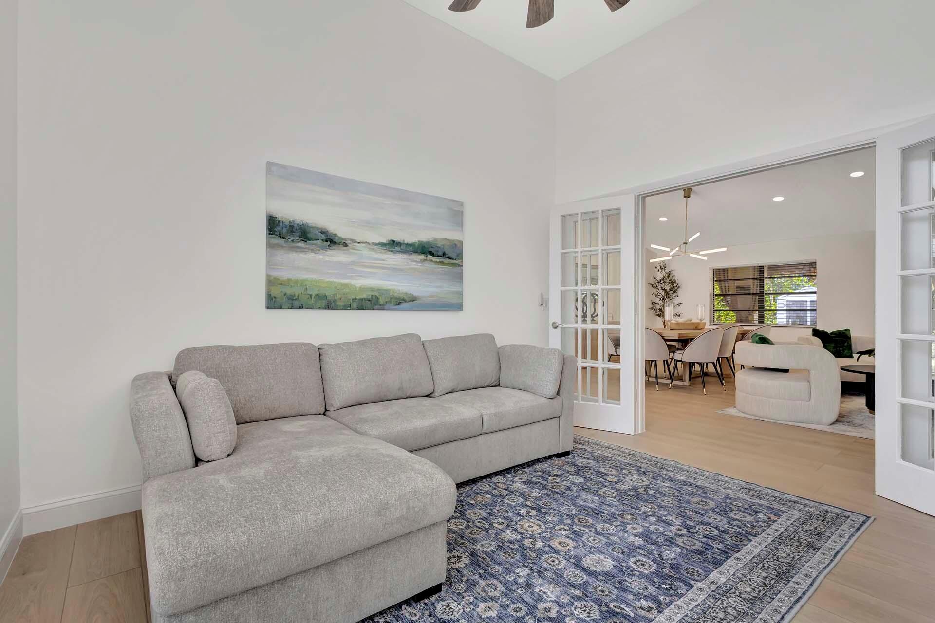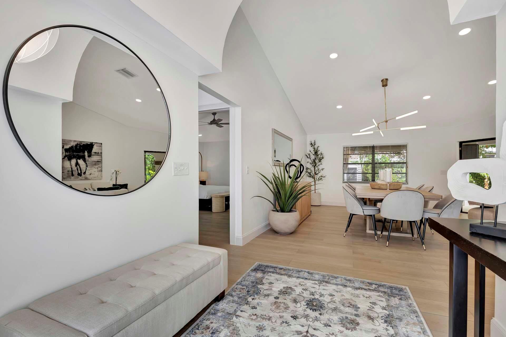 This stunning 4-bedroom, 2-bath home exemplifies luxury living. Completely updated with brand-new furnishings. Enjoy a spacious split floor plan and an open-concept design that will impress. The fourth bedroom, furnished with a double sofa bed, serves as a versatile den/office. This home offers multiple exquisite living and entertaining spaces, leading to a fully fenced, private tropical oasis with a large lanai, pool, and several gazebos for shade and relaxation. It features a 2-car garage and an oversized driveway for ample parking. Conveniently located, it's just a short distance from all amenities and less than 3 miles from Wellington International and Global. The roof was replaced in 2021. New impact doors and windows.