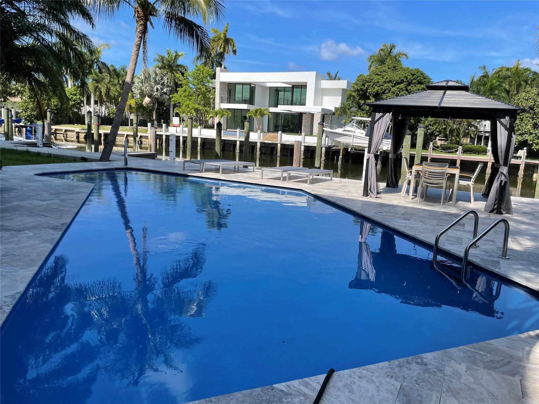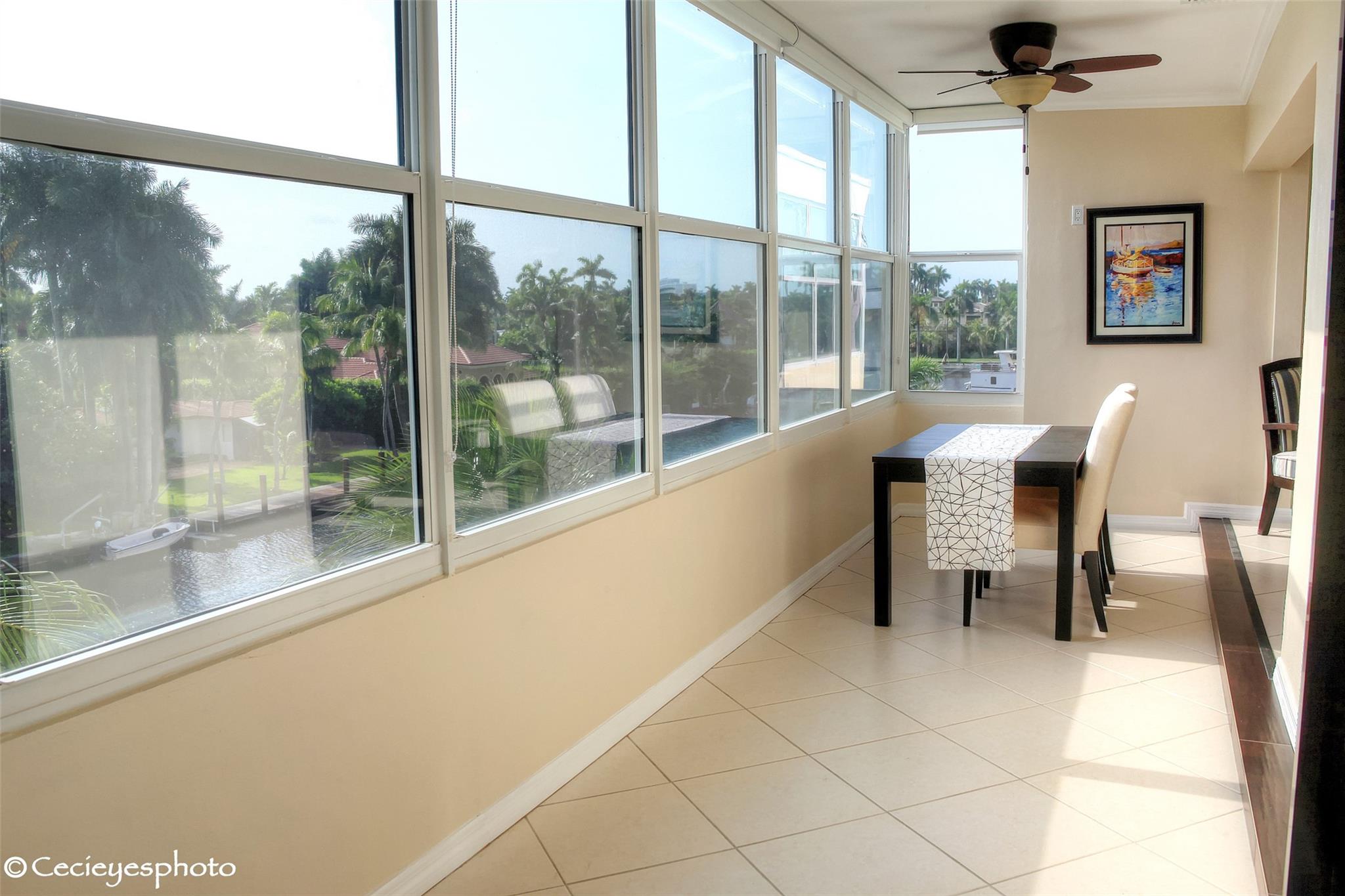 Annual lease only. Chic designer renovation in boutique building on luxury street. Live among the millionaires. Comes fully furnished. Sorry not available unfurnished. Renovated Kitchen with stainless appliances, tiled back splash and granite countertops. Impact windows. Built in book shelves. Second bedroom converts to den/movable walls. Murphy bed in second bedroom/den. Updated bathroom. Boutique building on luxury row. South, East and North water views. Superb location. Walking distance to Fort Lauderdale Beach & Las Olas. Sorry no pets or trucks. One parking spot. Street parking may be available from the City of Fort Lauderdale. Non-smoking community. Building & dock upgrades have been completed.