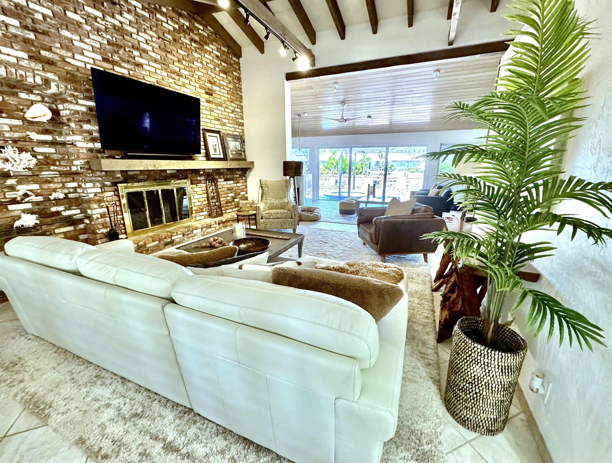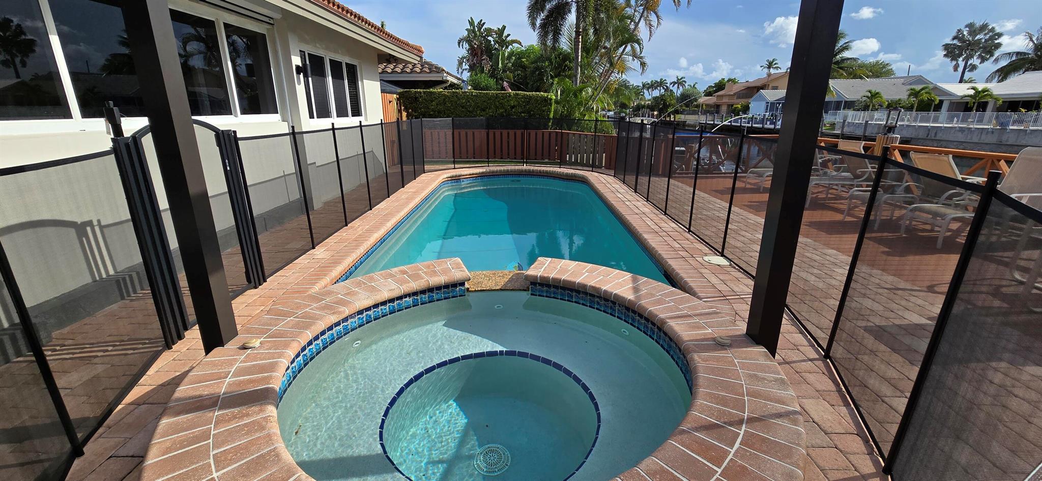 Amazing water views! No fixed bridges! Bring the boat! Beautiful intracoastal home, pool, jacuzzi & dock! Great location close to restaurants, shops & beach! Gorgeous beamed cathedral ceilings, spacious & open floorplan. Remodeled kitchen, granite counters, island, eat in area, stainless appliances, Subzero refrigerator & Thermador double oven. Built in pantry cabinets for ample storage. Butler kitchen & versatile office. Brick fireplace living room, formal dining & buffet area. Family room w long waterfall counter bar. All overlooking the pool & intracoastal! Master bedroom offers walk in closet plus sunroom w closet & water views. Master bath walkin shower & spa tub. IMPACT windows & auto roll down screens. Exceptional waterfront outdoor living space, pool, jacuzzi, extended deck & dock