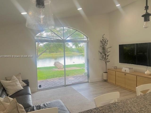 Stunning lakefront home for rent in the desirable SilverLakes community of Pembroke Pines! This updated 3-bedroom, 2-bath residence offers a bright open layout w/ wood-look tile floors, vaulted ceilings & recessed lighting. The modern kitchen features stainless steel appliances, granite counters, and cabinets, opening to the family room with serene lake views. The primary suite includes vaulted ceilings, a custom walk-in closet, and a spa bath with dual vanities and frameless glass shower. Two bedrooms share an updated bath with modern finishes. Step outside to your private backyard with patio seating under mature trees. Perfect for relaxing or entertaining by the water. Conveniently near A-rated schools, shopping, dining, parks & highways. Stylish, move-in ready, and designed for comfort!