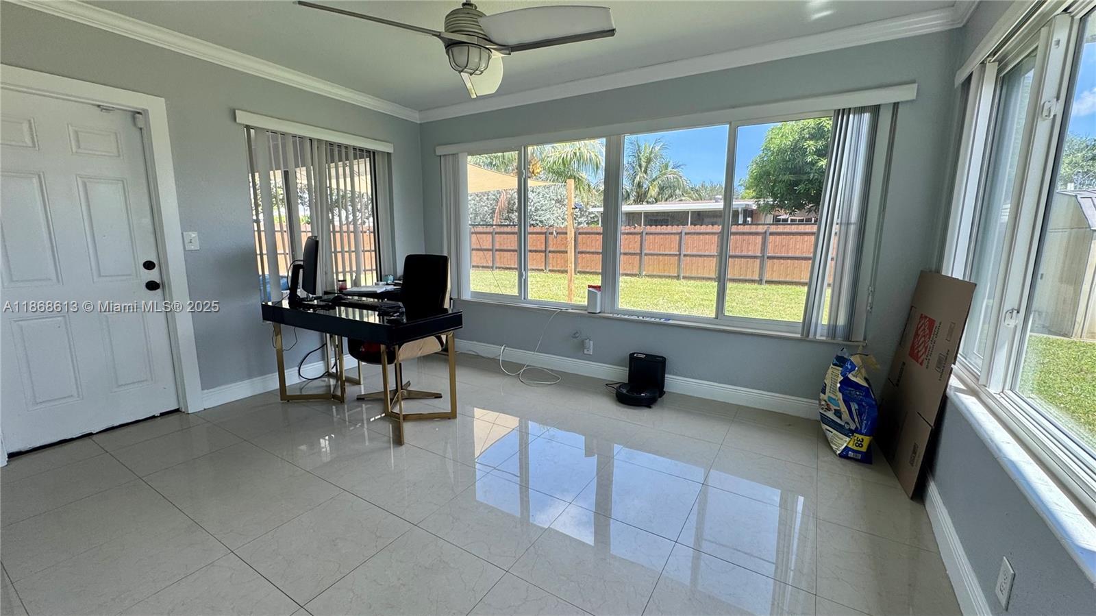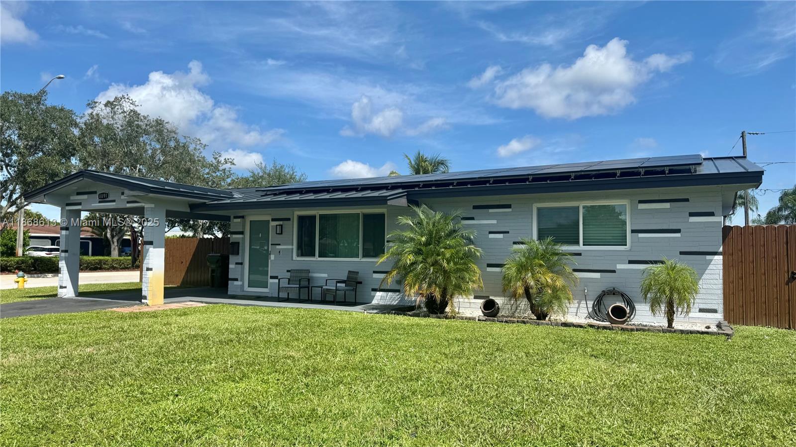QUICK APPROVAL!! MOVE IN READY This spacious residence offers 2 bedrooms, 1 bathroom, plus a large den that can easily serve as a family room, home office, or guest space. The open floor plan includes a convenient laundry room, impact windows and doors, metal roof, and fenced yard for added privacy. Enjoy major savings on utilities with solar panels keeping your electric bill low. Perfectly located just minutes from top shopping, dining, schools, and expressways. Rent includes lawn maintenance and pest control. Must obtain renters insurance.
