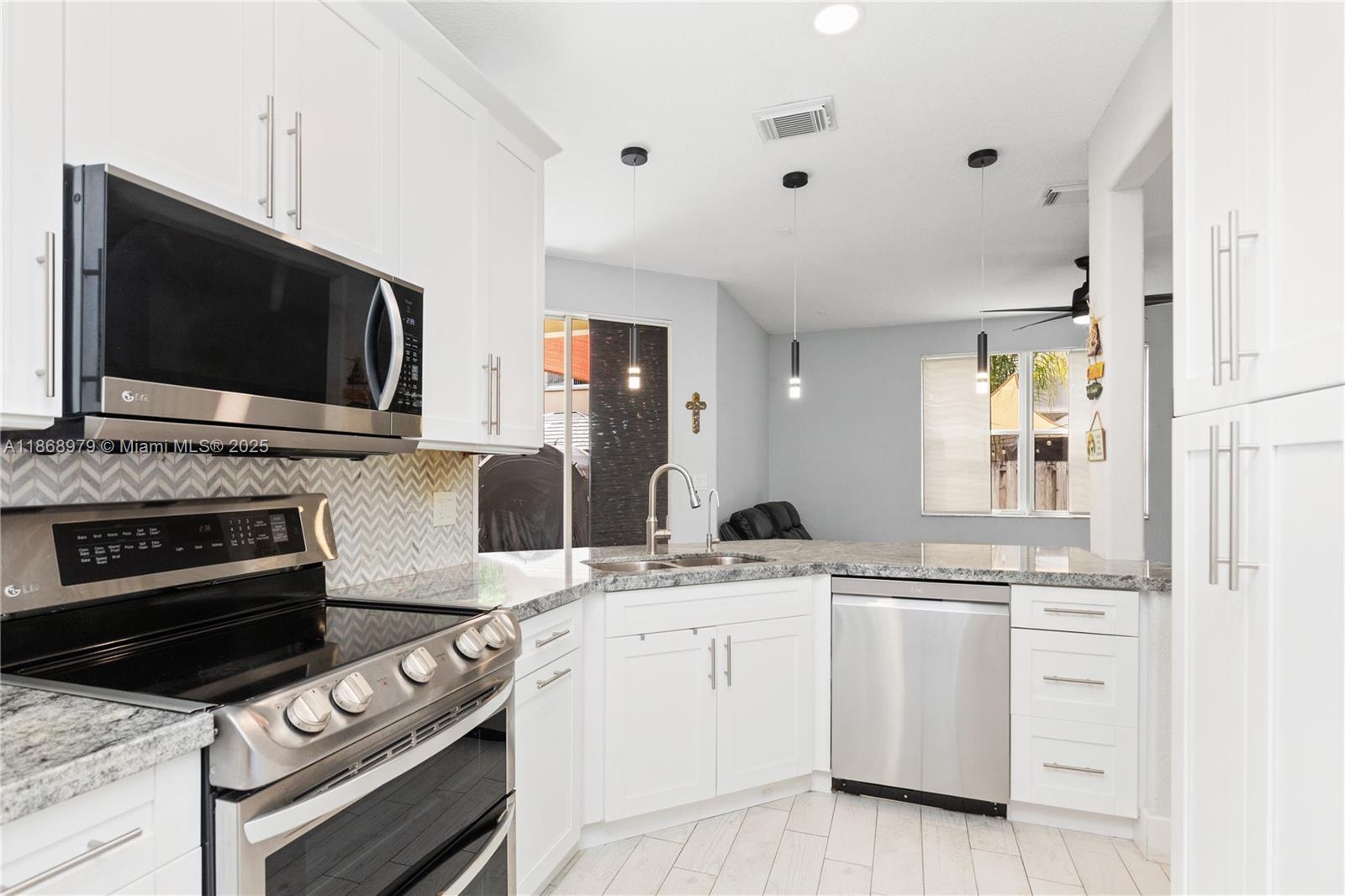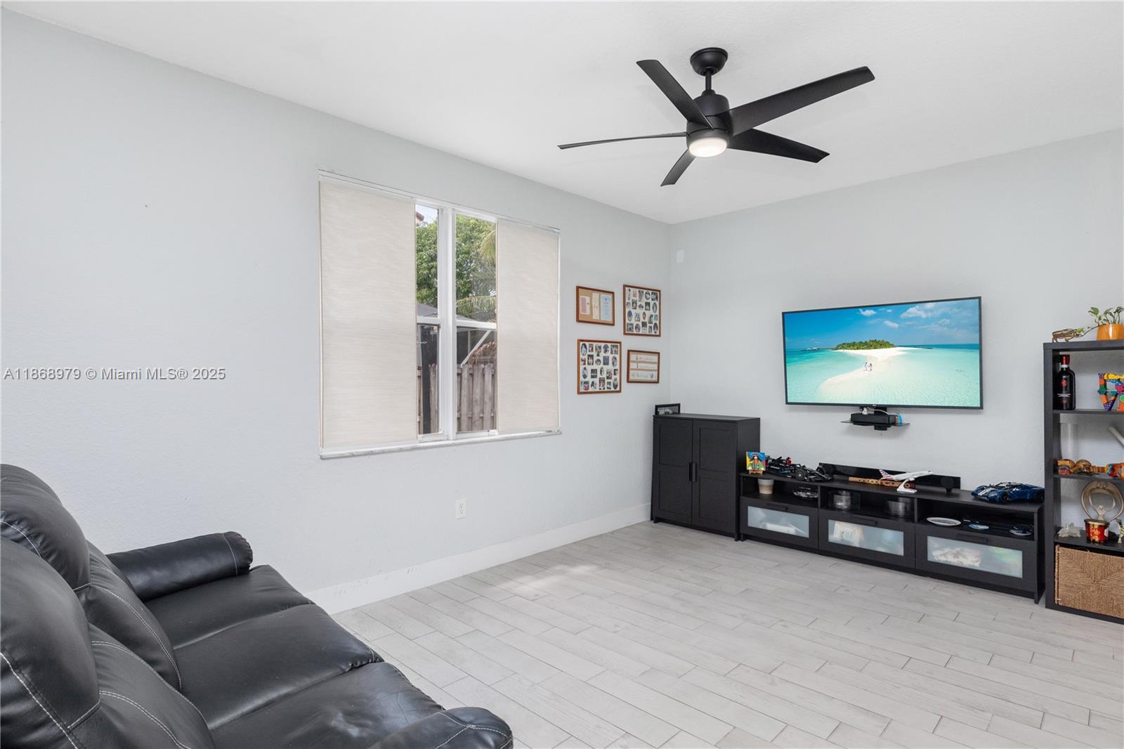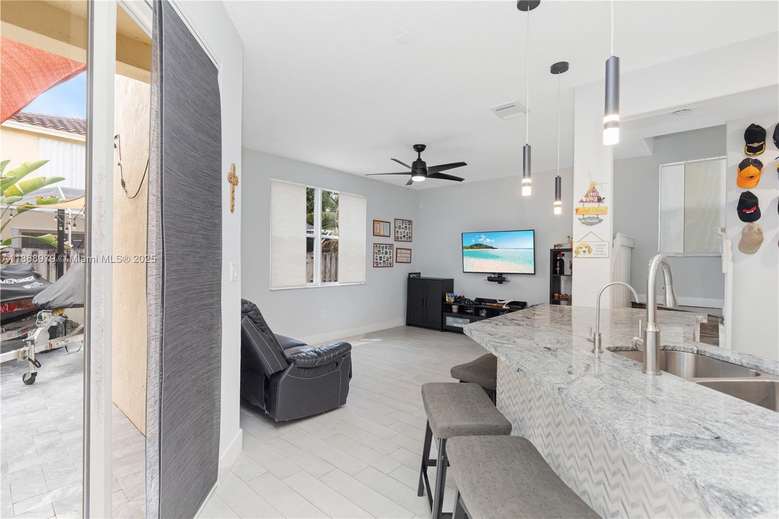 Rare opportunity! This is the largest home in square footage currently available for rent in Nautica, offering 4 bedrooms, 2.5 bathrooms and one of the largest backyards in the neighborhood. The spacious layout includes a large living room and dinning area, plus a modern open kitchen that flows into the family room - an ideal setup for both everyday living and entertaining. The house is ideal for families or those who need an additional guest room or office. The oversized backyard is perfect for entertaining, outdoor activities. Additional highlights include a one-car garage with extended driveway parking, accordion shutters. Residents enjoy Nautica's 24 hour security resort style pool, clubhouse, fitness center and much more. Cable included in rent. No HOA approval.