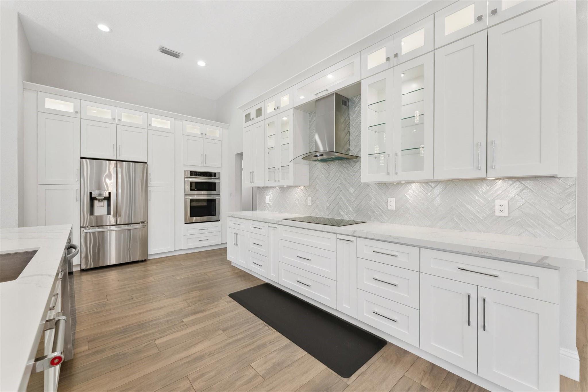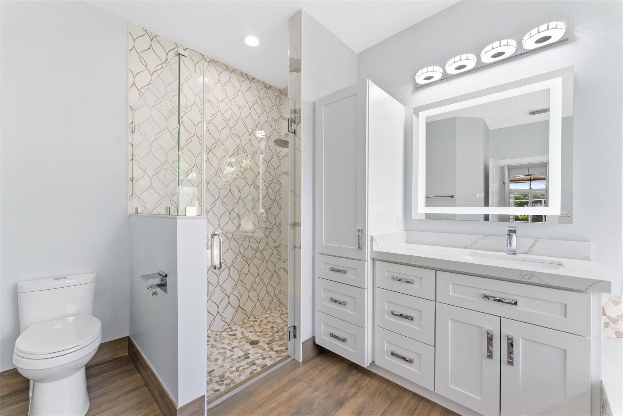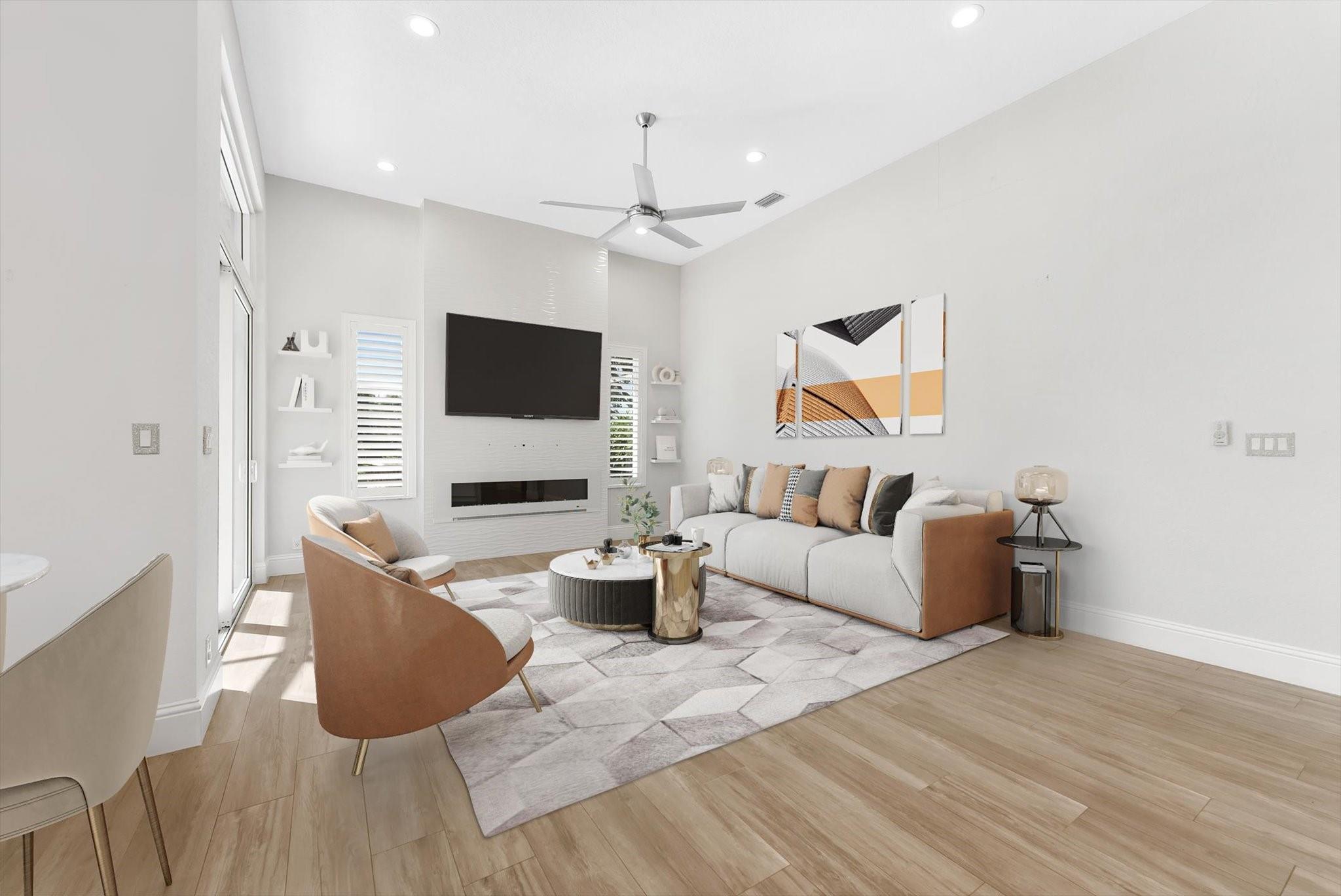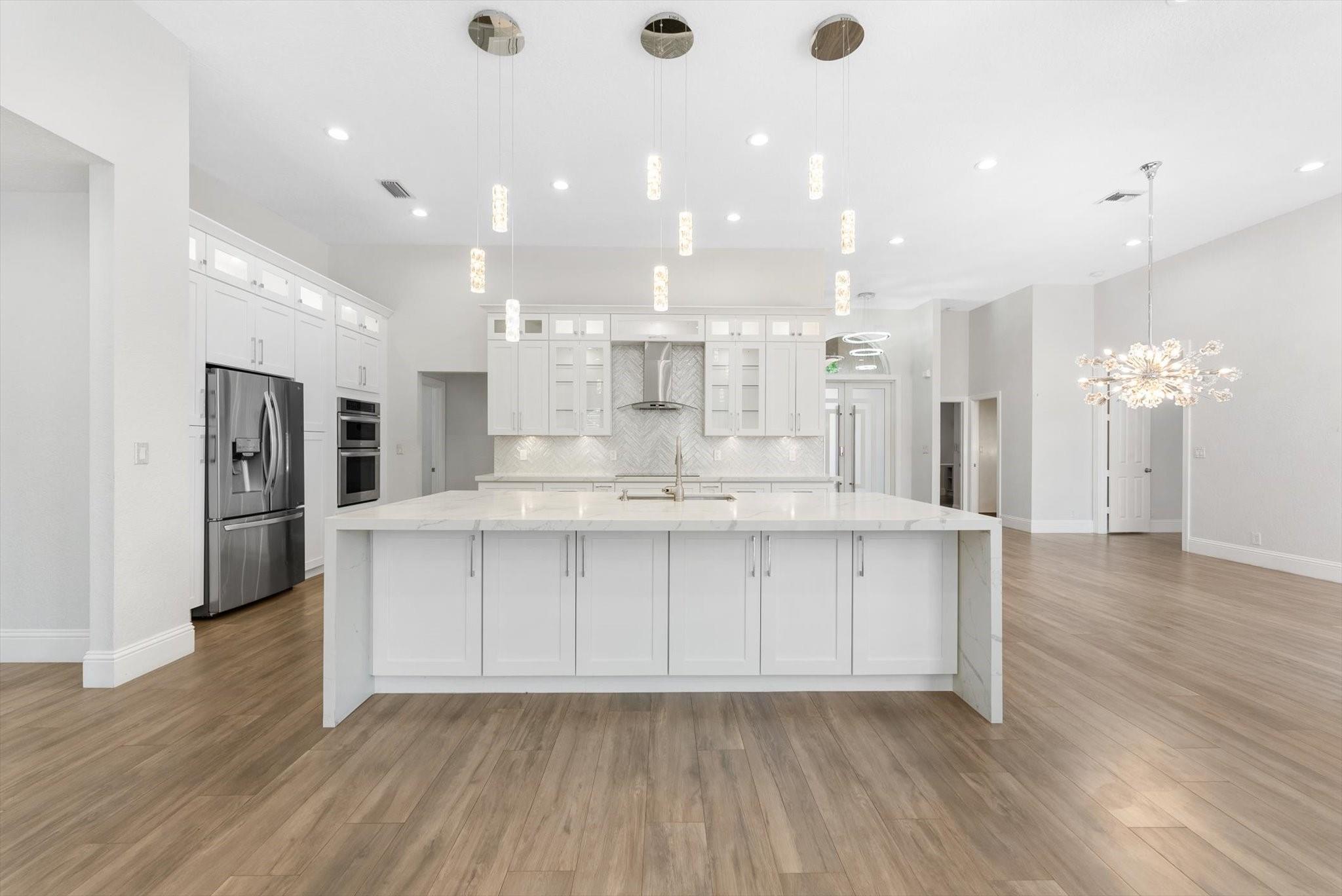 Completely reimagined & impeccably renovated with the finest materials. A sophisticated, contemporary oasis tailored for Florida’s seamless indoor/outdoor lifestyle. Walls of impact windows & doors flood the space with natural light & offer stunning views of the pool & lake. At the heart of the home, a show-stopping white kitchen takes center stage, featuring a dramatic waterfall island, quartz counters, top-of-the-line appliances & a striking glass tile backsplash. The Primary suite is impressive in size & boasts a spa like bathroom, several large closets with cabinetry & serene water views. Outside is an expansive screened porch with a heated saltwater pool with a spa & full service summer kitchen. Other offerings: Wood Like tile thruout, gorgeous lighting, Tesla charging station & more.