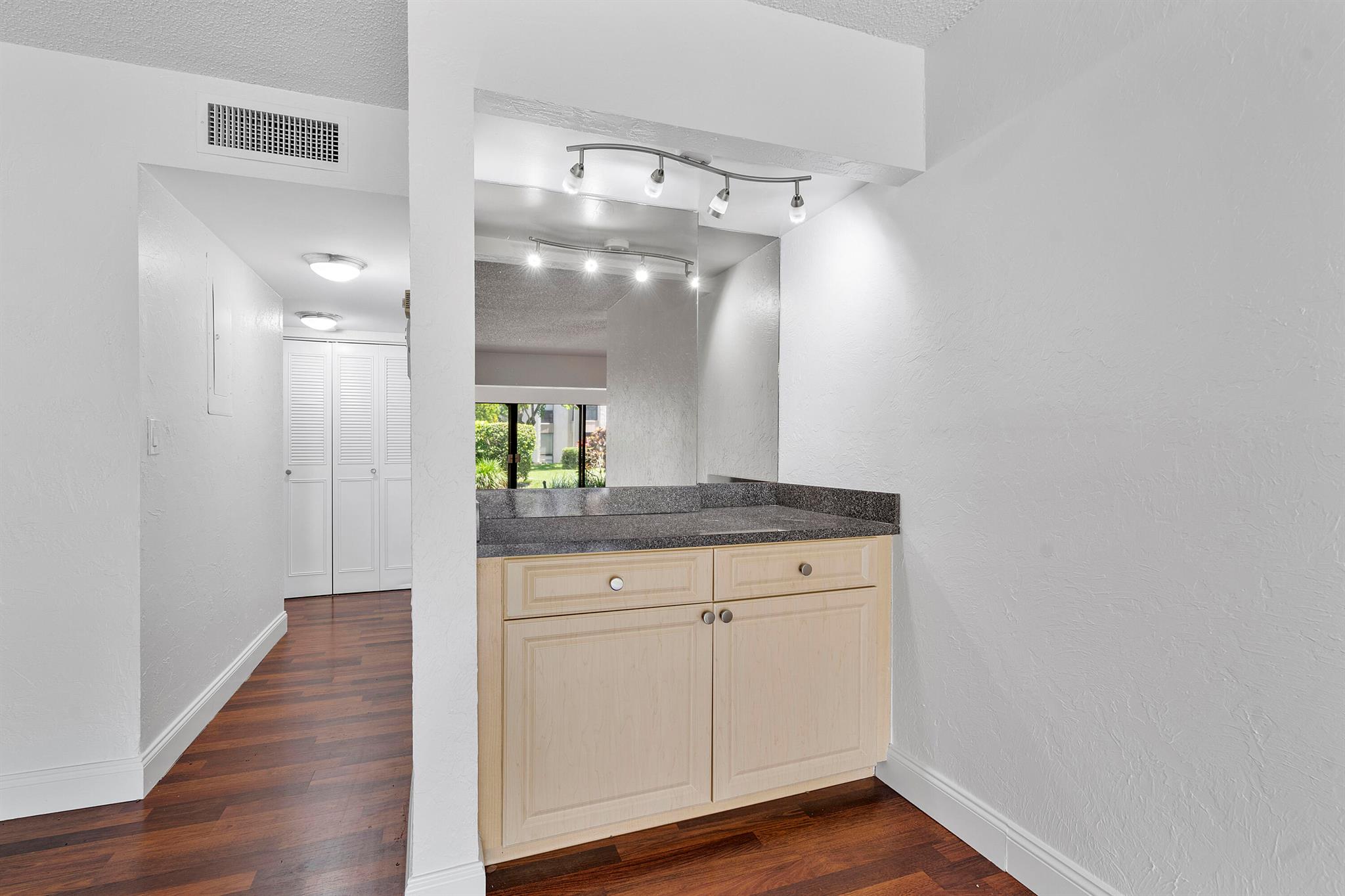 GREAT LOCATION! CORNER GROUND UNIT WITH GARDEN VIEW! Lovely spacious ground floor unit. Large 2 bedrooms & 2 bath, 1500 sqft of living space. Engineered wood floors in the living area and carpet in bedrooms. Eat in kitchen with stainless steel appliances and freshly painted. Bathrooms with custom tile and granite counters, wood cabinets. Master bedroom has 2 walk-in closets. Short walk to pool and clubhouse. Great central location, Boca Del Mar. Close to I-95, near Town Center Mall, parks and many restaurants. A 55+ Community (allows 16 yrs old+ residents).