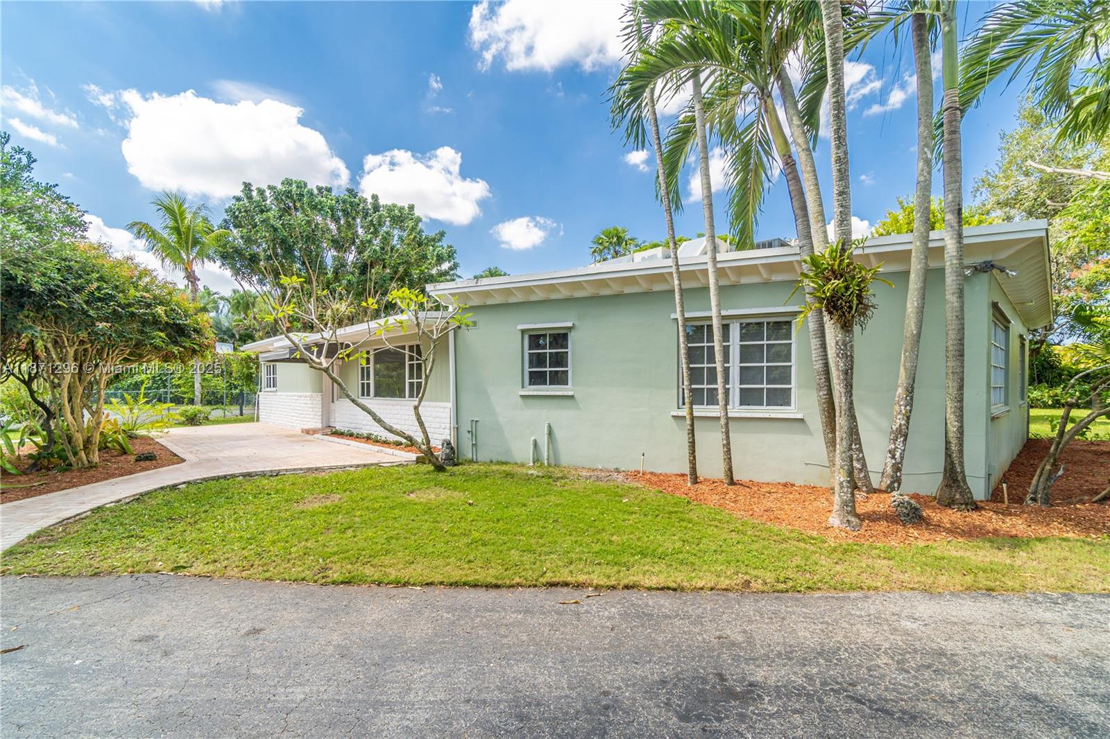 On a serene and private neighborhood block, you'll find this perfect retreat. Upon arriving through the gated entrance, you are transported to a tropical paradise as you are greeted with a tree-lined driveway of mature mango trees. A charming 4/2 home sits on this oversized acre property and boasts an up to date kitchen with all new appliances, newly renovated master and bathroom, beautifully appointed light fixtures and fireplace as the centerpiece of the home. The laundry room located next to the home is also newly renovated with all the laundry necessities. This 43, 560 sq. ft. property includes a full-sized tennis court and pool with jacuzzi. Located in the highly sought-after neighborhood of Glenvar Heights just off of Sunset Drive. Ready for move-in November 3, 2025.