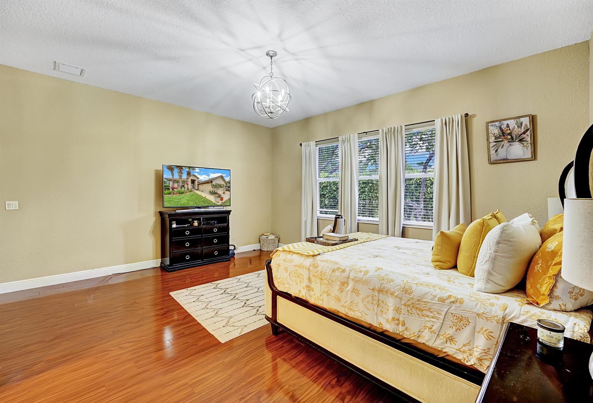 Welcome to West Palm Beach's premier 55+ community! This spacious 3-bedroom + Den home offers a split floor plan and a private location with a large screened patio to enjoy the peaceful surroundings. The huge kitchen boasts granite countertops, stainless steel appliances, and ample storage. Entertain with ease in the beautifully appointed living and formal dining rooms. The Master Suite features garden views, two walk-in closets, dual vanities, a large shower. All bedrooms have engineered wood floors. Accordion shutters. Enjoy fantastic amenities activities, including pickle ball courts,3 swimming pools, wave pool. Prime location near shopping, dining, equestrian events, PBI Airport, and beaches!