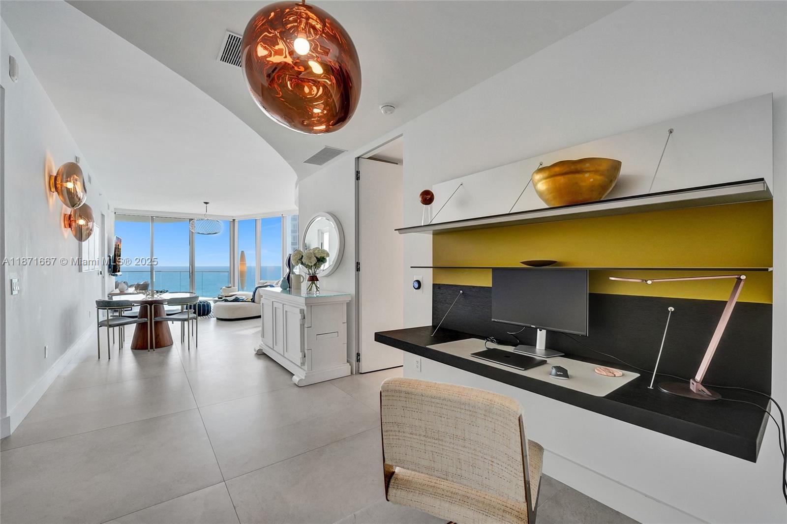 Step into Residences by Armani Casa by world-renowned architect Cesar Pelli and fashion designer Giorgio Armani. This elegantly designed furnished residence has everything you would need from the moment you arrive. Enjoy the stunning ocean views from the spacious balcony equipped with a summer kitchen. Thoughtfully designed spacious split 2 bedroom, 2 and a half bathrooms, and den. The residence features 10-foot-high ceilings with floor to-ceiling glass windows; 10-foot-deep balconies, luxe Armani Dada kitchen featuring Wolf appliances, and spa-like marble-clad Armani Roca bathrooms. Enjoy exclusive luxury resort-style amenities such as pool and beach service, spa, fitness center, private restaurant, cigar and wine lounge, movie theater, valet parking, and more.