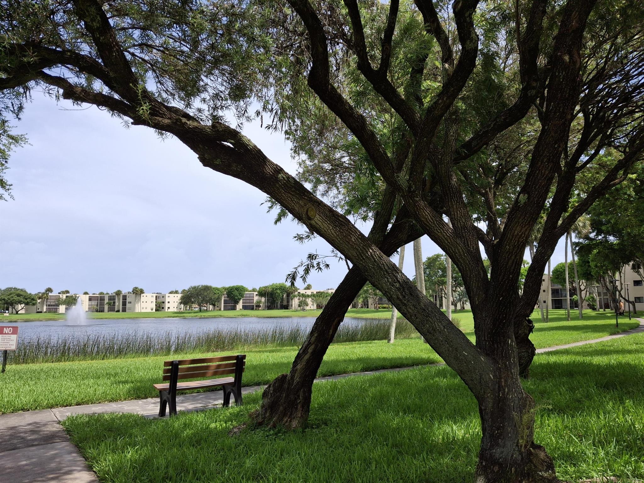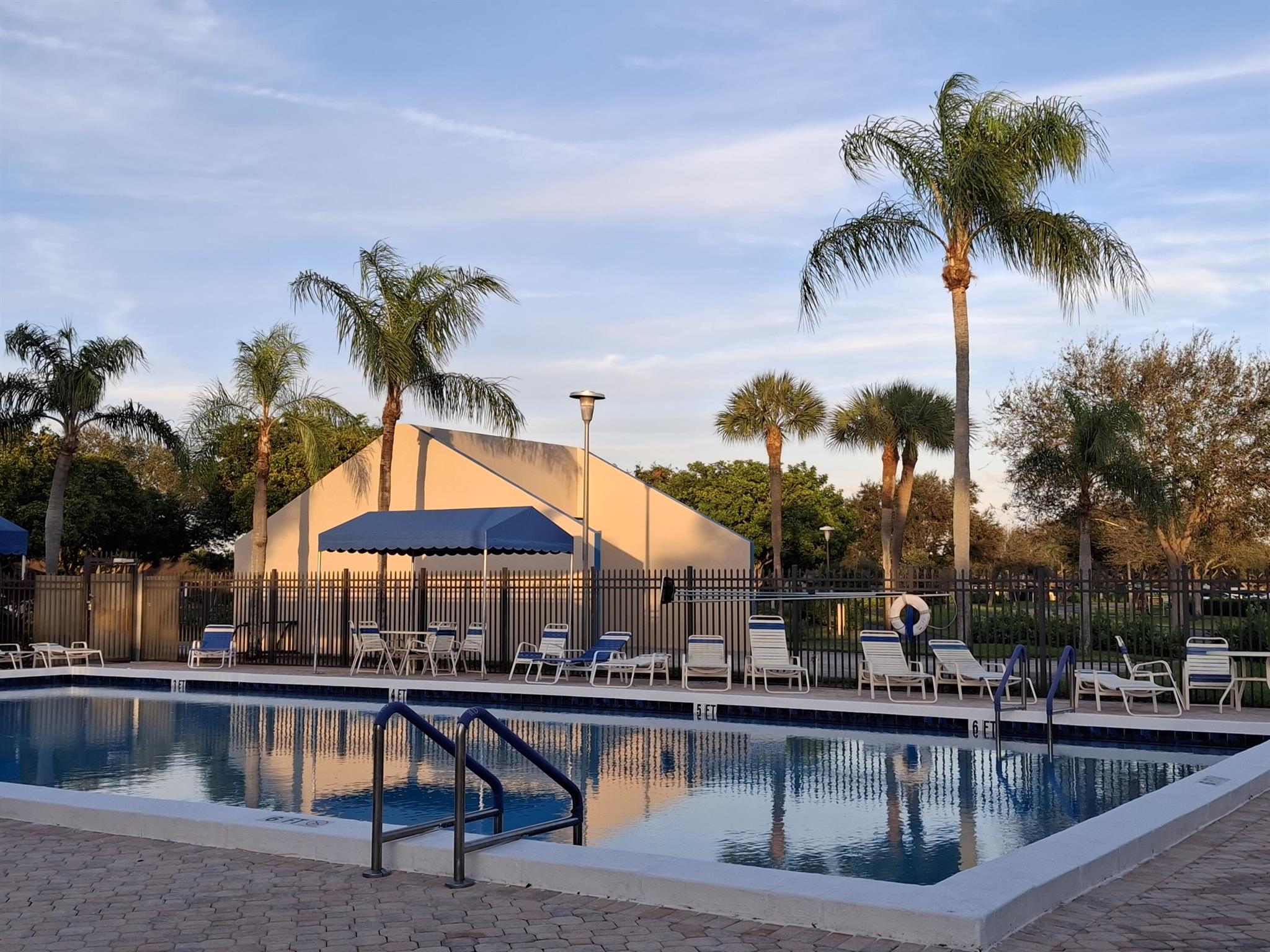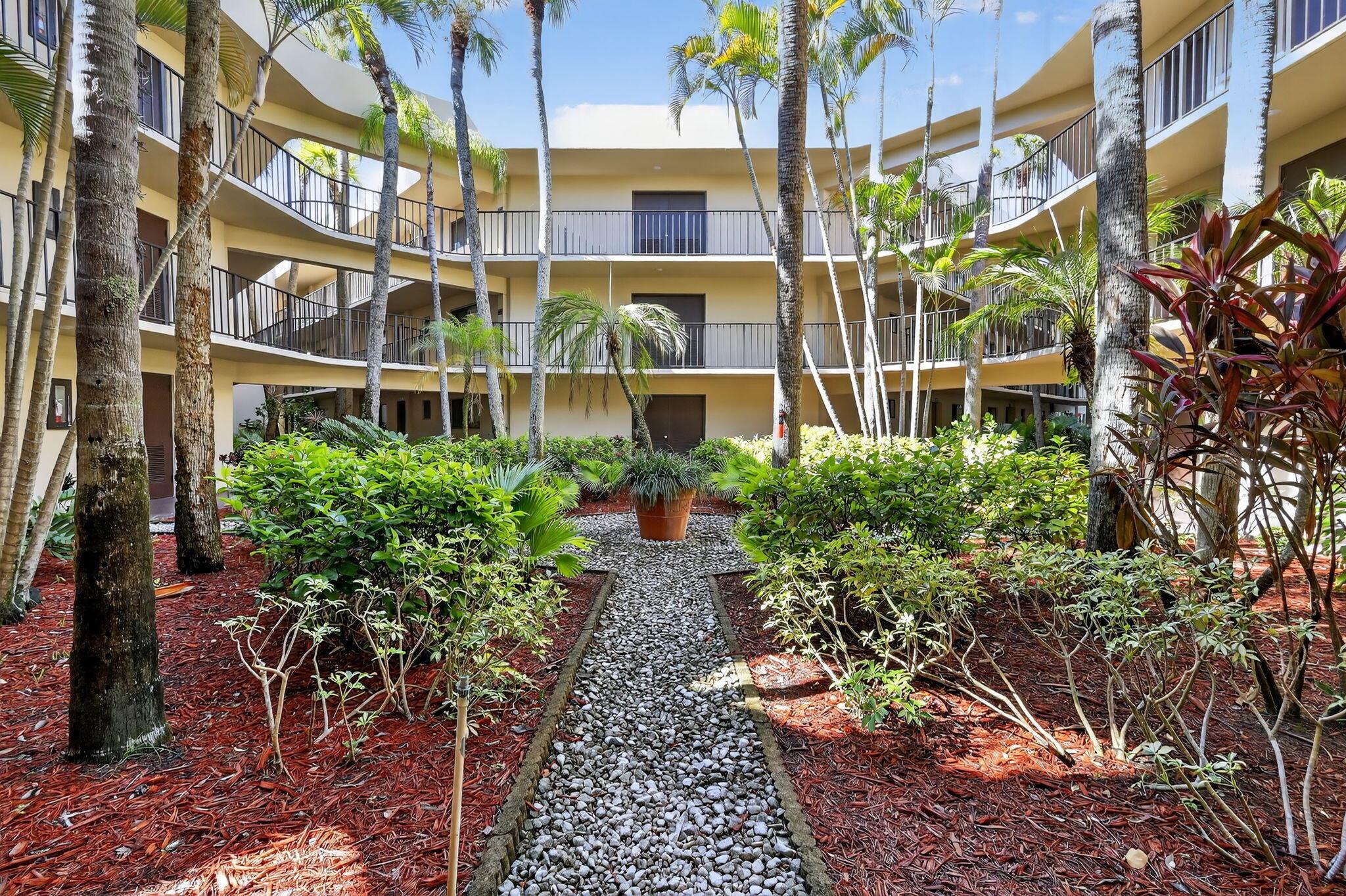 Active 55+ Building, PET FREE, Certified animals only. Fully furnished. Beautifully updated 1 bedroom, 1.5 bath condo offering serene garden views from a spacious screened balcony with Accordion Hurricane Shutters. This inviting unit features: new Whirlpool and Samsung stainless steel appliances, fresh paint throughout, new vinyl plank flooring in the kitchen, updated bathrooms with new toilets, walk-in closet with vanity area, A/C replaced in Aug. 2022. Storage closet on balcony & additional community storage just steps away. Laundry facilities are conveniently located right across from the unit. Enjoy peace of mind with 24-hour guard-gated entry and security patrol. Assigned parking space, ample guest parking and elevator for easy access.