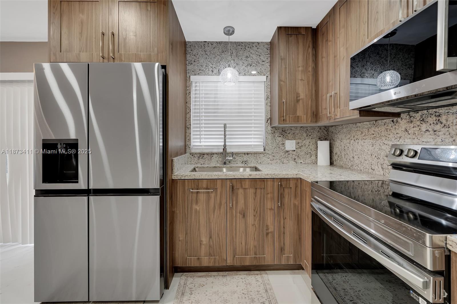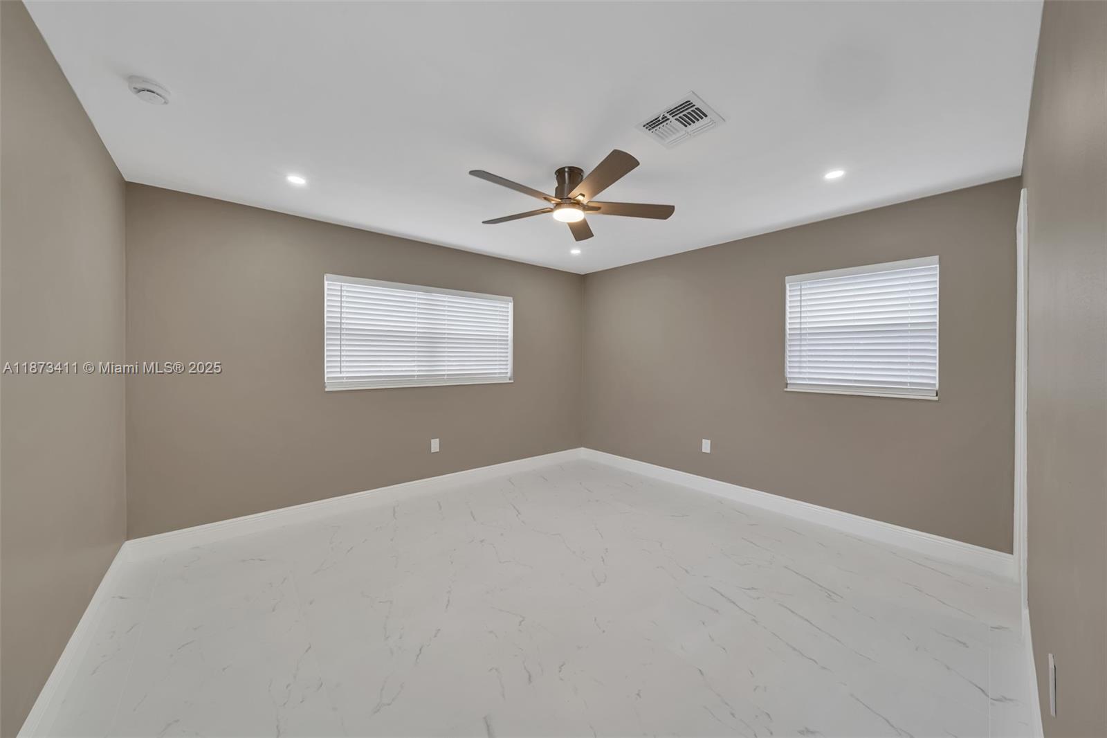Welcome Home! This stunningly remodeled & modern single-family home in the heart of Miramar offers 3 spacious bedrooms and 2 full bathrooms. Inside, you’ll find elegant new porcelain flooring, a new stylish kitchen with custom cabinetry, granite countertops, and top-of-the-line LG and Samsung stainless steel appliances. Recessed lighting and ceiling fans throughout enhance the bright, airy atmosphere, while the dedicated laundry room adds everyday convenience. Step outside to enjoy a fully fenced backyard, perfect for relaxing or entertaining. The oversized, newly poured concrete driveway provides ample parking—ideal for families with multiple vehicles. Move-in ready and designed for both comfort and style, this home has it all!