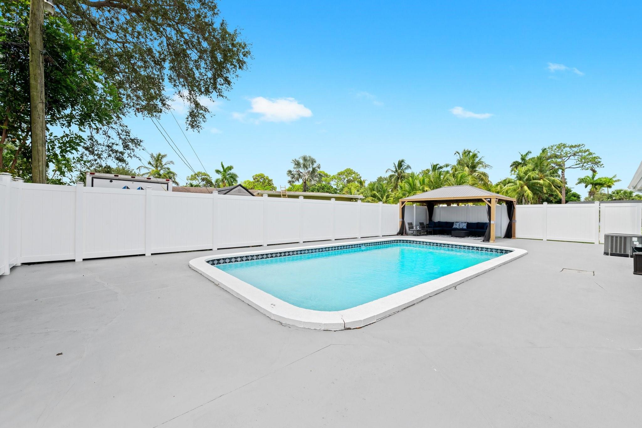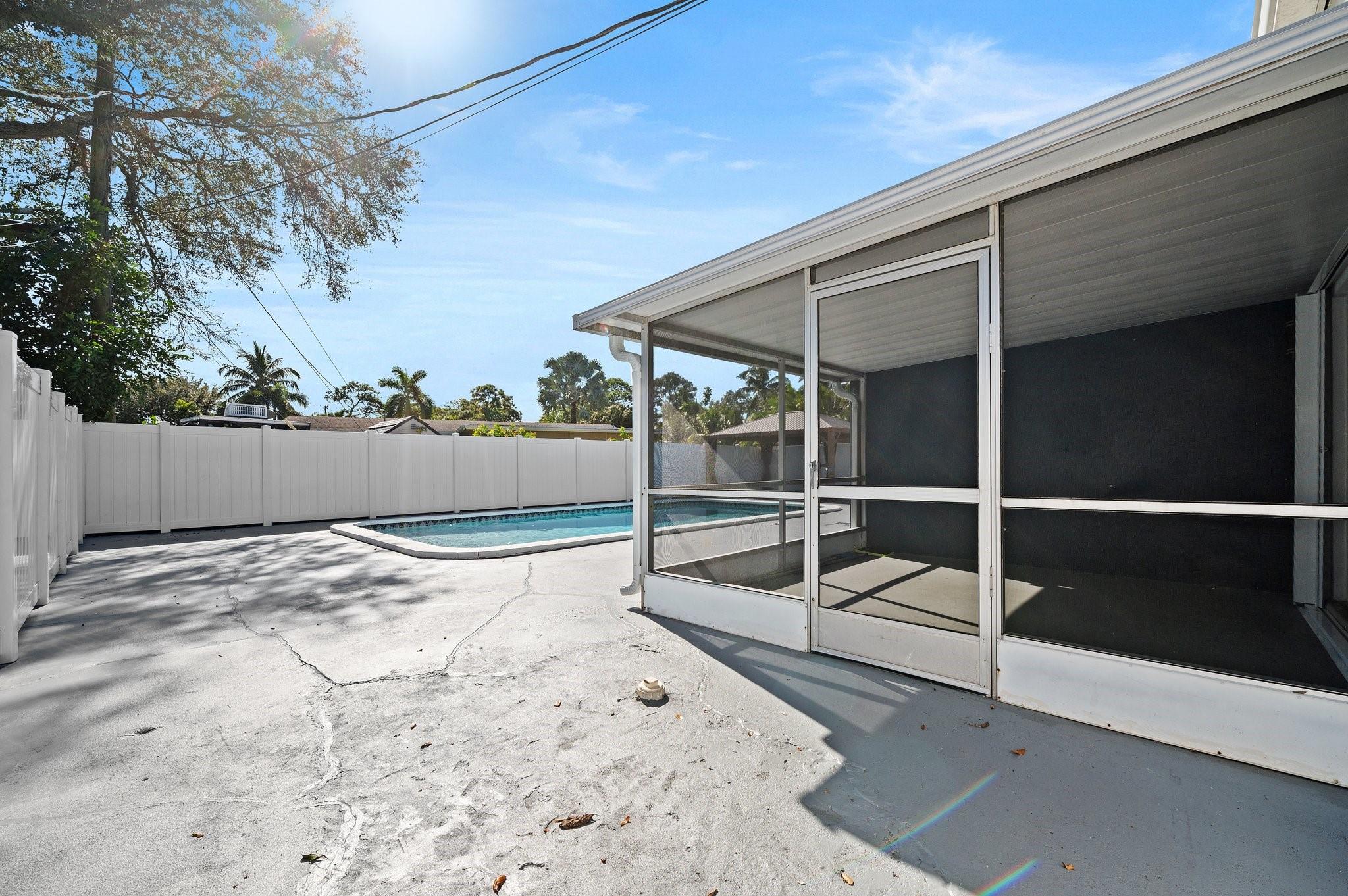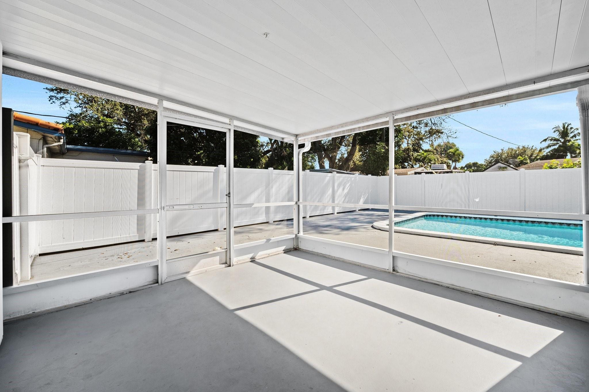 Welcome to your dream home! This beautifully maintained mid-century modern gem blends timeless style with today’s conveniences. Fully move-in-ready, it features a lifetime roof with transferable warranty, new A/C and ductwork, impact windows with hurricane shutters, new pool pump, water heater, ceiling fans, window treatments, and toilets in both bathrooms. The renovated carport adds charm and function. The primary suite opens directly to a private backyard oasis with an inviting in-ground pool, perfect for relaxing or entertaining under the Florida sun.