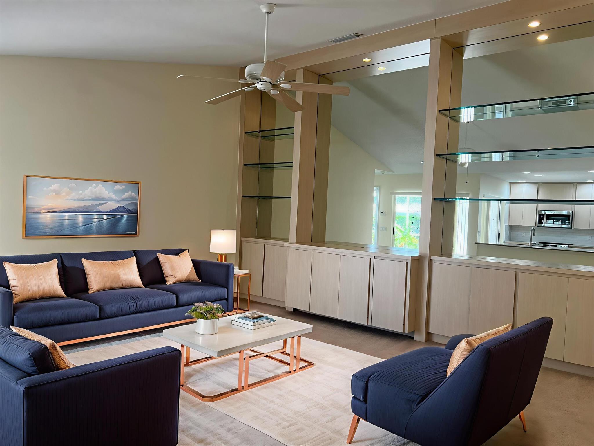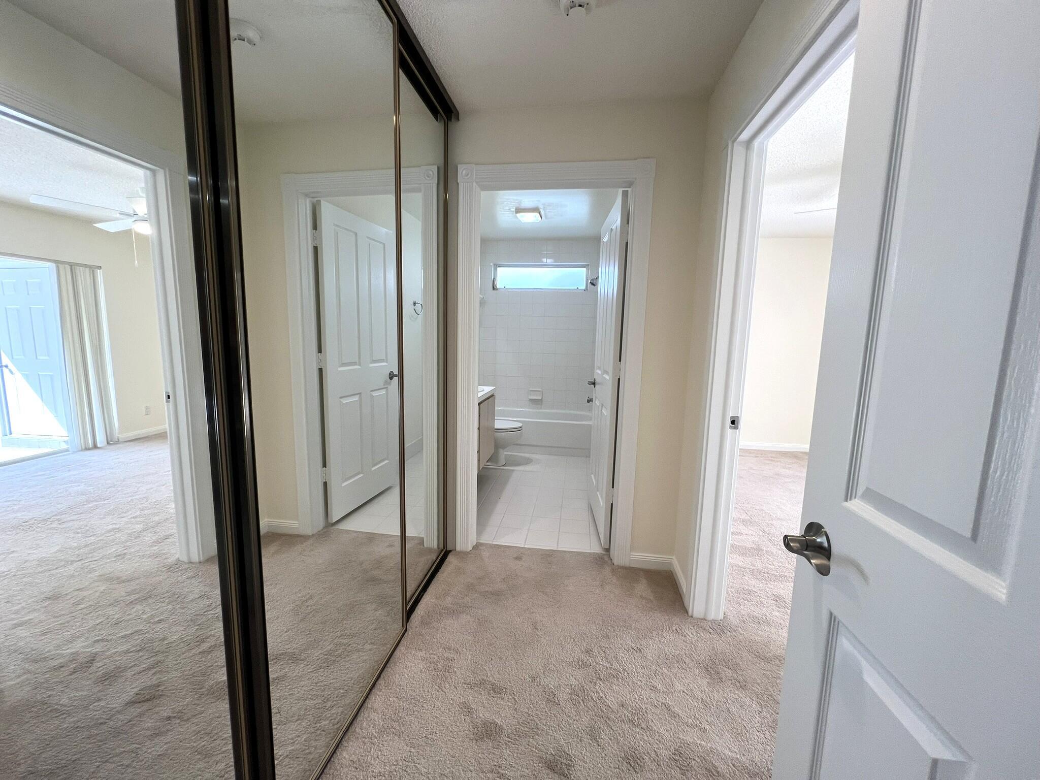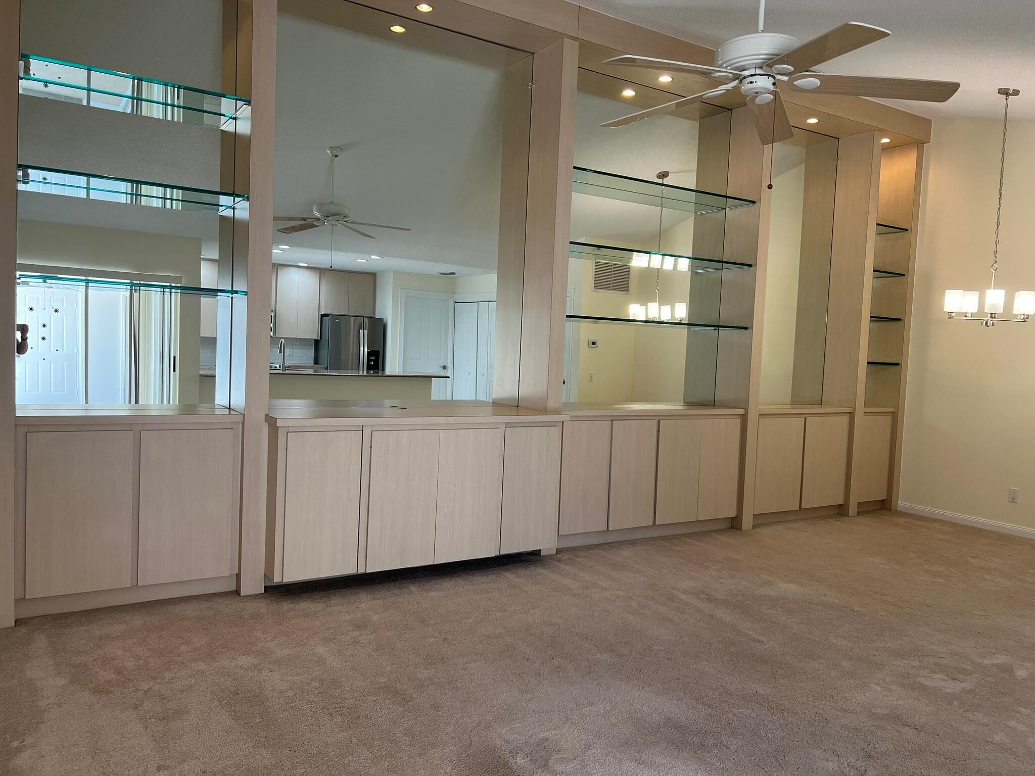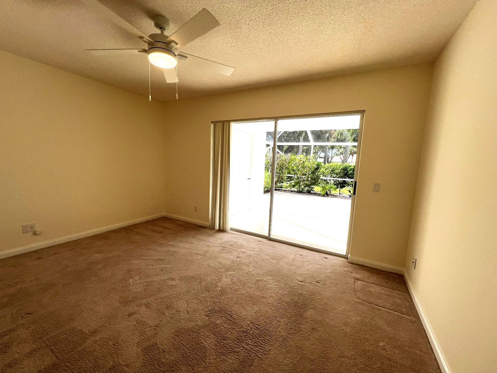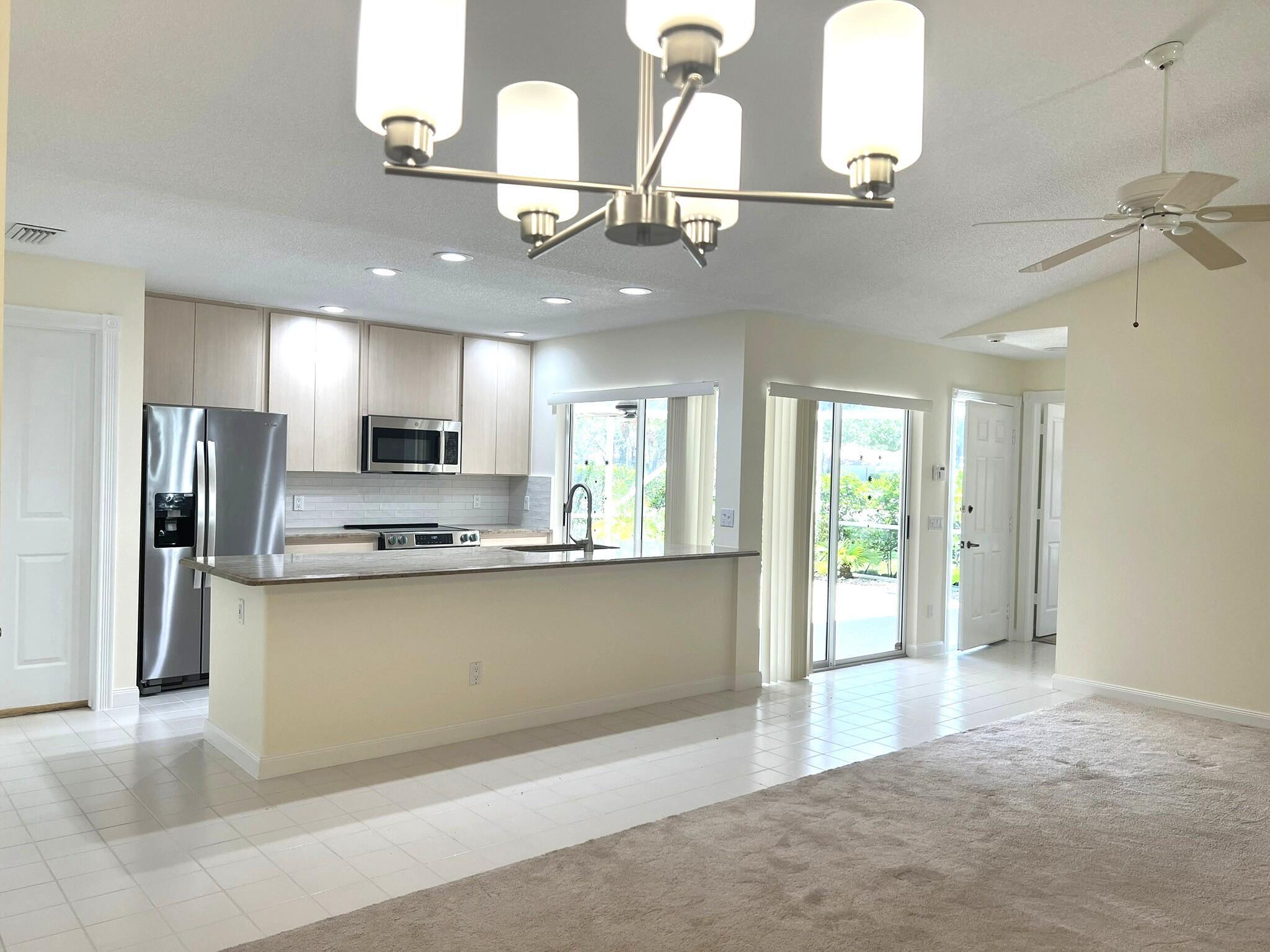 Pristine newly painted & well maintained single level 2 bedroom, 2 bathroom townhome offers open living/dining areas, soaring ceilings, custom shelving, mirrors, & elegant finishes throughout. The recently updated kitchen is a chef's delight, featuring BRAND NEW appliances, marble countertops, and abundant storage space. Both spacious bedrooms offer easy access and include their own full bathrooms, providing comfort and privacy. Step outside onto the oversized screened-in patio ideal for relaxing or entertaining. Enjoy access to the community pool, scenic tree-lined g paths, & tranquil lakes. Sunterrace is located just minutes from the upscale Gardens Mall, fine dining, pristine beaches, & major highways. This home is the perfect blend of serenity and convenience. See for yourself
