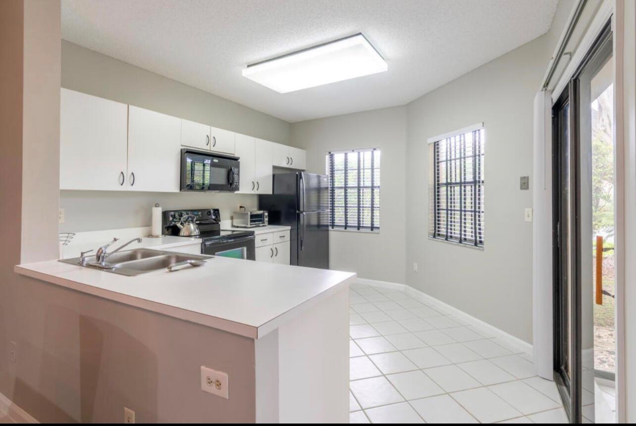 FURNISHED RENTAL! This first floor 2 bedroom 2 bath condo offers a spacious living room dining room combination with an open kitchen to a sliding glass door to your enclosed large balcony. Master bedroom has a large walk in closet, sliding glass doors to the balcony and an en suite bathroom. Washer and dryer is located inside the condo and there is a storage room outside by the front door. Located close to Montego pool. The condo is furnished and turn-key. A Rated schools!