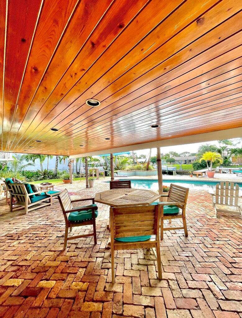 Stunning waterfront home is Florida paradise living at its finest! Fully furnished, charming home has 3 bedrooms upstairs with a large patio off the primary bedroom, 2 & half bathrooms, 2 car garage, brand new flooring, fresh paint, and lovely modern furniture throughout. 4th bonus room could be an office or den. Great home for entertaining with an open floorplan and direct access from the kitchen and living area to the backyard tropical oasis! Offering a sparkling pool, BBQ, covered patio boasting teak outdoor furniture, lush landscaping with outdoor accent lighting, 80 feet of water frontage with a private dock and 10,000 lb. boat lift. A boater's dream home! Just minutes to Peanut Island, some of the best restaurants in our area, shopping, local attractions and moreincluding Rose