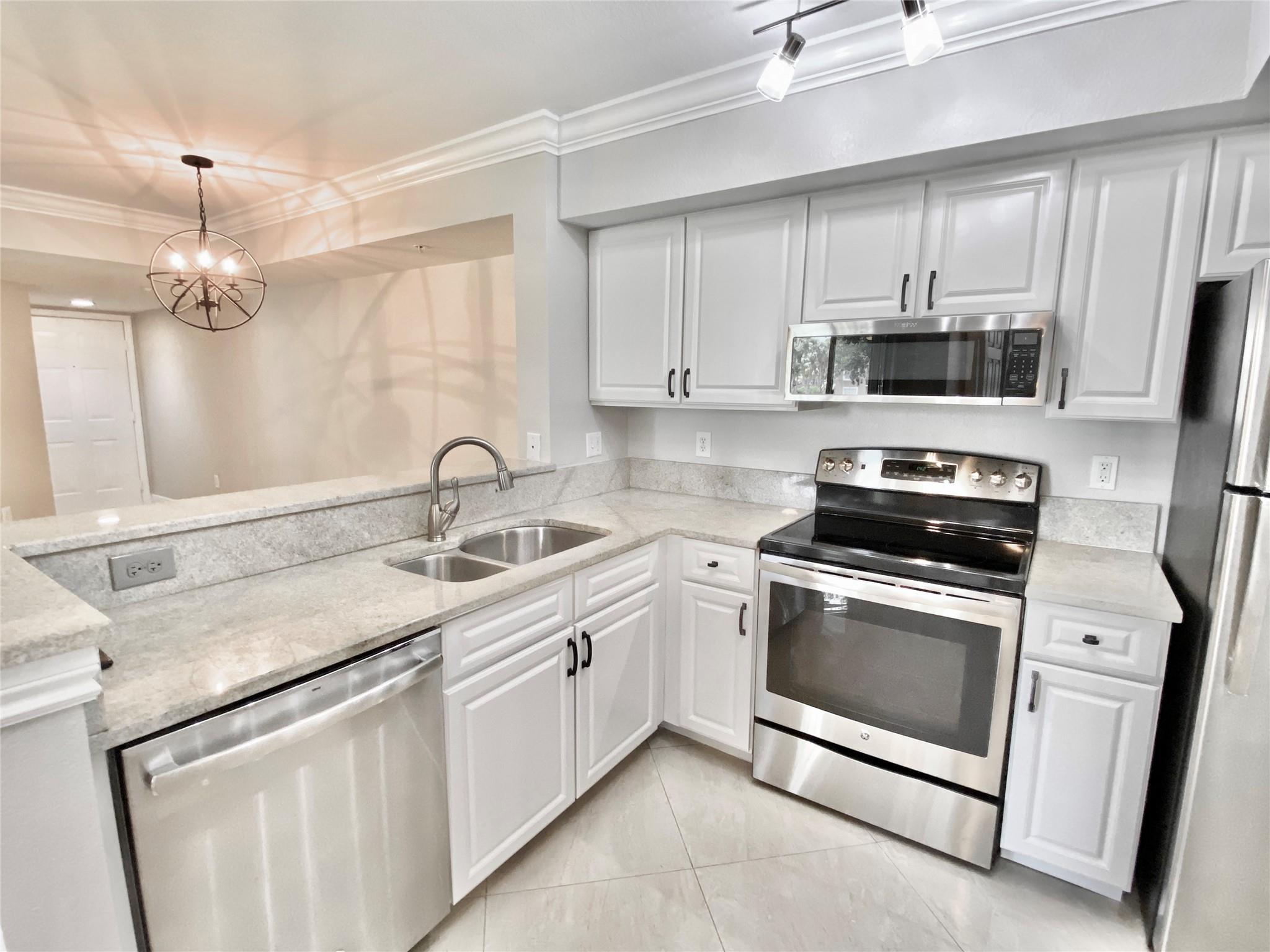 Beautifully updated 2-bed, 2-bath split floor plan for privacy including a private garage “4D”. Hyper clean ready to move in, bright open living, kitchen & dining spaces showcase serene lake views from every room. Enjoy peaceful evenings on the patio with the sound of fountains. Features include granite countertops, GE stainless appliances, Carrera marble baths, oversized walk-in closets, crown molding, and elegant 18x18 tile. Full laundry room with washer/dryer, plus a 2-car driveway and garage with storage. Murano’s gated community offers a resort pool, fitness center, tennis & indoor racquetball, all just 2 miles from booming Delray Marketplace with shopping, restaurants, movie theaters & bowling!, 5 miles from world renowned Atlantic Ave nightlife & close easy access to I95 & Turnpike.