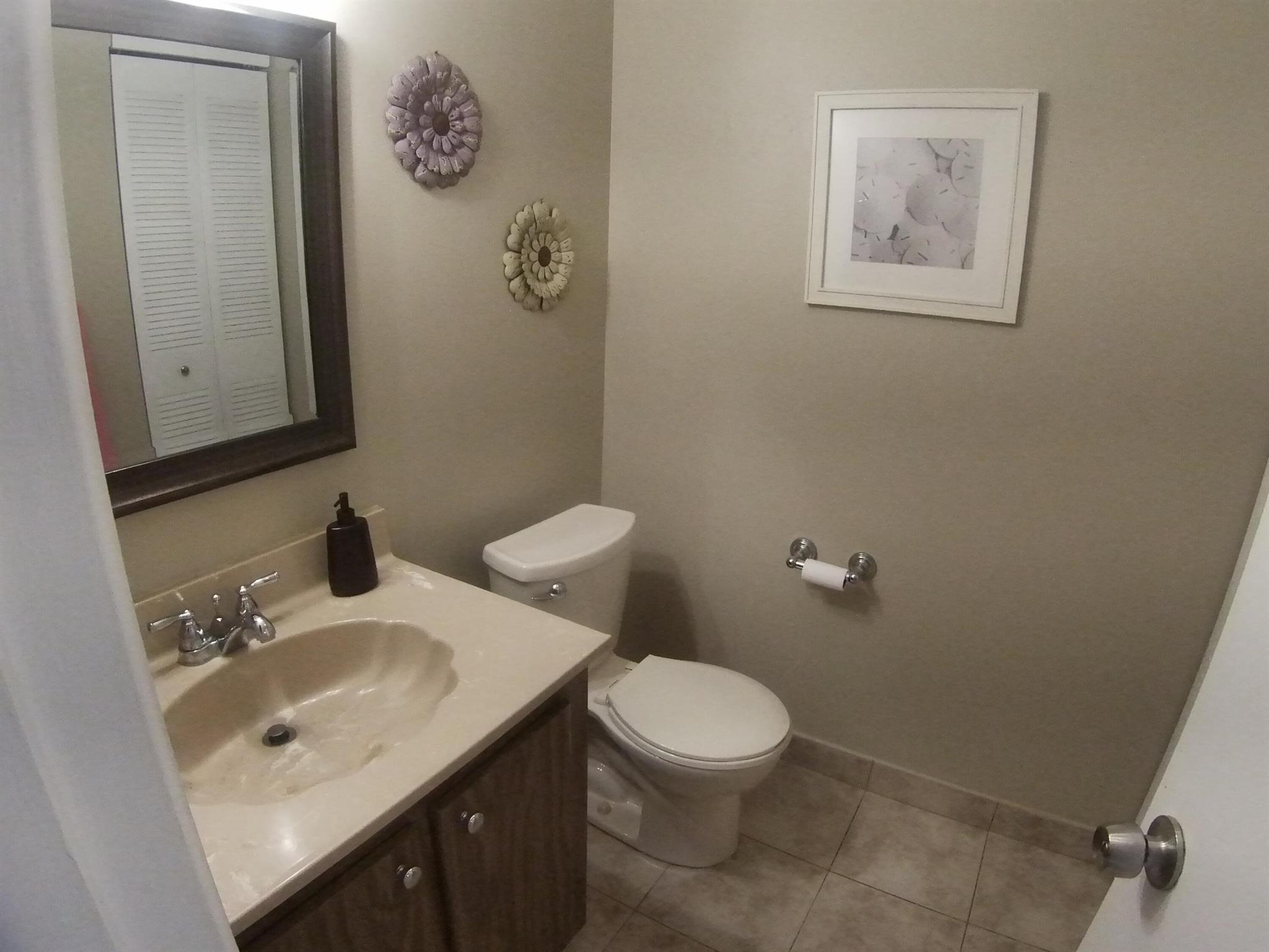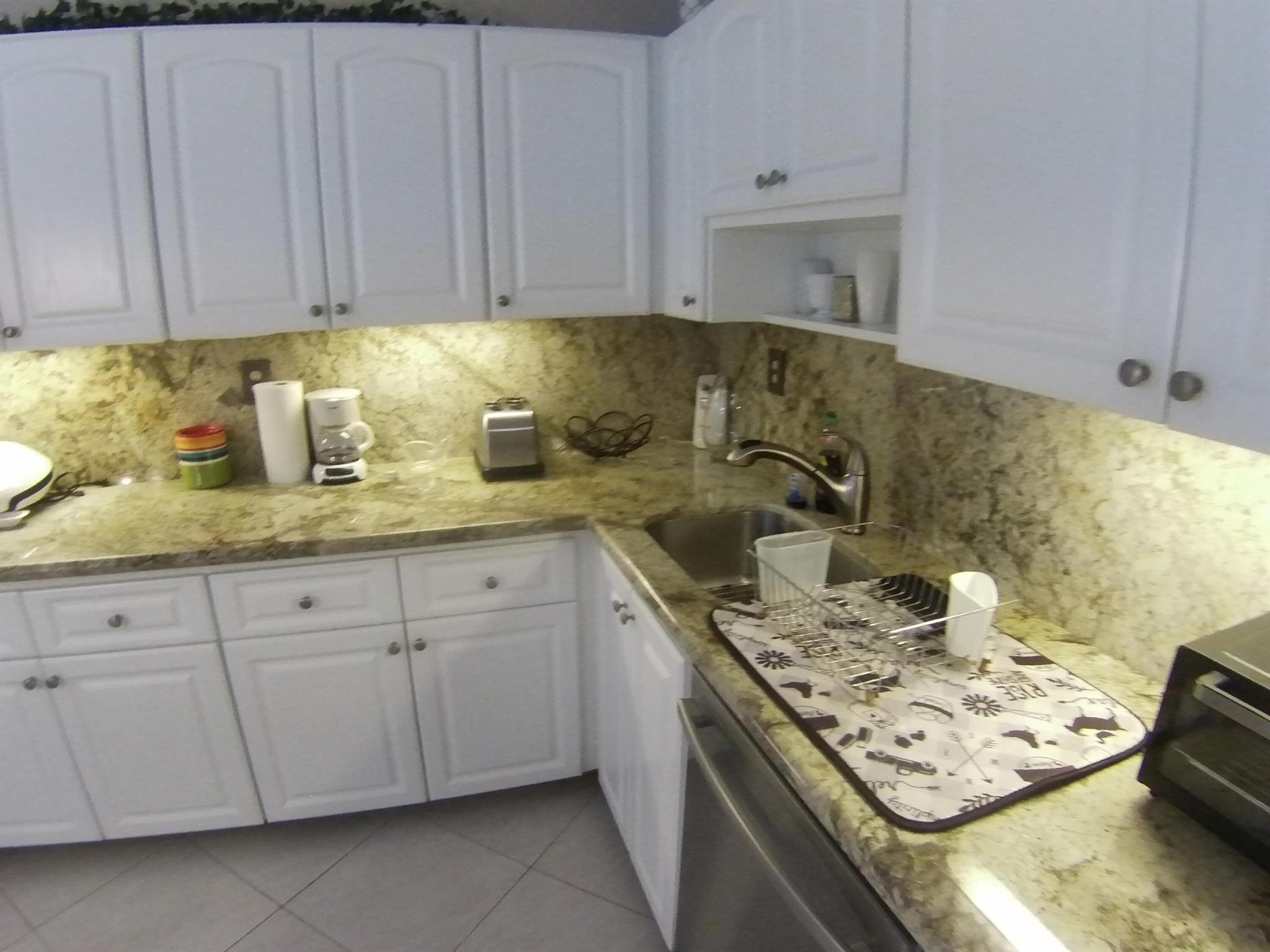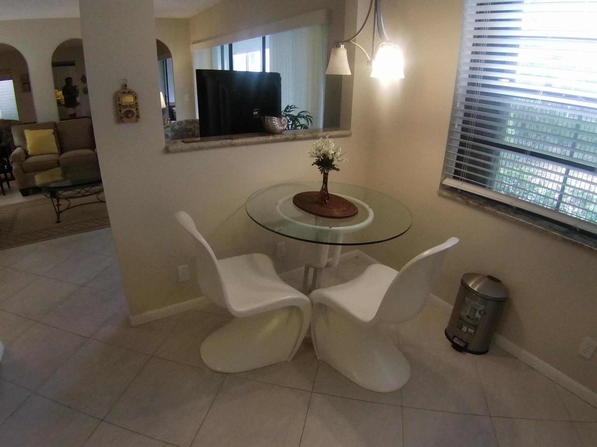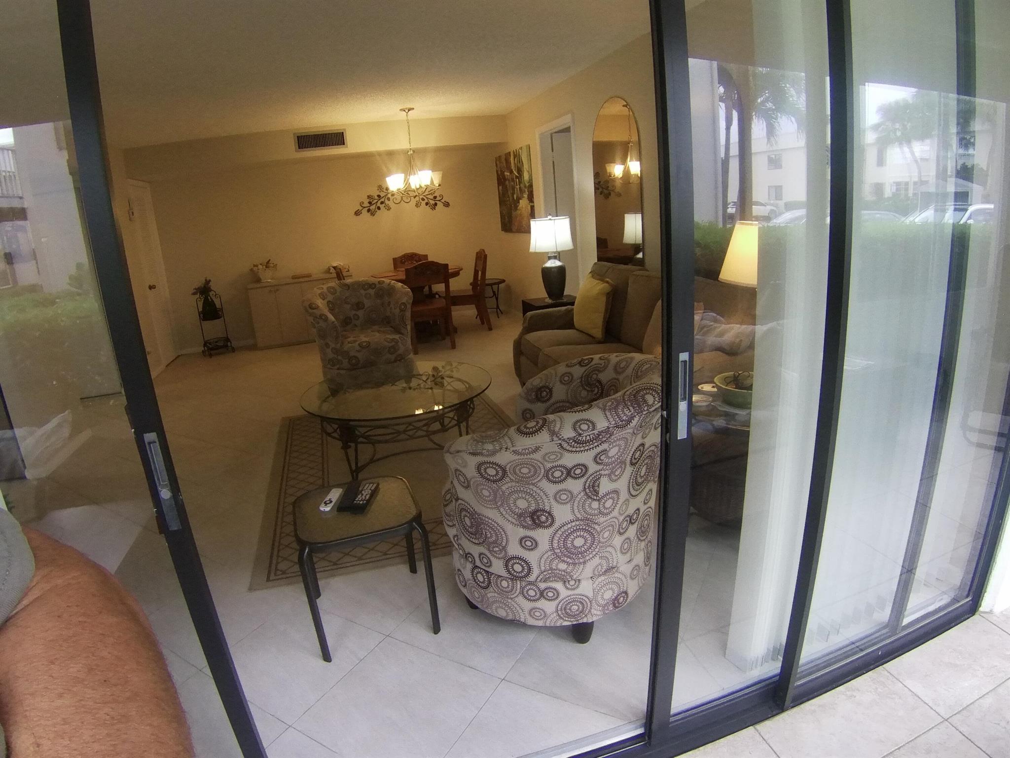 55+ community. SEASONAL RENTAL - First floor, unit furnished, one-bedroom condo. Tile throughout. Updated kitchen cabinets. 1.5 bathrooms. Enclosed patio with washer and dryer. Located 6 miles from the beach and the historic district of Delray Beach. The public library and Delray Market Place are within 2.5 miles of Kings Point. The community has multi-million dollar clubhouses. It also has entertainment, parties, bus service, golf courses, pickleball, tennis, outdoor pools and so much more!