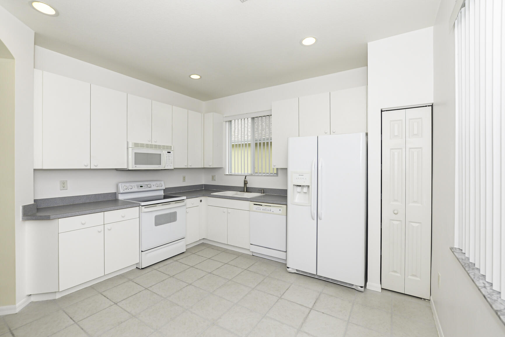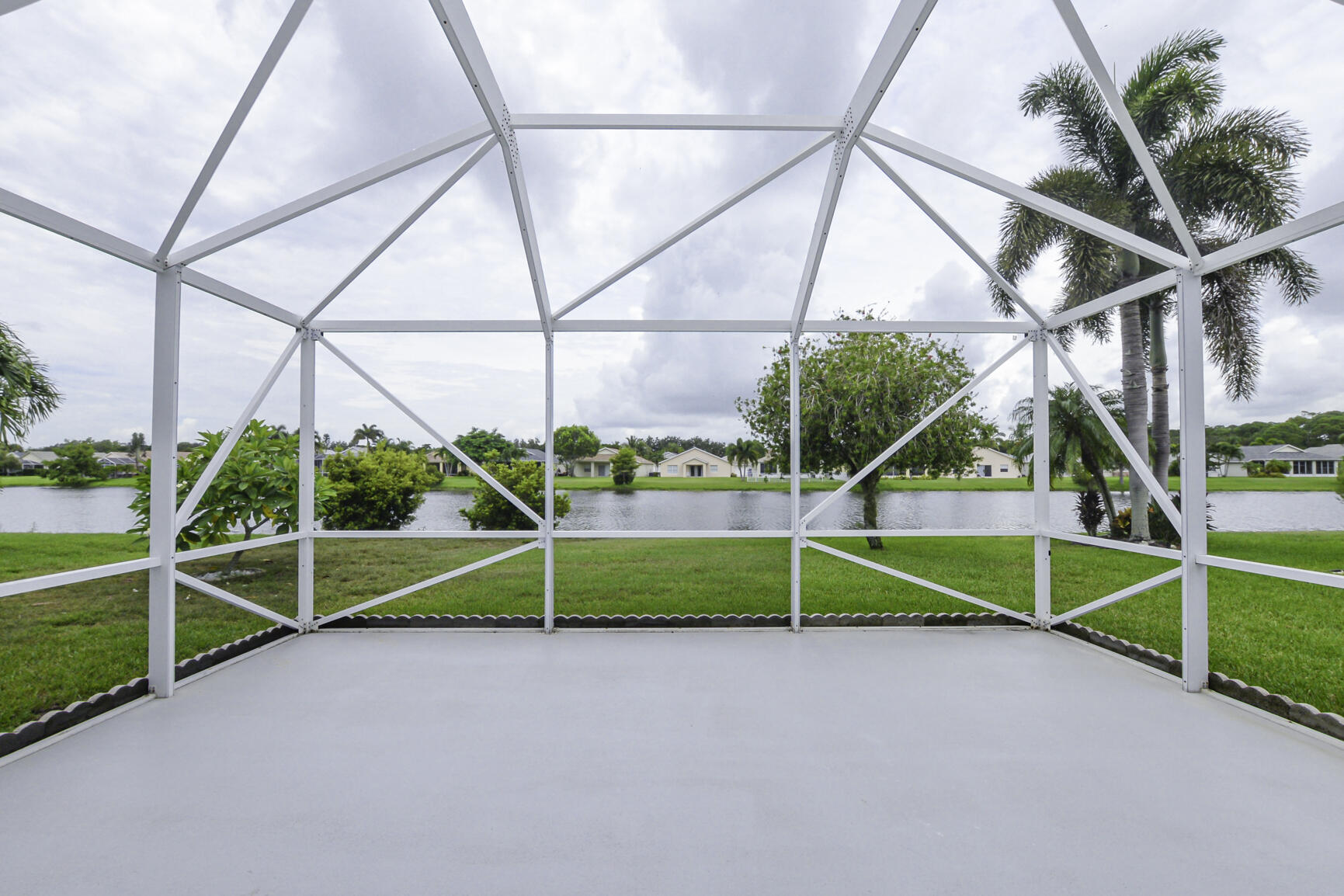 Gorgeous 2 bedroom + Den (can be used as 3rd Bedroom) 2 bath, 2 car garage home is ready to move in to today! The covered entry leads to foyer welcomes you into the split floor plan with large family room. As you enter the home, to the left is the guest bedroom and works as a private suite with adjacent 2nd full bathroom. Master bedroom boasts large soaking tub, separate shower and dual vanities. Tile and laminate flooring throughout the home. The eat in kitchen is light and bright with a window and sliding glass doors leading to the patio. From the family room and kitchen with an eat in kitchen you will be with stunned with long lake views. Plenty of space for a formal dining room. Enjoy breathtaking sunsets from the screened in back patio. Come see your new home today!