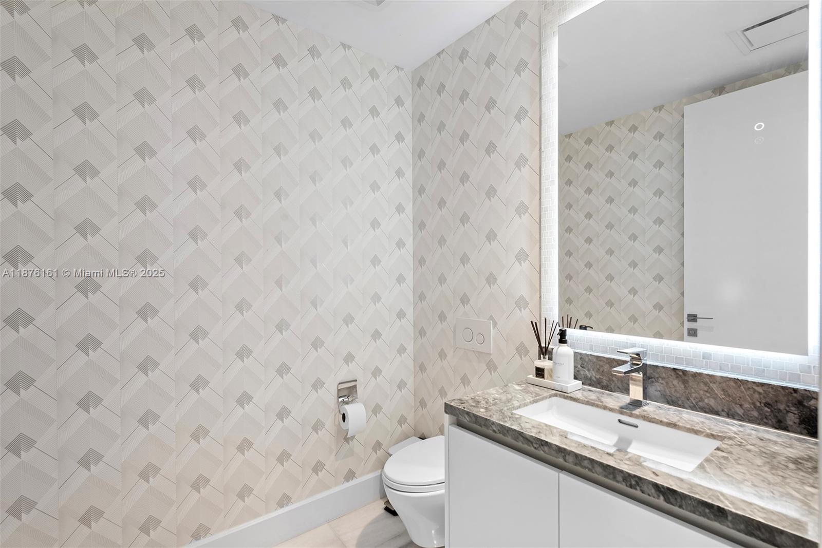 Stunning corner residence at Missoni Baia, fully redesigned with no expense spared. Features include custom countertops, designer wallpaper, drop-down ceiling with ambient LED lighting in living & primary, backlit mirrors throughout, designer furnishings, and electric window treatments. Enjoy sweeping Biscayne Bay & Miami Beach views. Amenities: sunrise & sunset pools, tennis club, kids’ playroom, spa with sauna/steam, hot tub, fitness center & more.