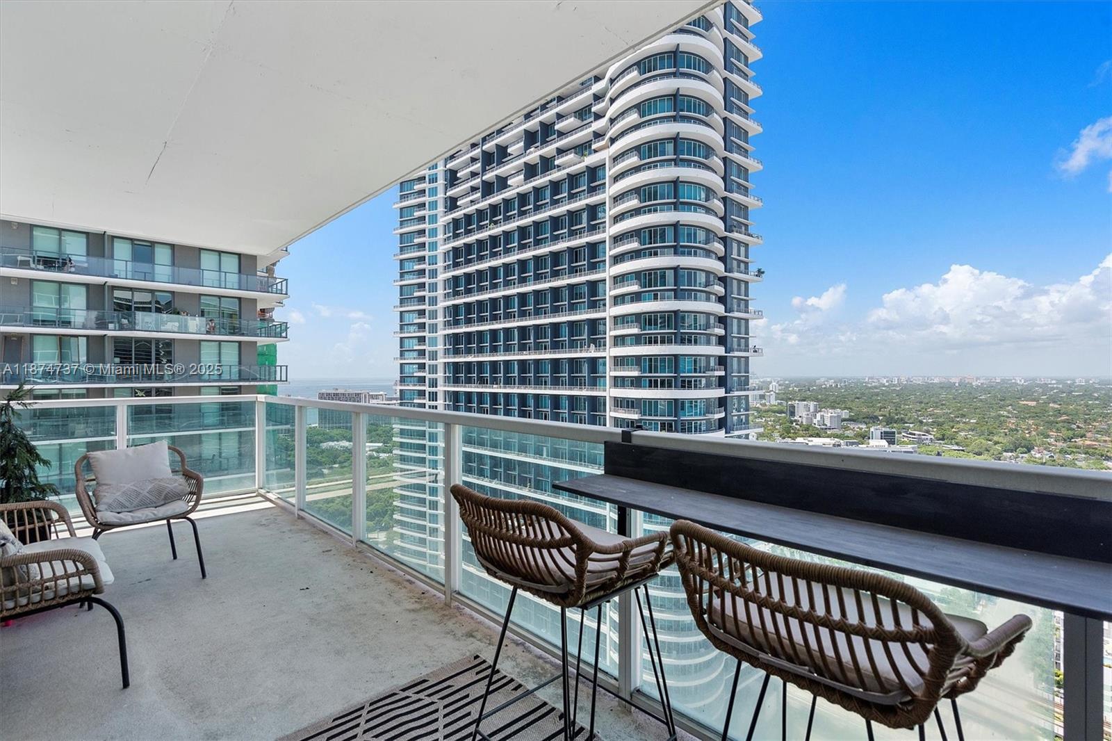 Largest 2 bedroom corner unit at the Vue in Brickell. Sought-after 01 line is over 1,250 SF with a split floor plan and true laundry room. Brand new carpet and refrigerator installed and freshly painted. Enjoy a spacious wraparound balcony, providing breathtaking panoramic views of the Miami skyline and Biscayne Bay. 1 Assigned Parking on 2nd Floor and Valet Parking available. Wifi included. Amenities include a Fitness Center, 24-hour concierge and valet services. Enjoy the Brickell lifestyle - centrally located to restaurants, shops, supermarkets, Mary Brickell Village, Brickell City Centre, Metrorail & Metromover. Pool expected to reopen in May. NO PETS.