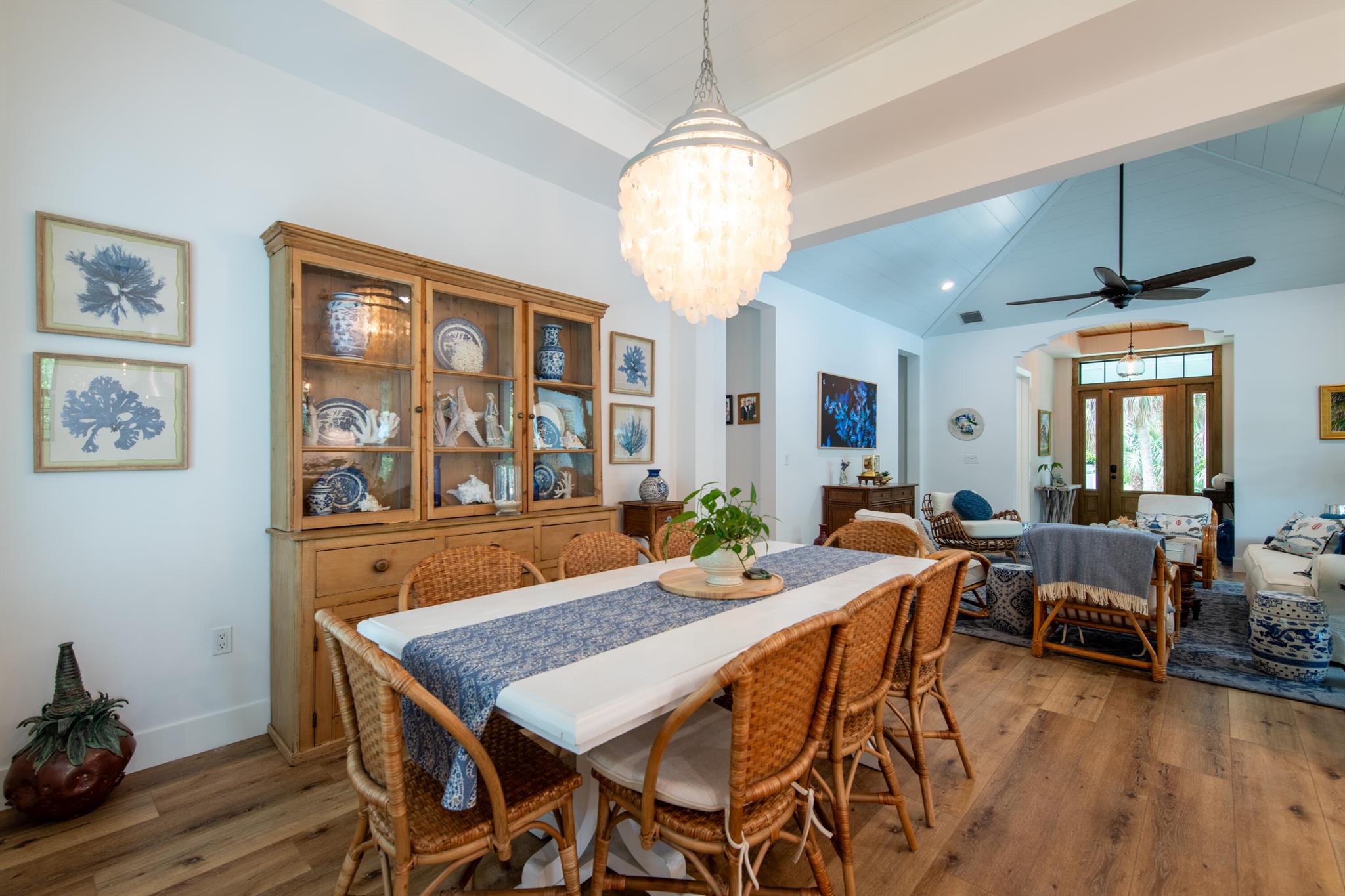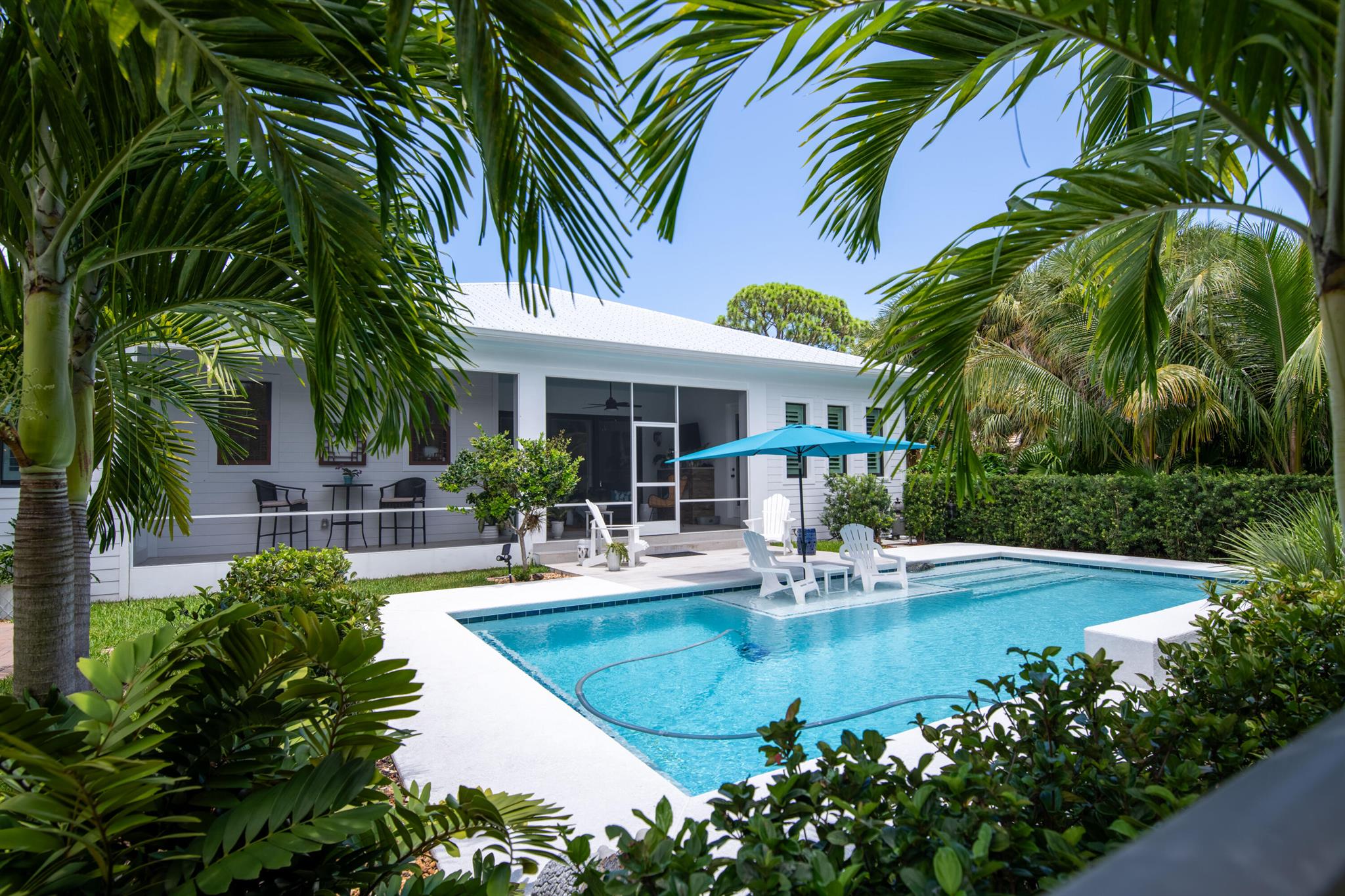 Newly built southern craftsman style home on private, lushly landscaped lot with saltwater pool. Walk to Jupiter Island beach and historic Hobe Sound featuring coffee shops, live music, brewery, designer shops and outdoor dining at gourmet restaurants. Housekeeping, landscaping and pool services included. Fenced back yard for your pets. Enjoy the cozy fireplace on your screened porch overlooking the pool. Volume tongue and groove ceilings, designer furnishings and chefs kitchen.
